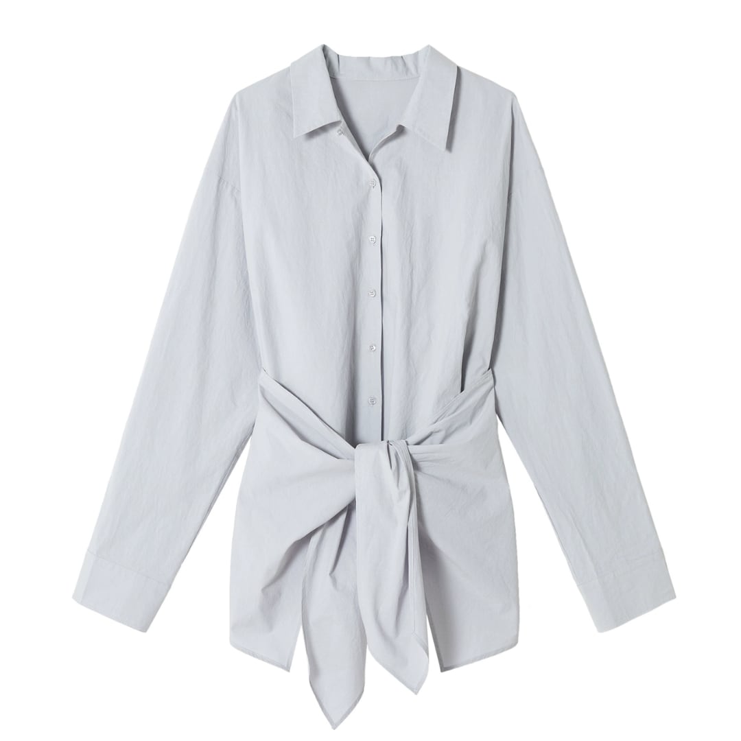 ウエスト周りをすっきりと見せてくれる、着痩せ効果抜群の前結びシャツ。