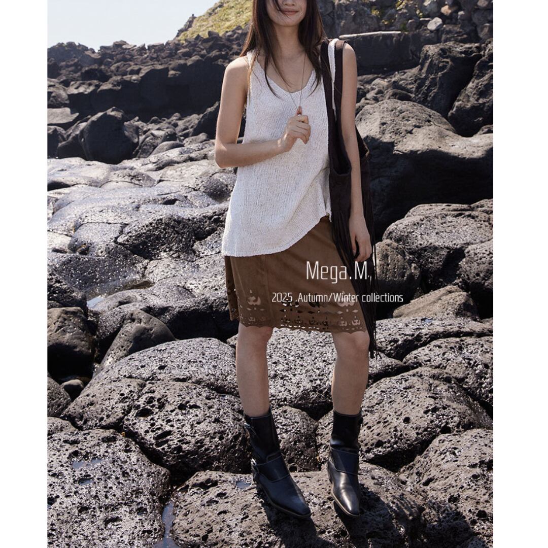 Back cross U-neck knit tank top G815