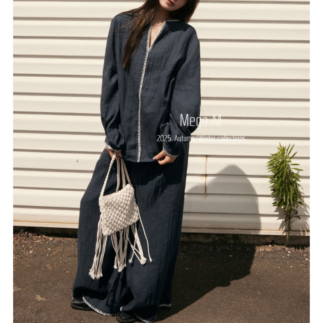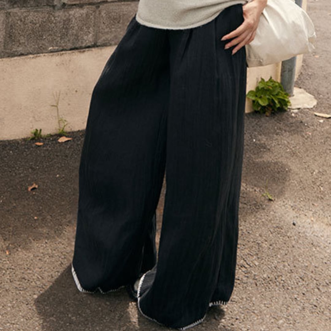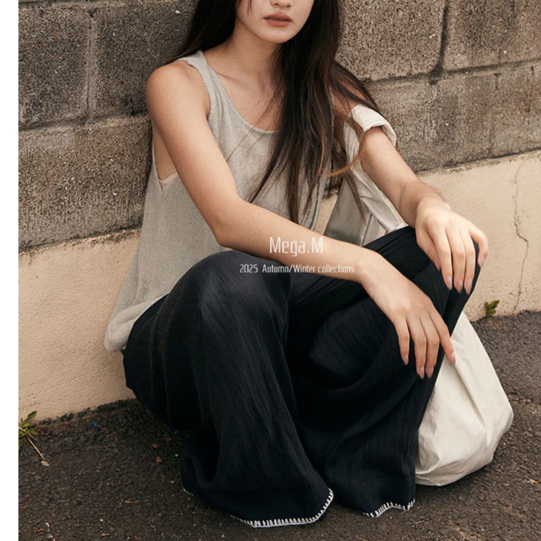 Hem stitching tuck wide straight pants G820【セットアップ対応】