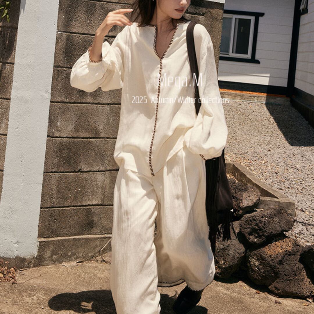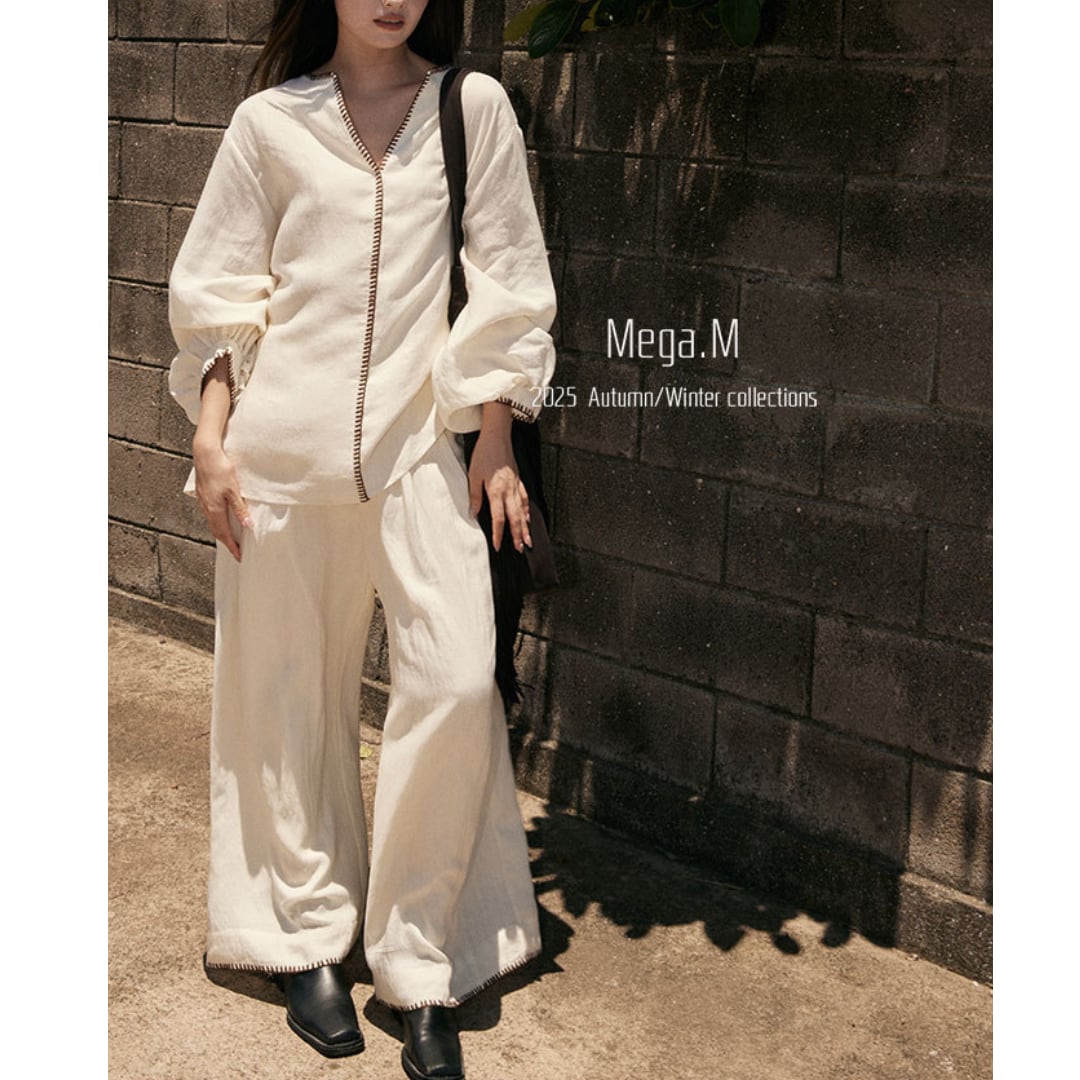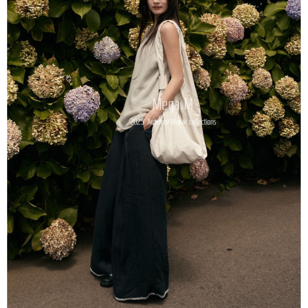Hem stitching tuck wide straight pants G820【セットアップ対応】
