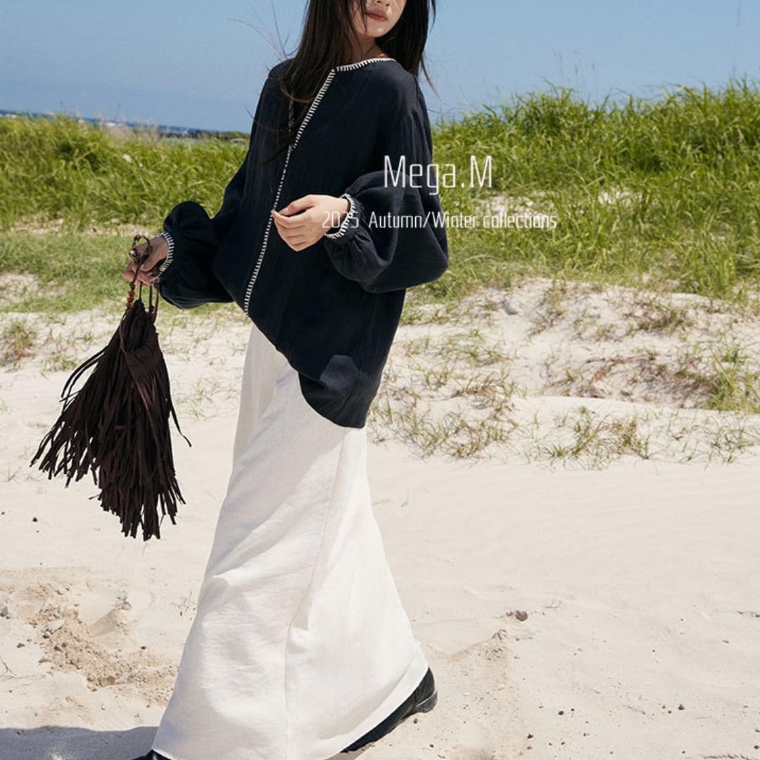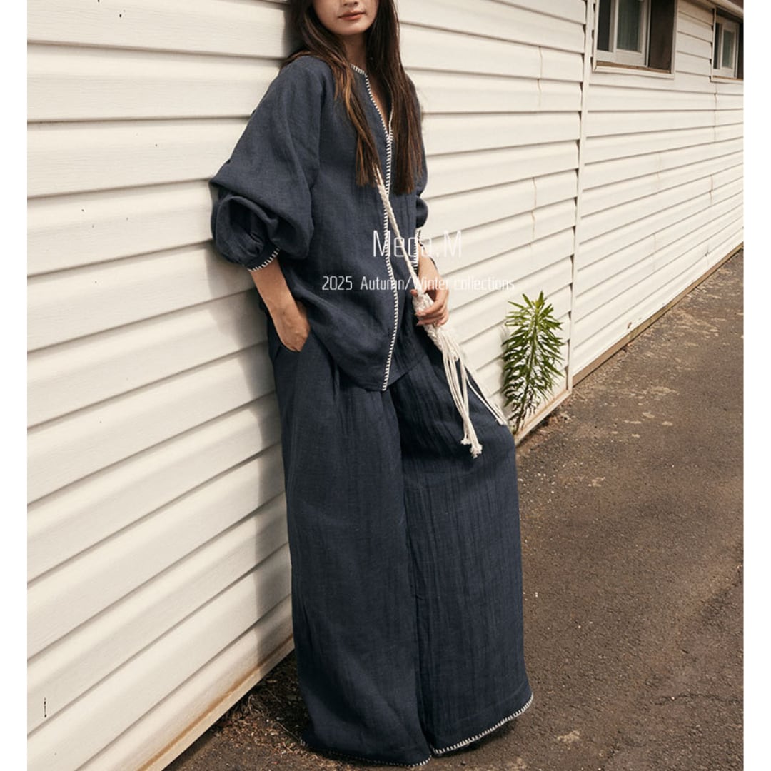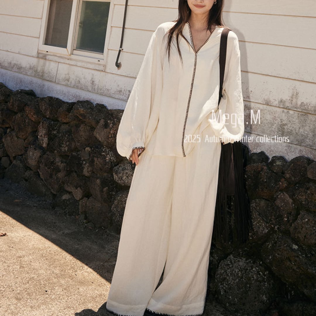 別売りの「Hem stitching tuck wide straight pants(品番:G820)」と合わせて着用すると、都会的なパンツセットアップコーデが作れます。