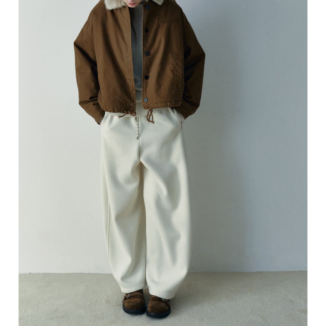 襟と裏地にふわふわのフェイクファーを施した、見た目も着心地もあたたかなジャケット。
