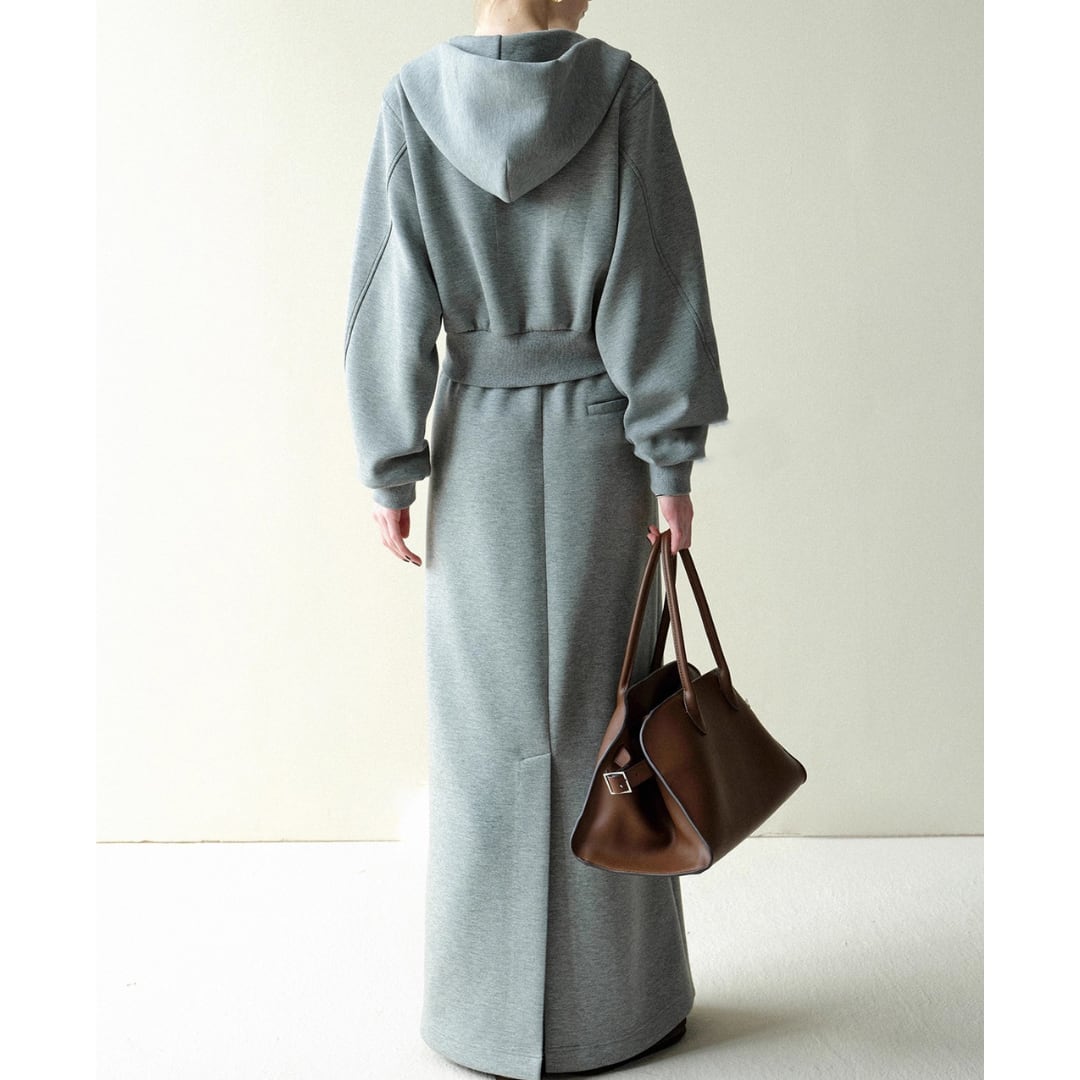 別売りのボトム「Side pocket drost sweat long skirt (品番:896)」、「Side slit sweat wide short pants(品番:G897)」とのスウェットセットアップコーデにも対応しています。