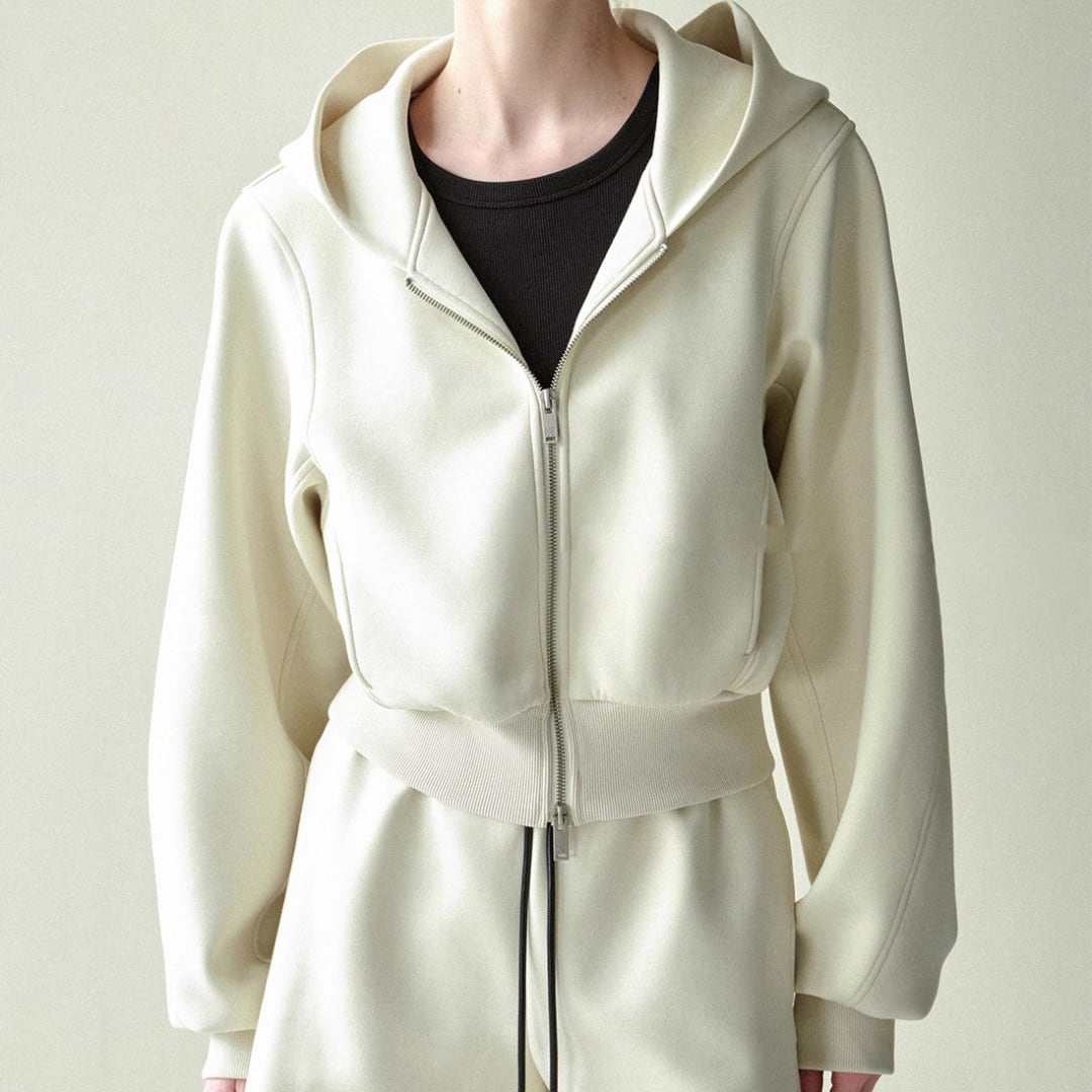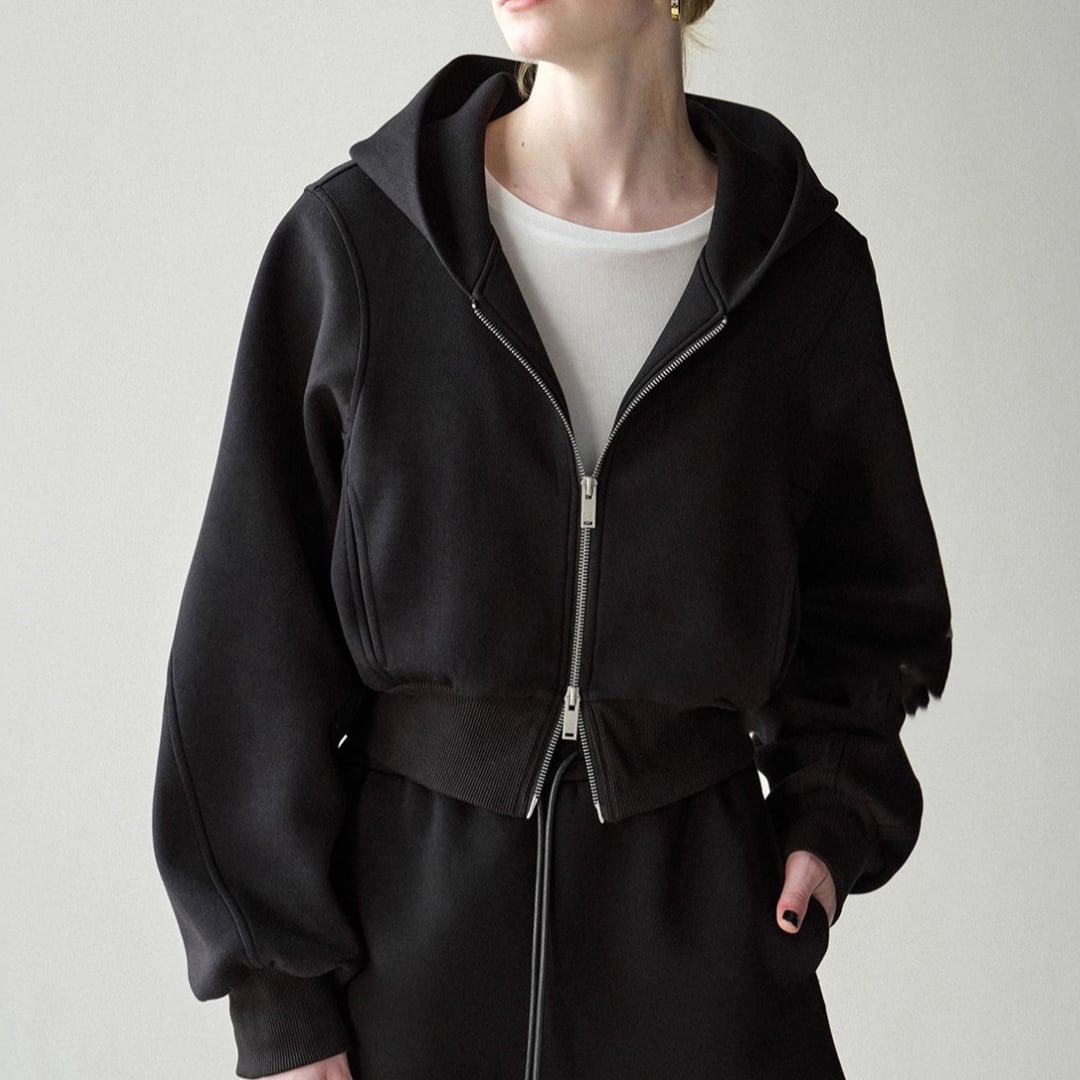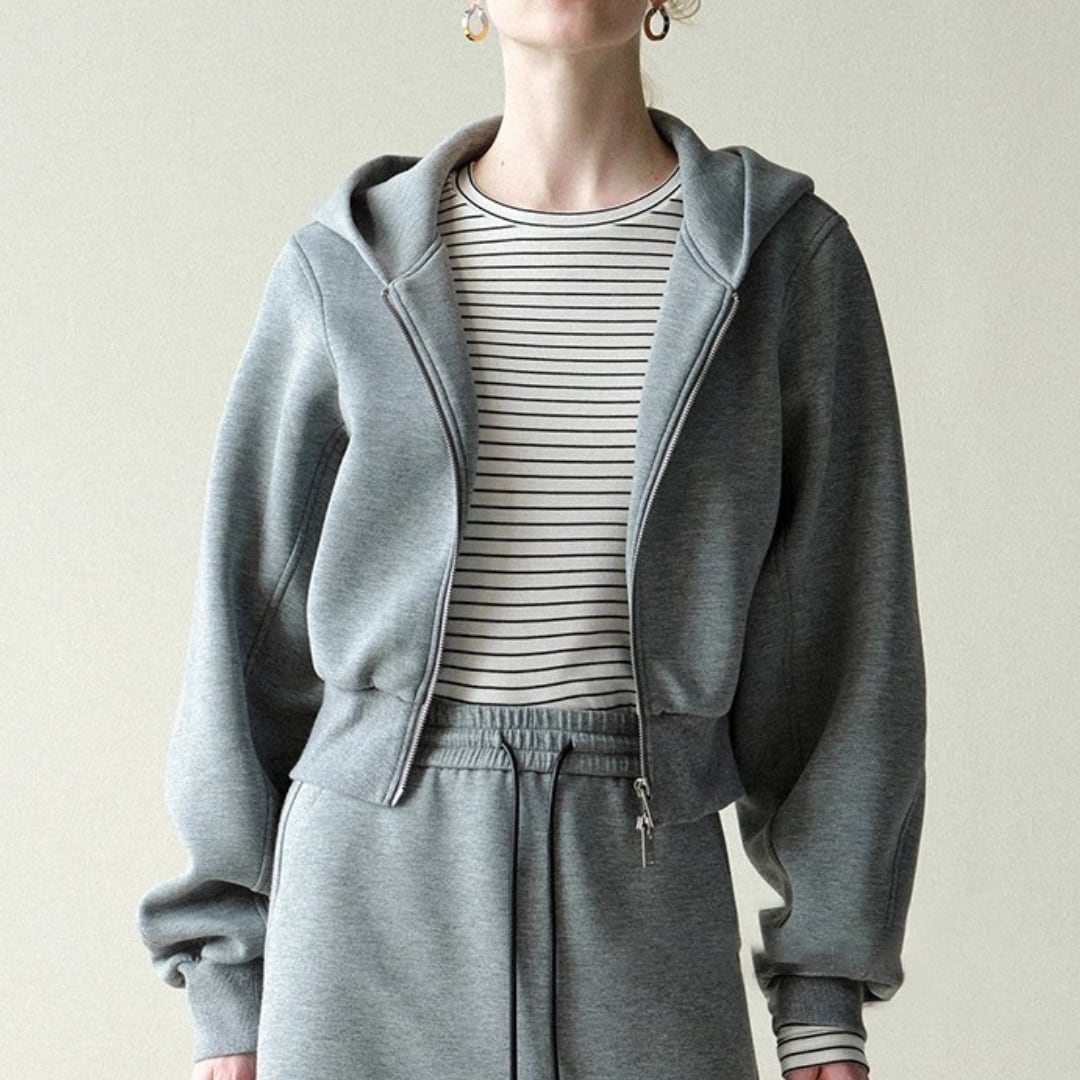 コンパクトなクロップド丈で脚長効果を狙えるスウェットパーカー。