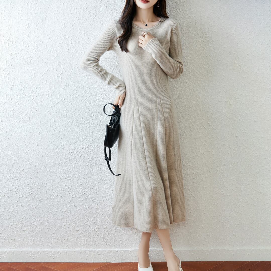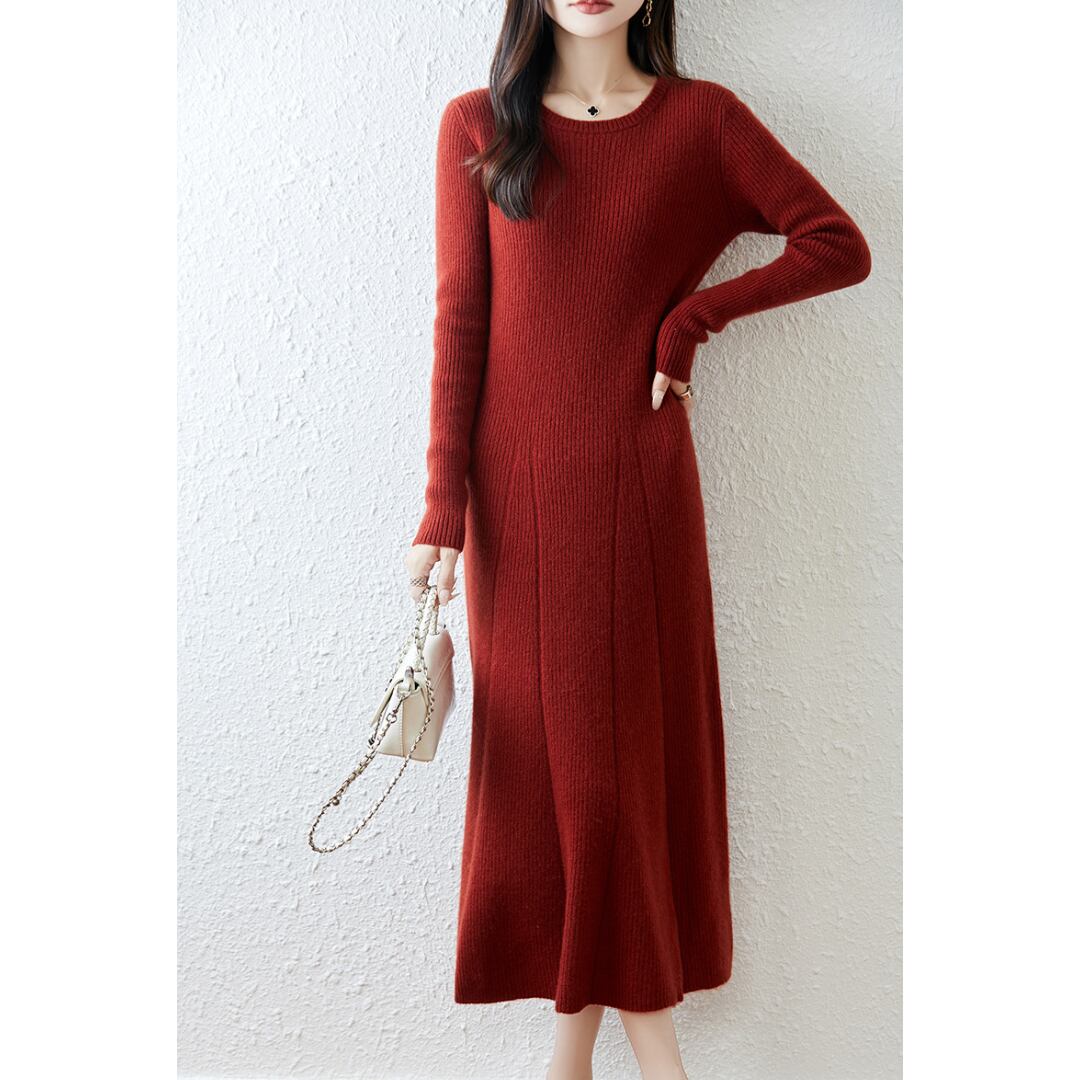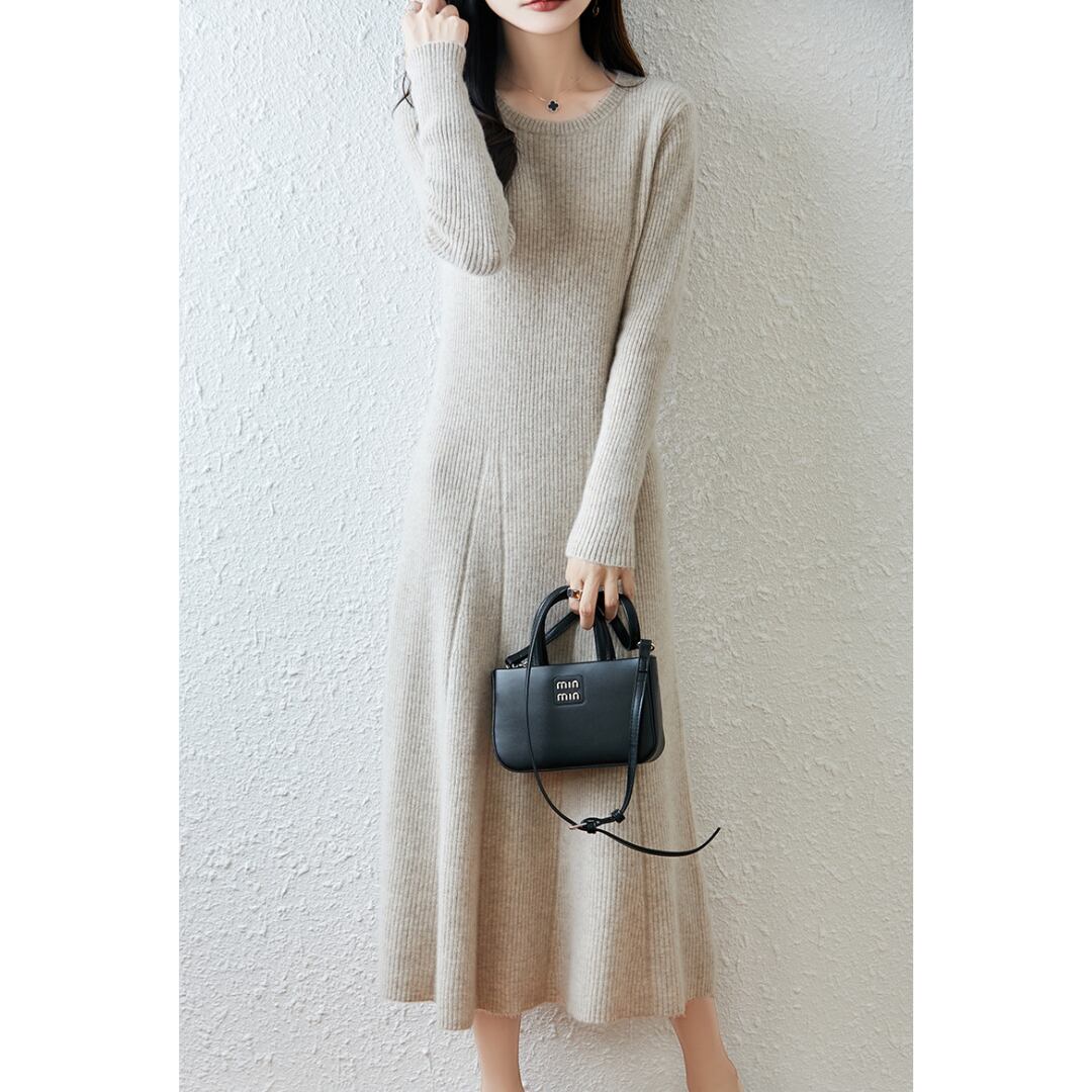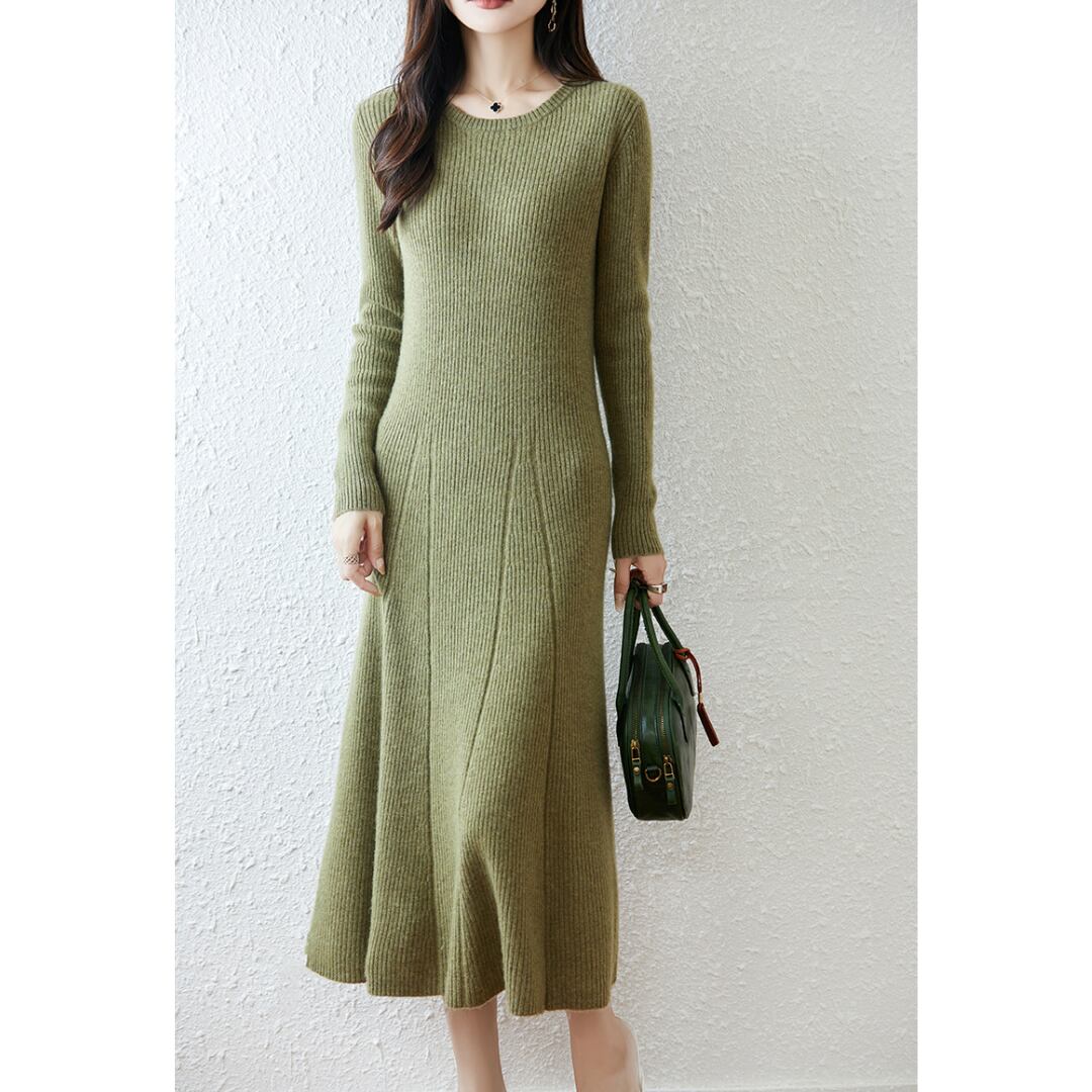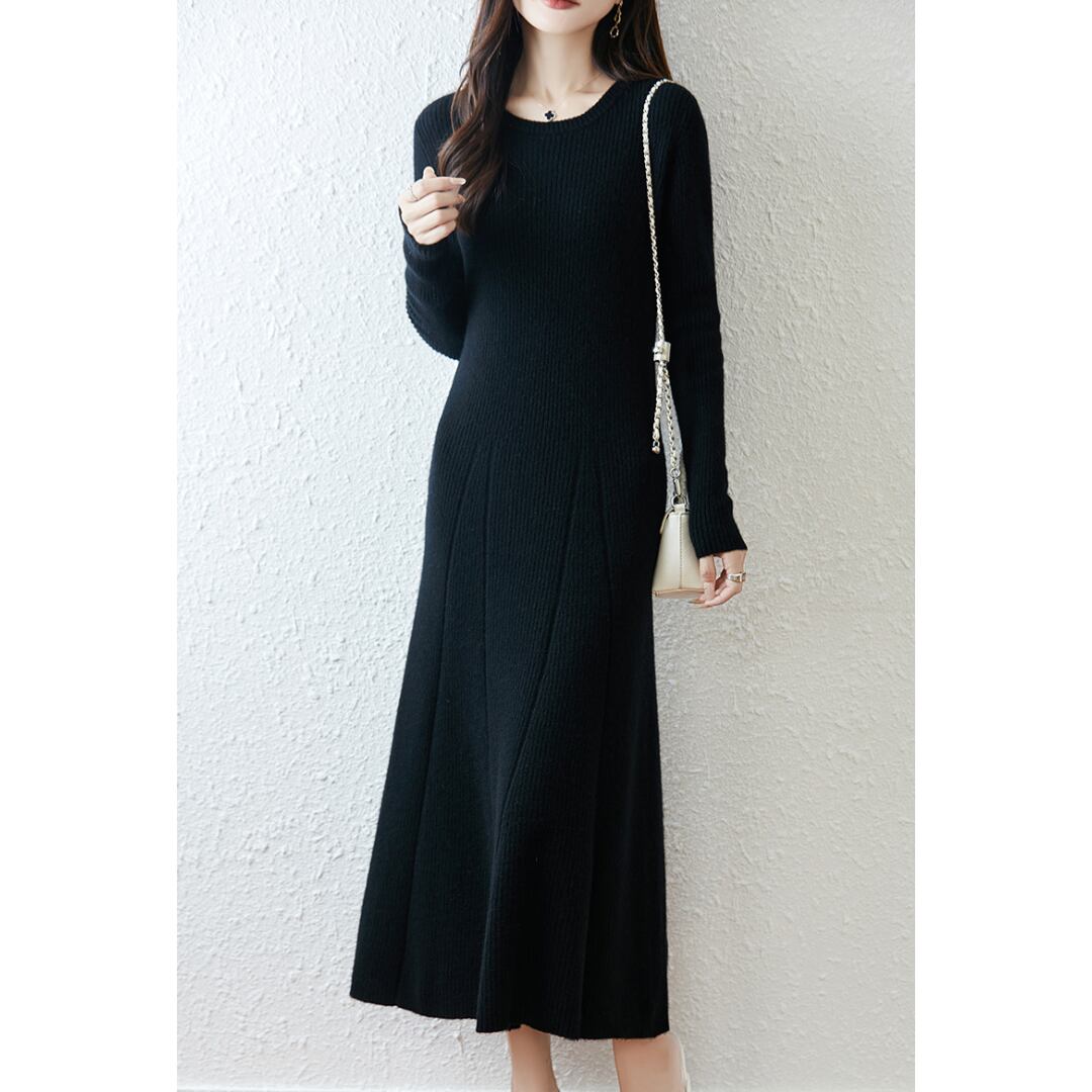 Pure wool A-line rib knit one piece G898