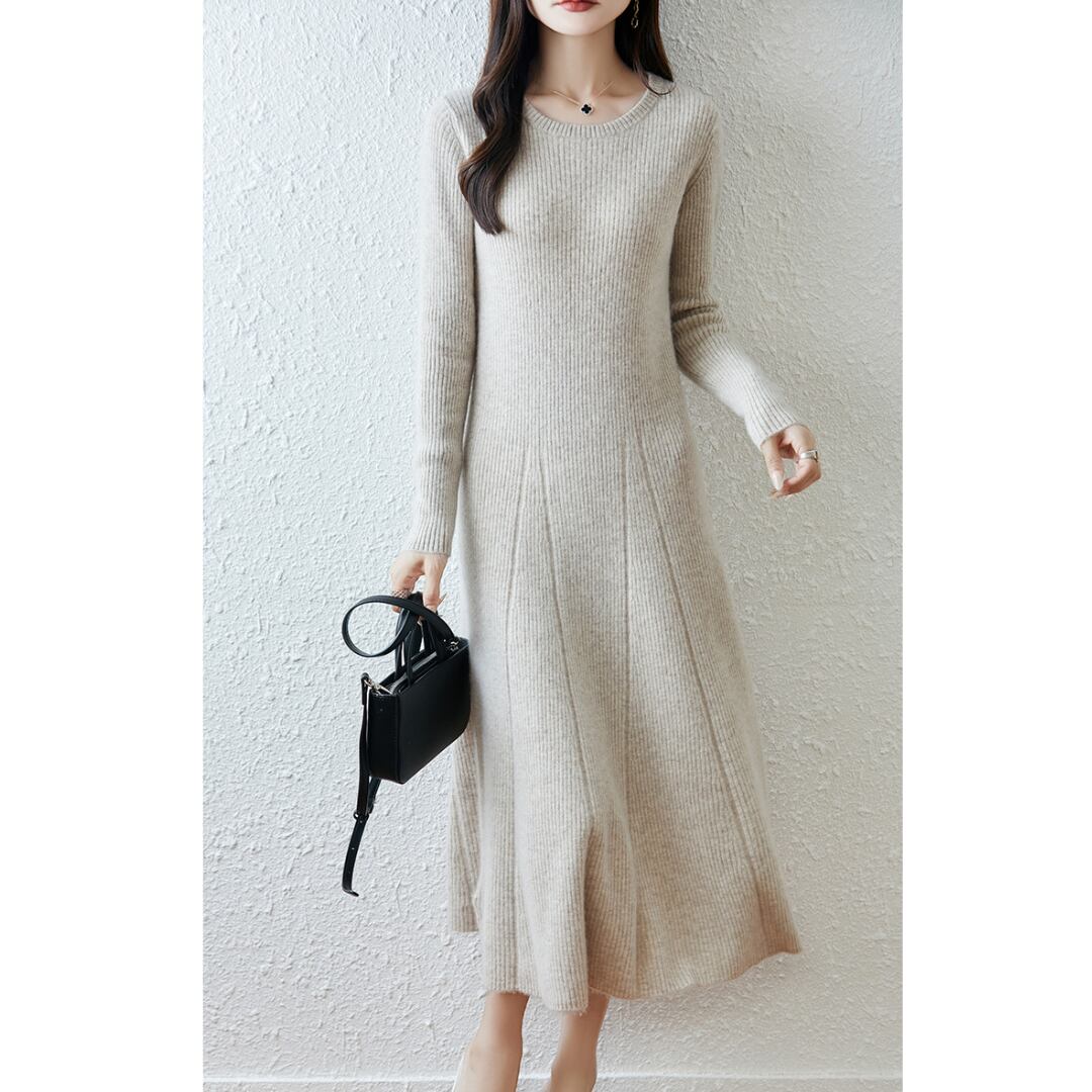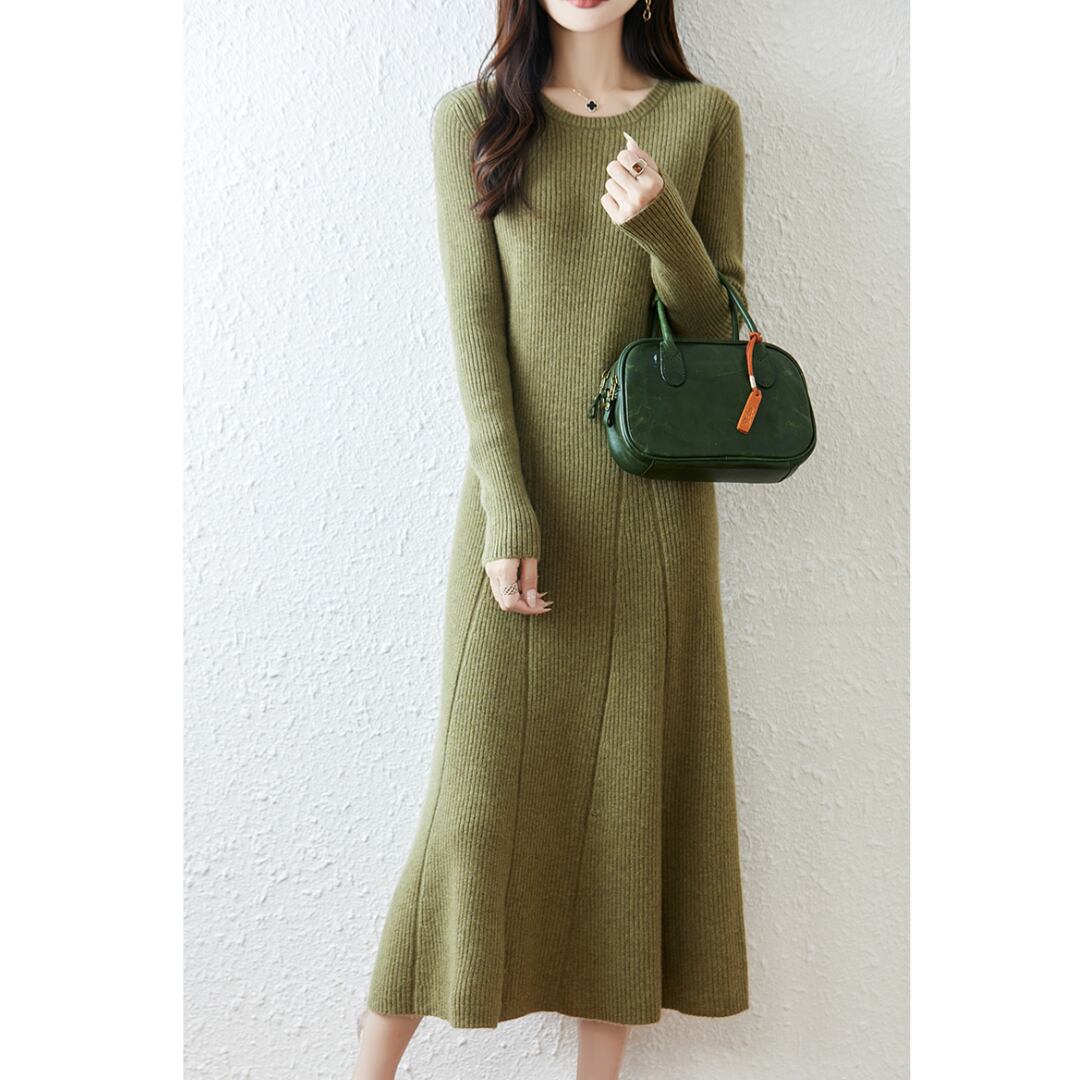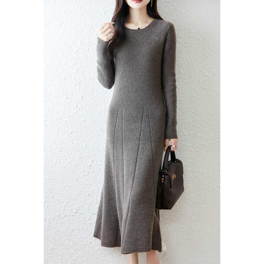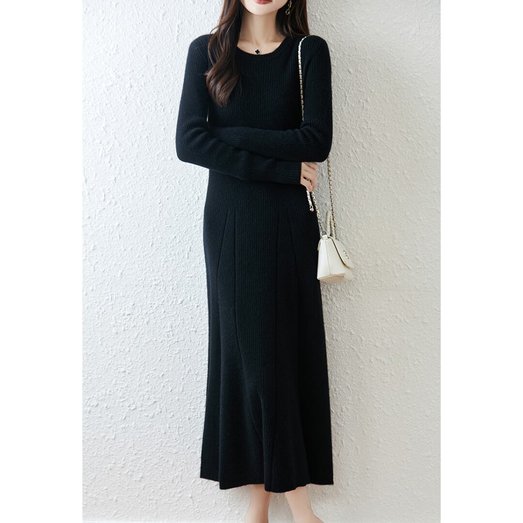 女性らしくエレガントなシルエットを描いたニットワンピース。