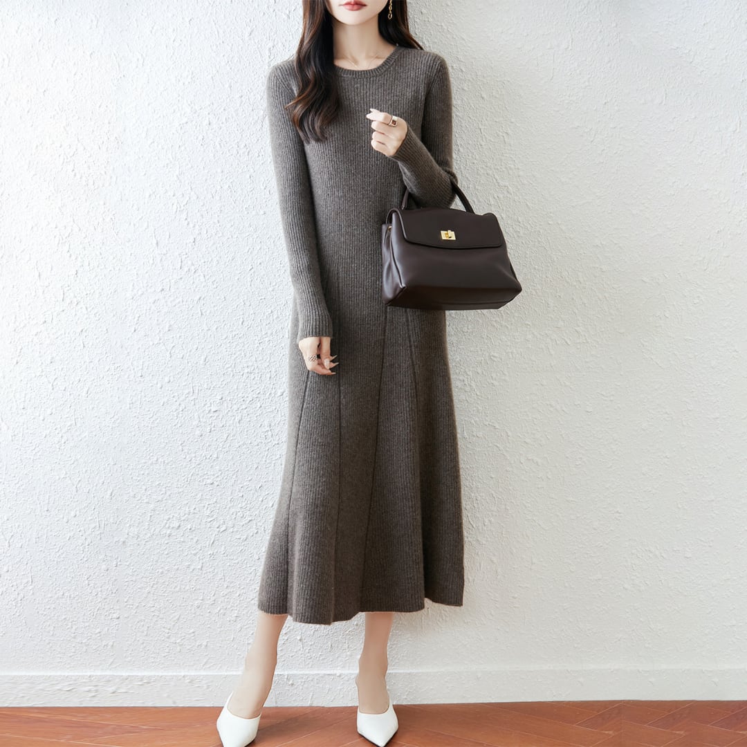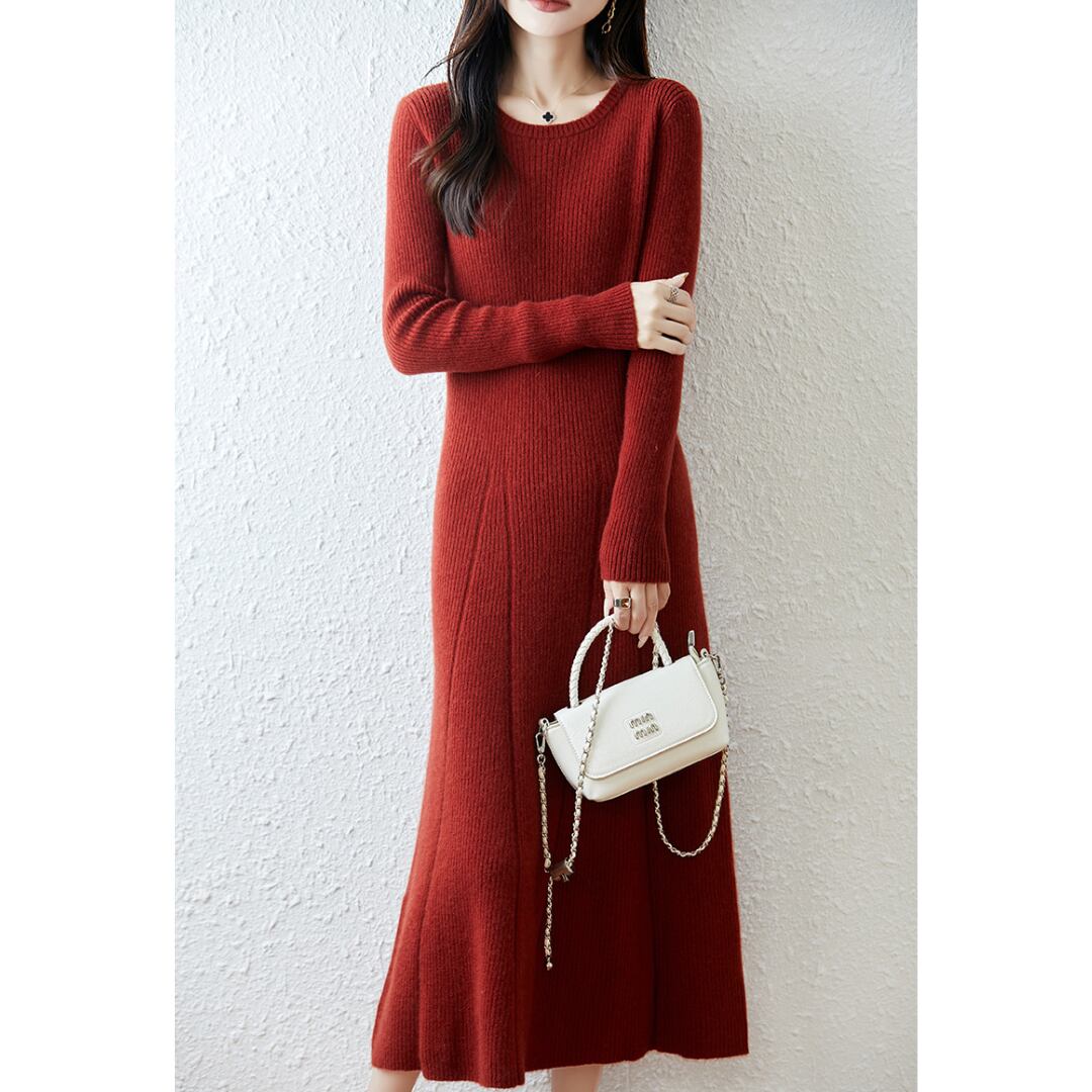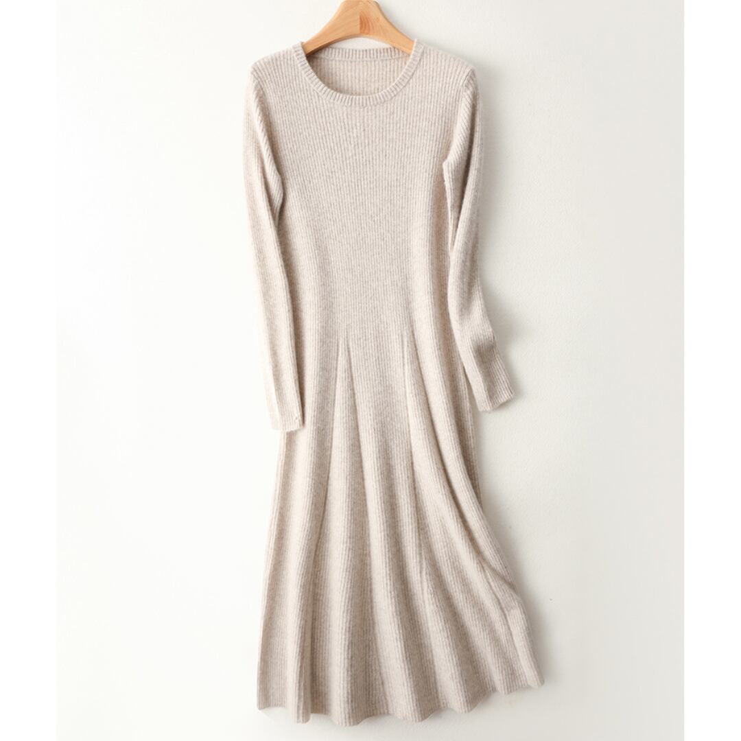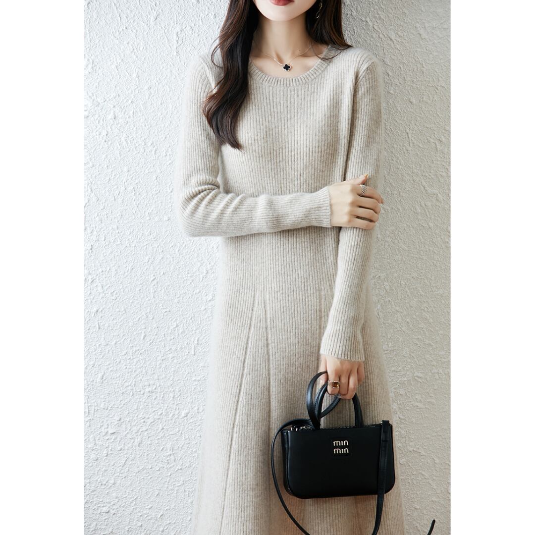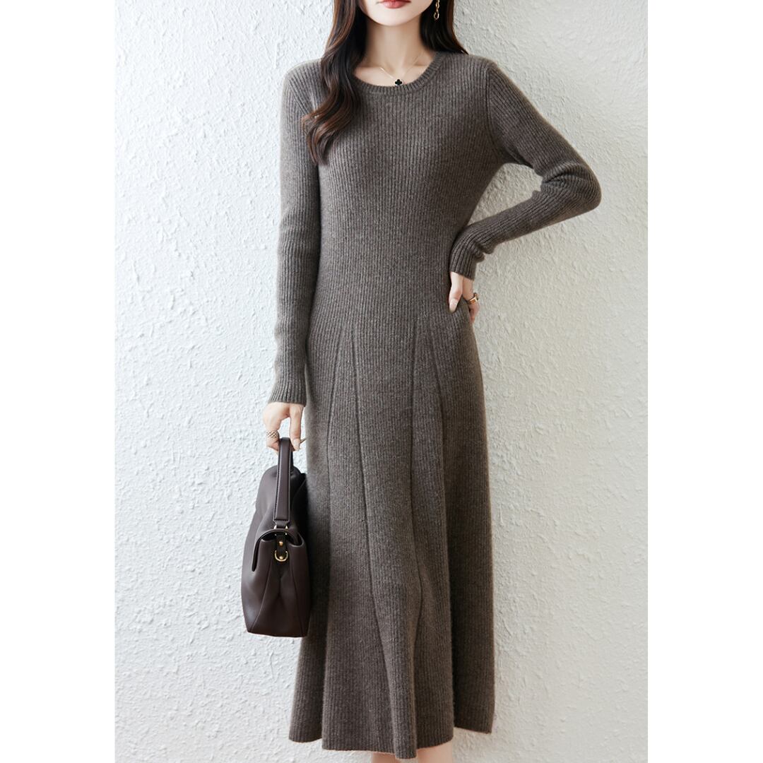 女性らしくエレガントなシルエットを描いたニットワンピース。