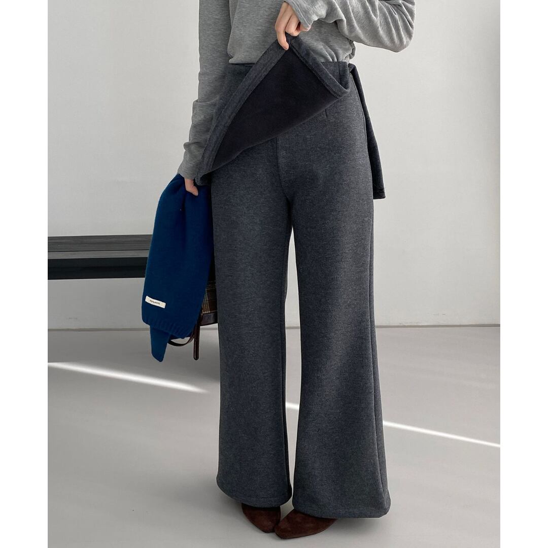裾に向かってやや広がるブーツカットシルエットによって、すらりとしたレッグラインへ。