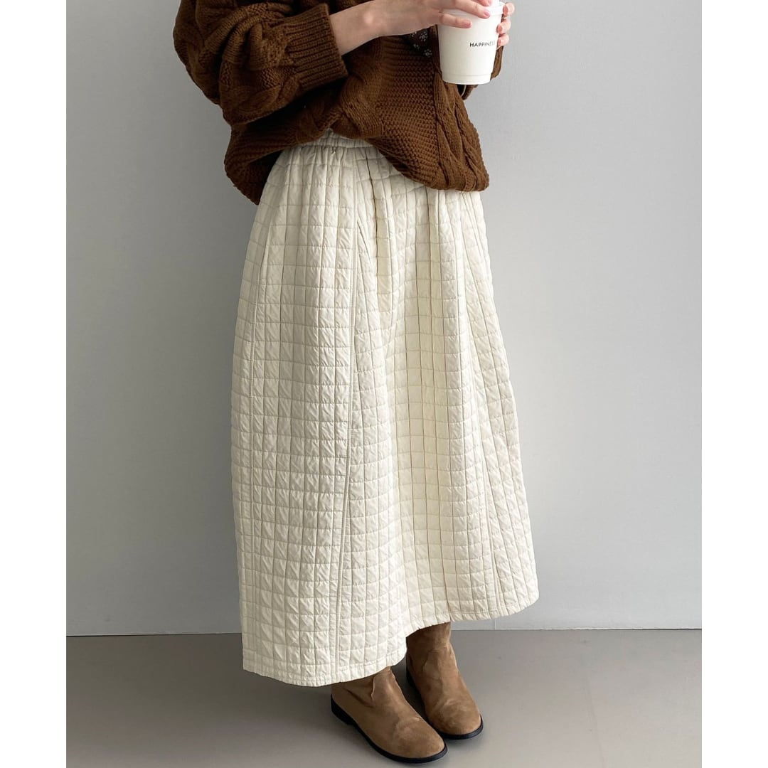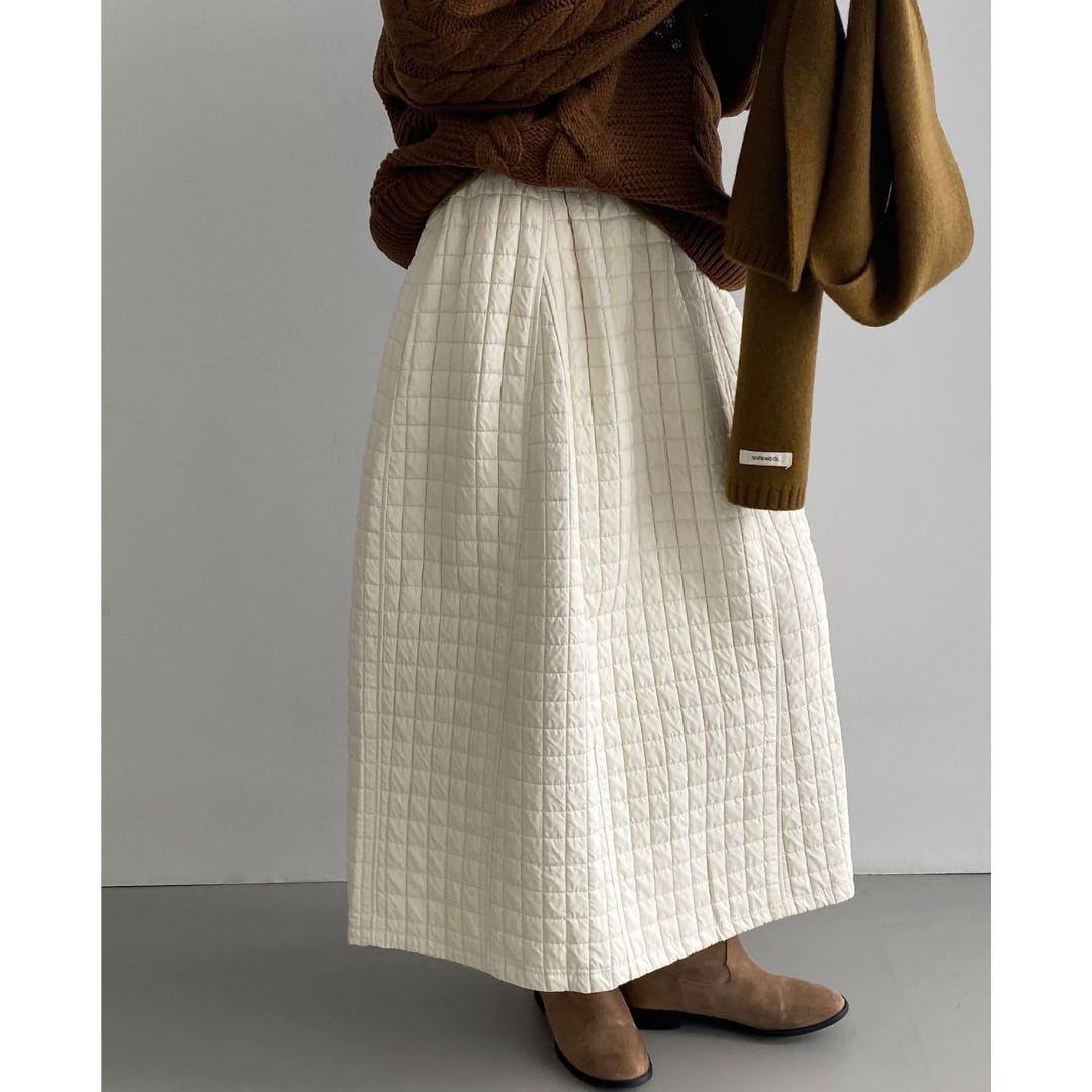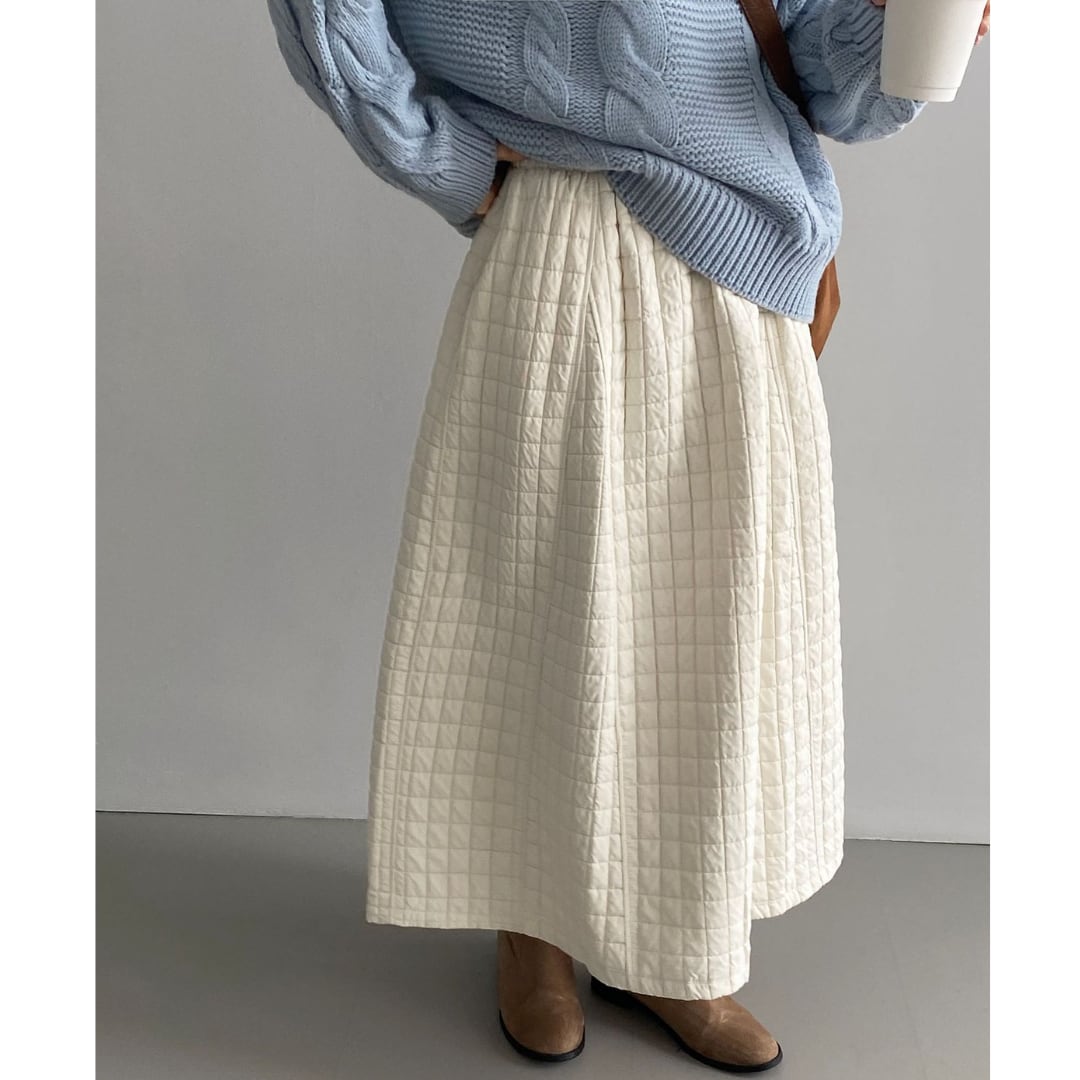 ほっこりするキルティング生地のロングスカート。