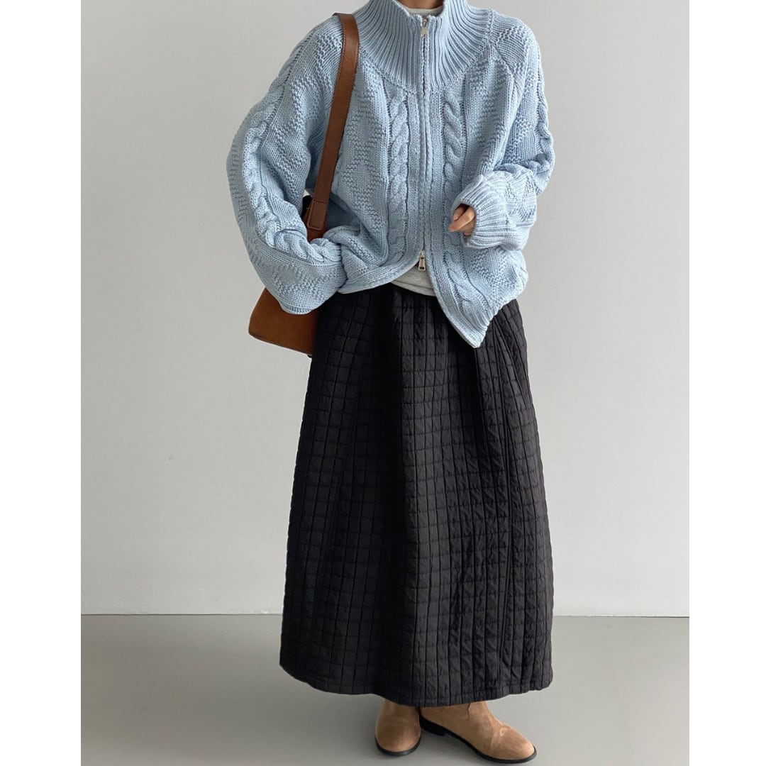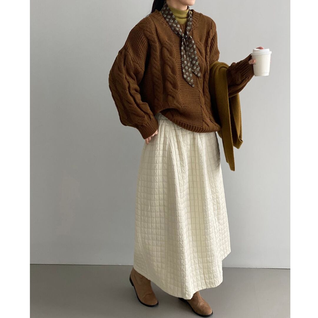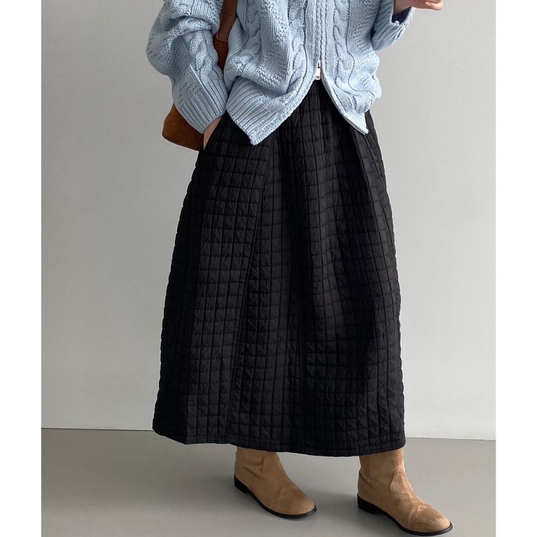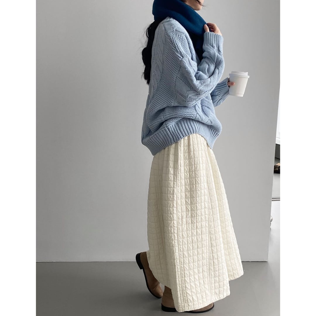 ほっこりするキルティング生地のロングスカート。