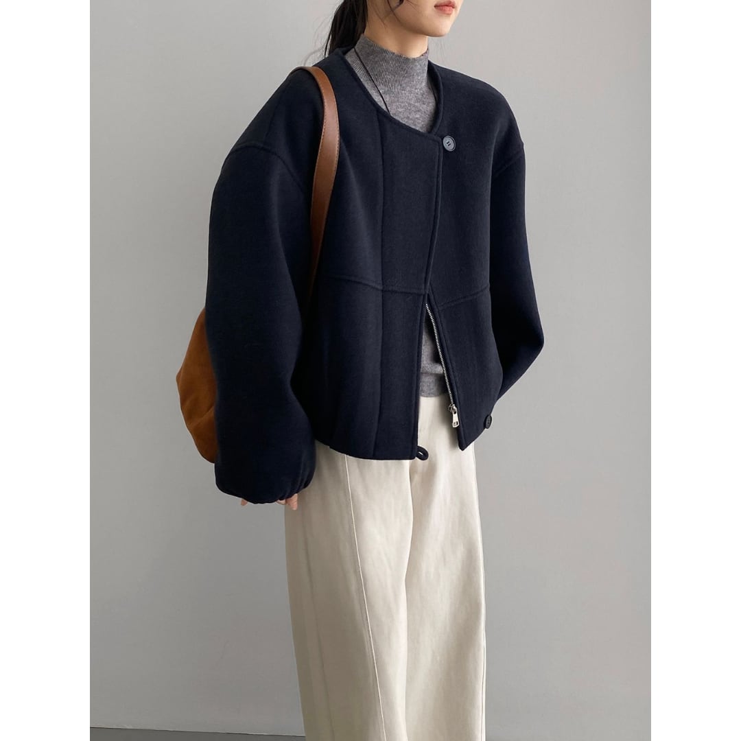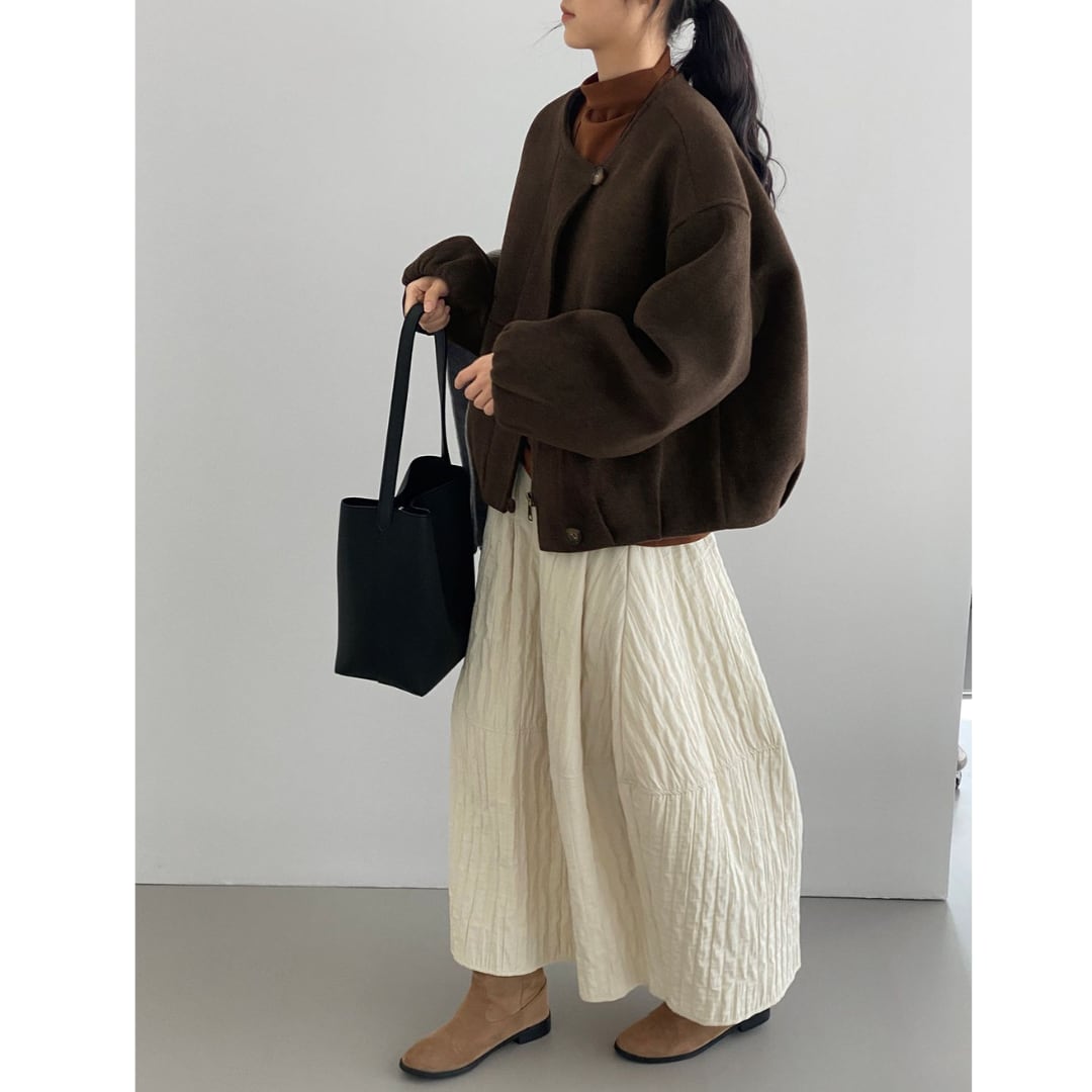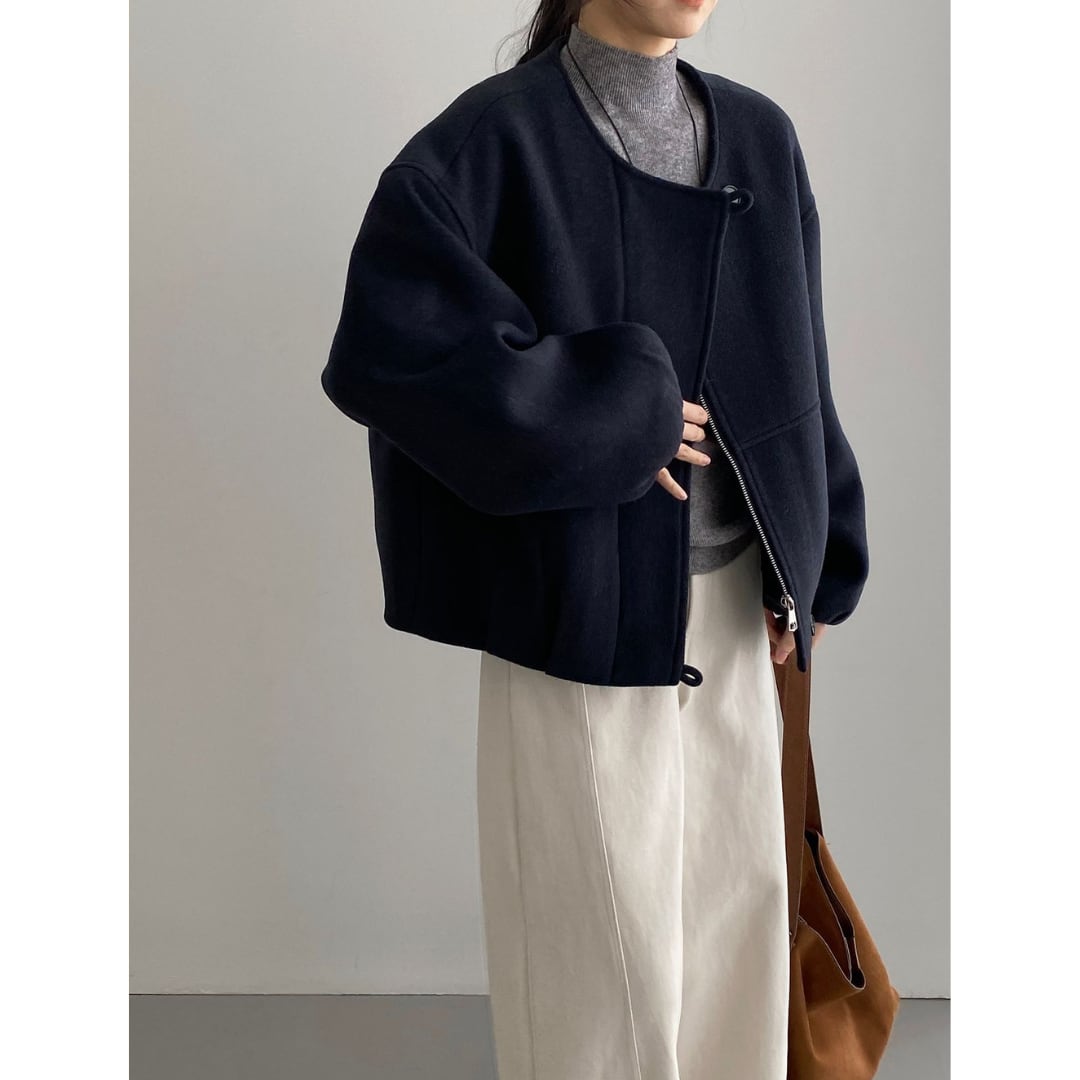きれいめなデザインに中綿を加えたパデットショートコート。