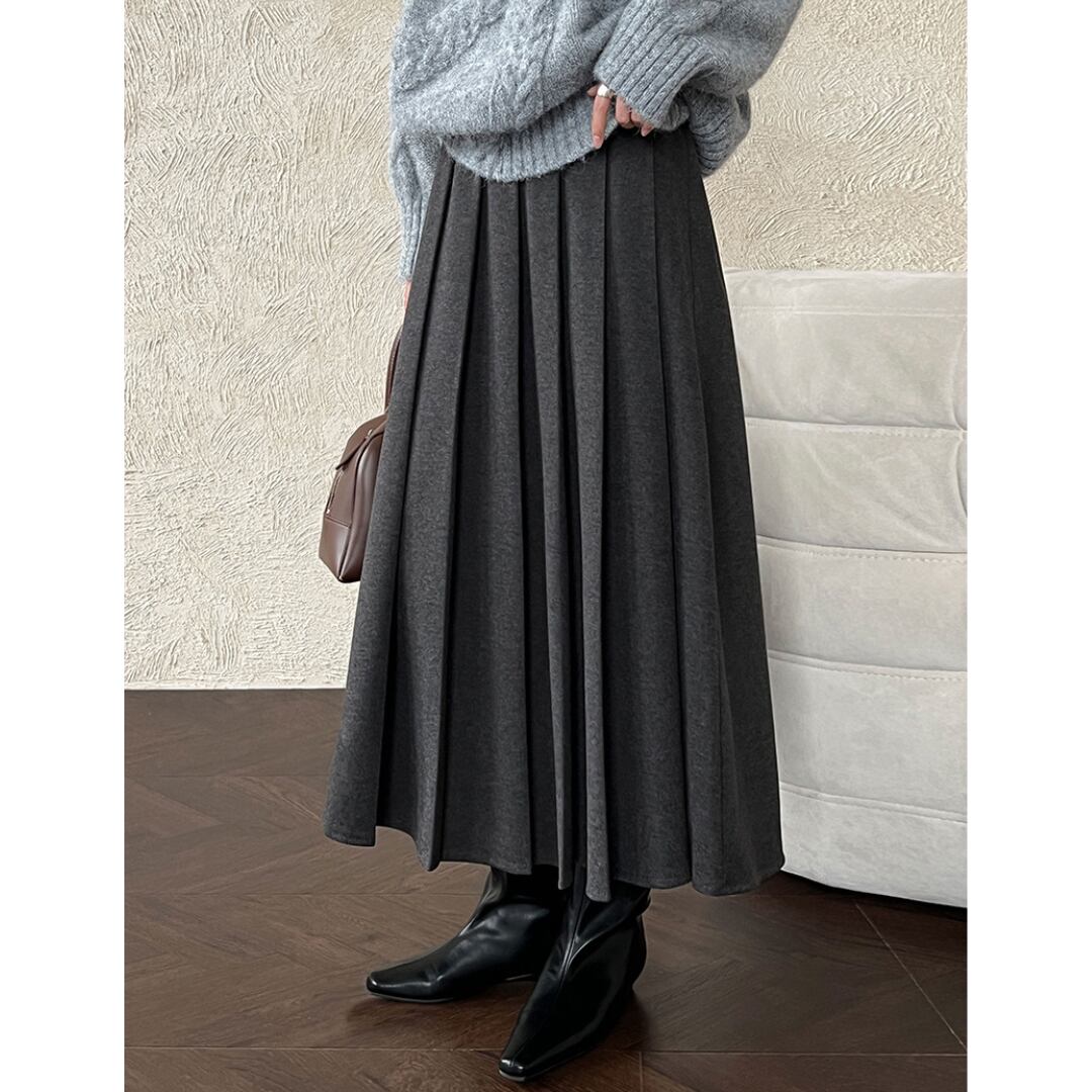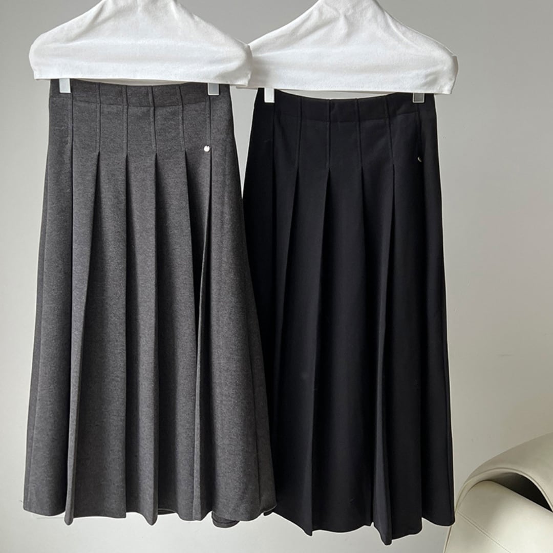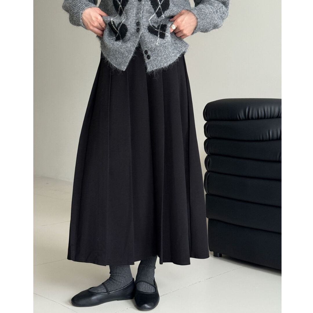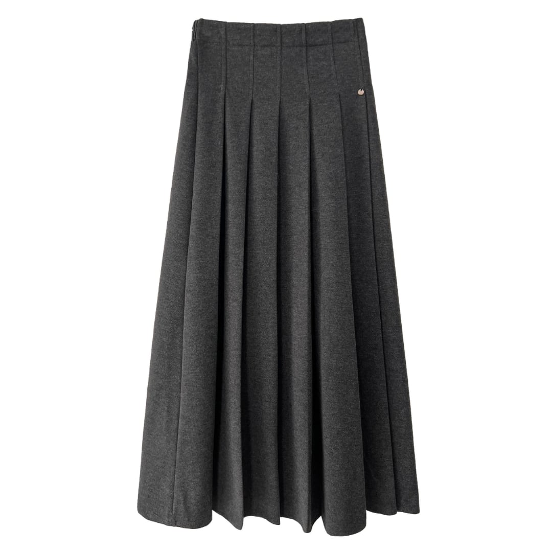 フロントにプリーツ加工を施したクラシカルな雰囲気のスカート。