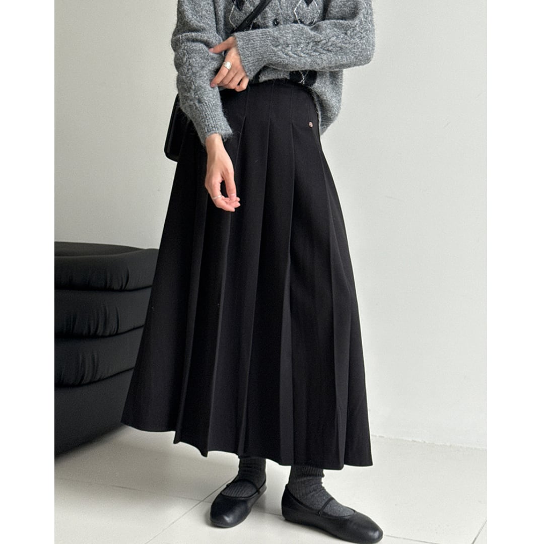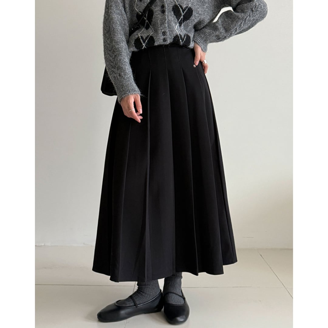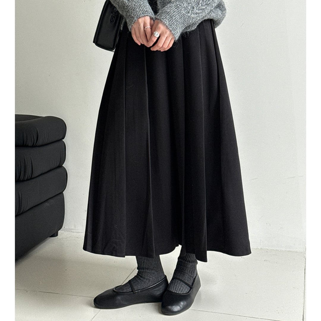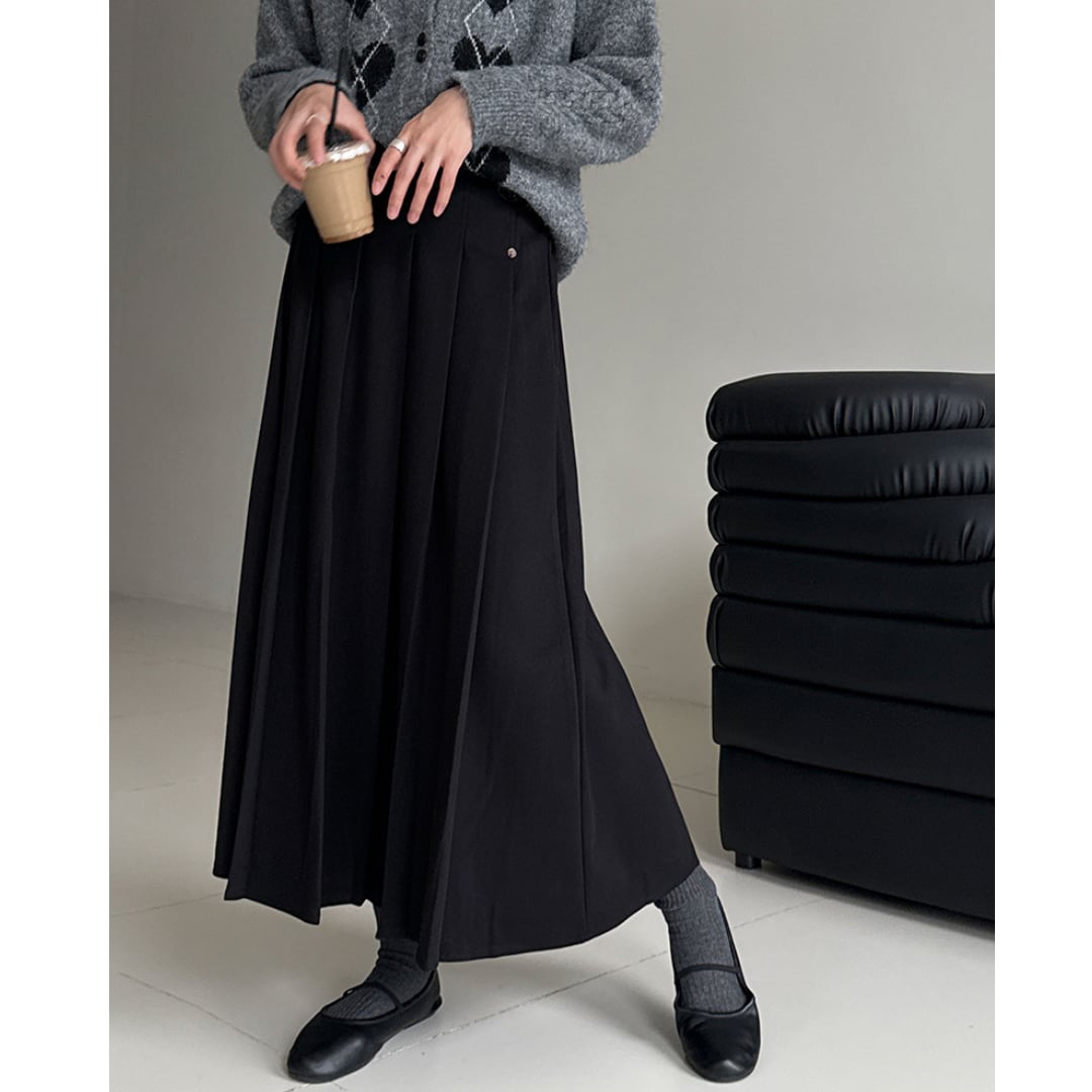 フロントにプリーツ加工を施したクラシカルな雰囲気のスカート。