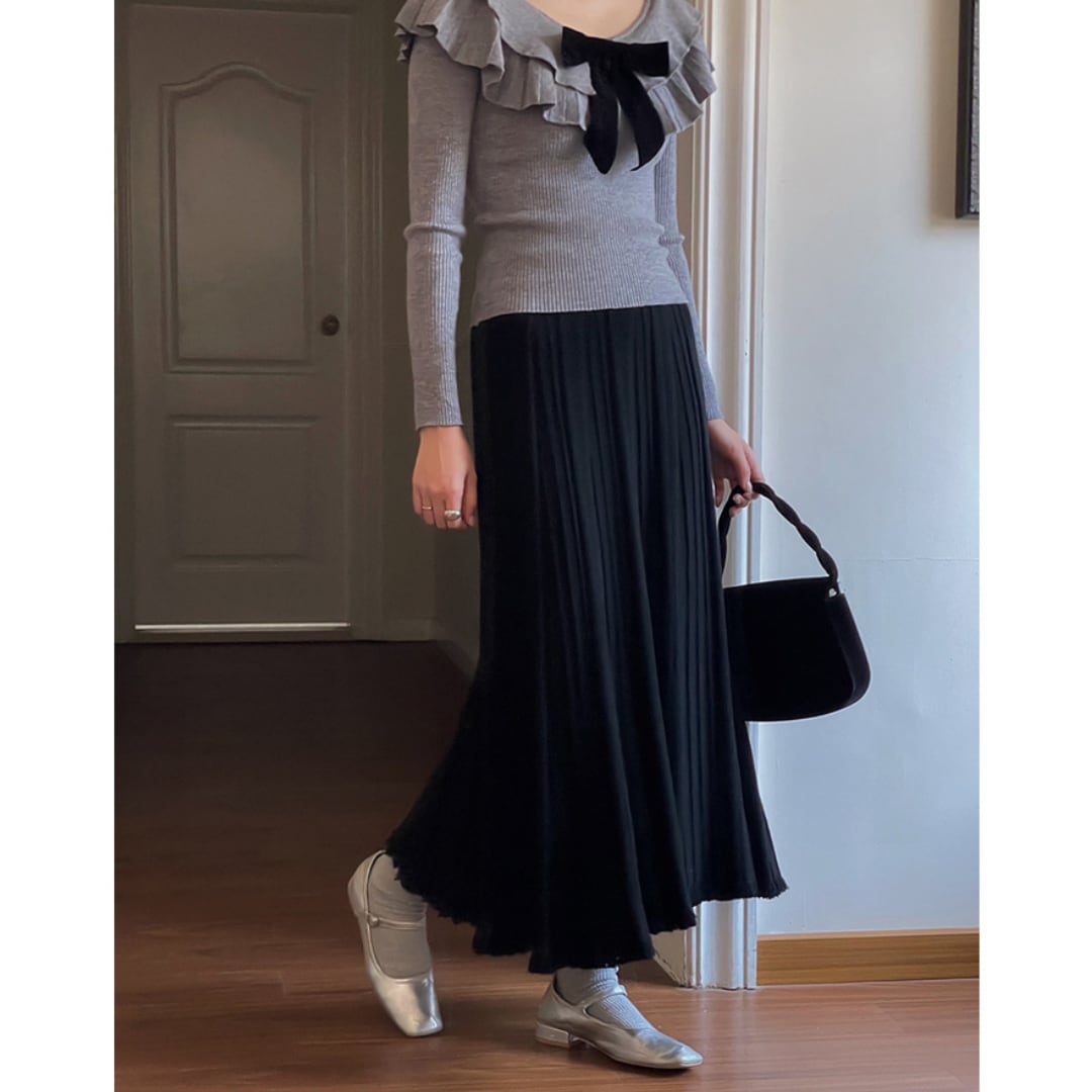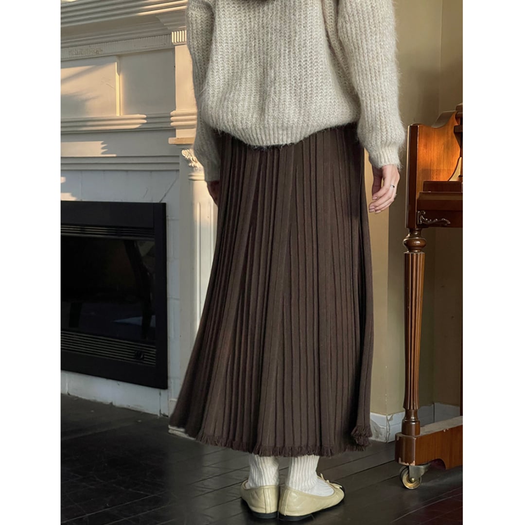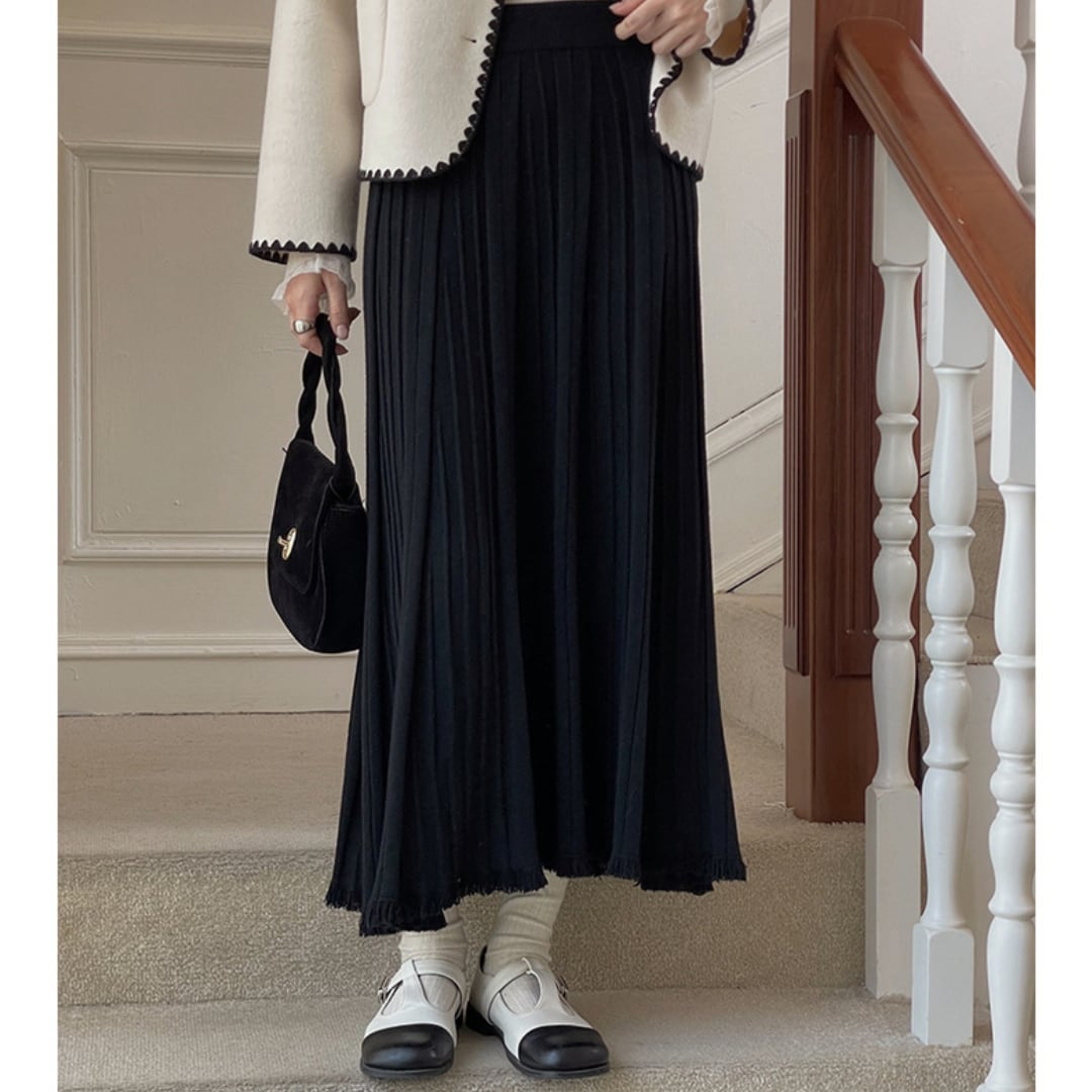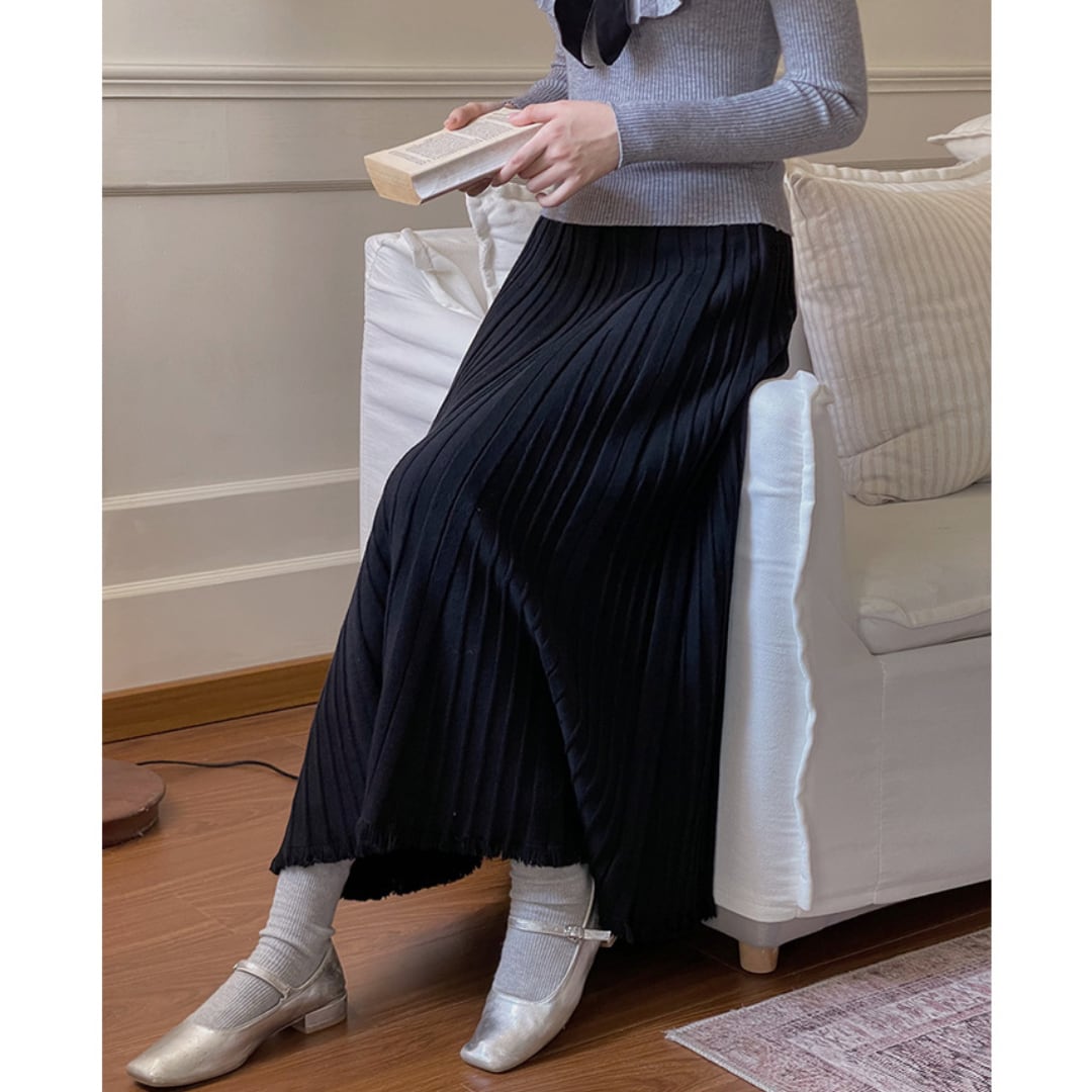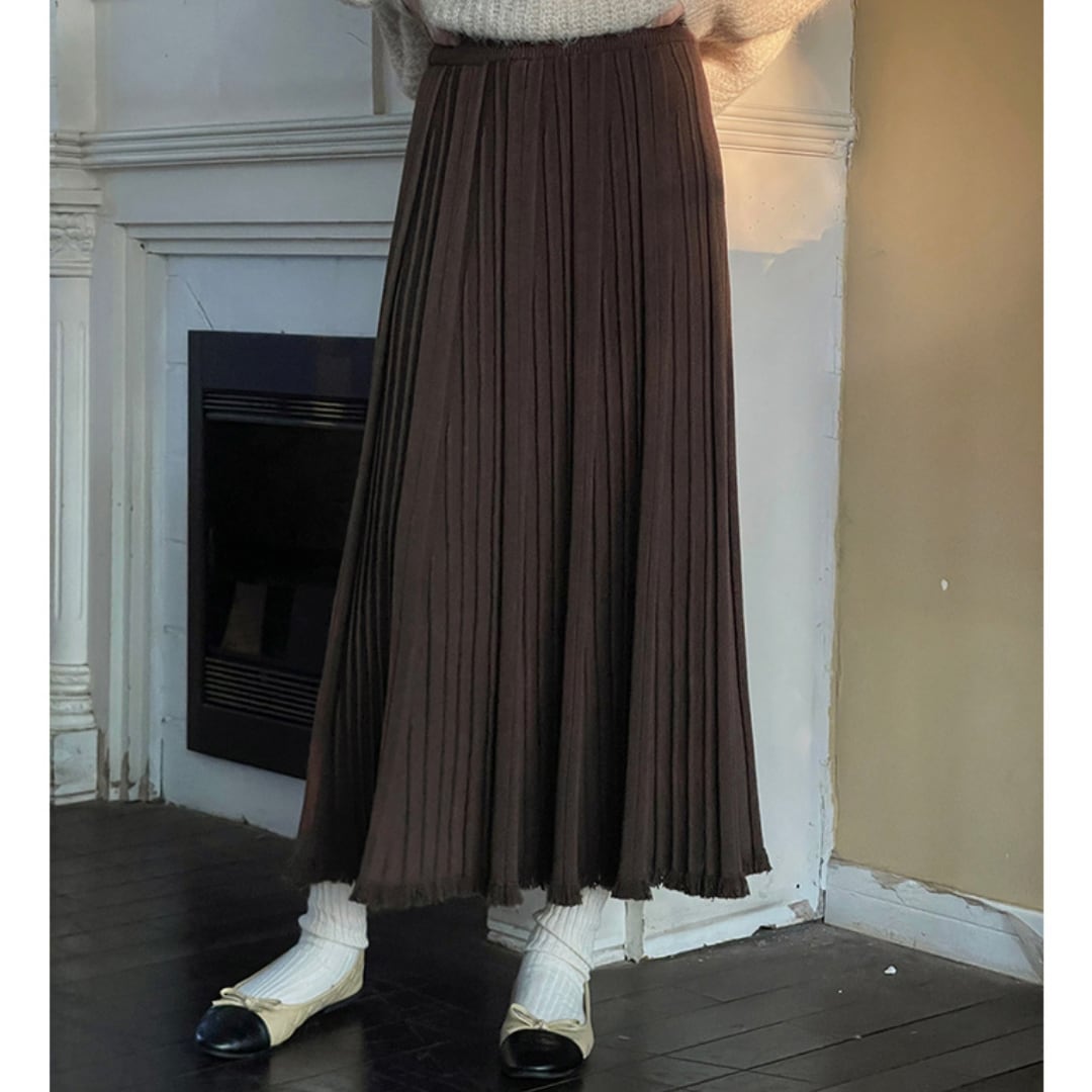 すらりと美しいシルエットを描くニットプリーツスカート。
