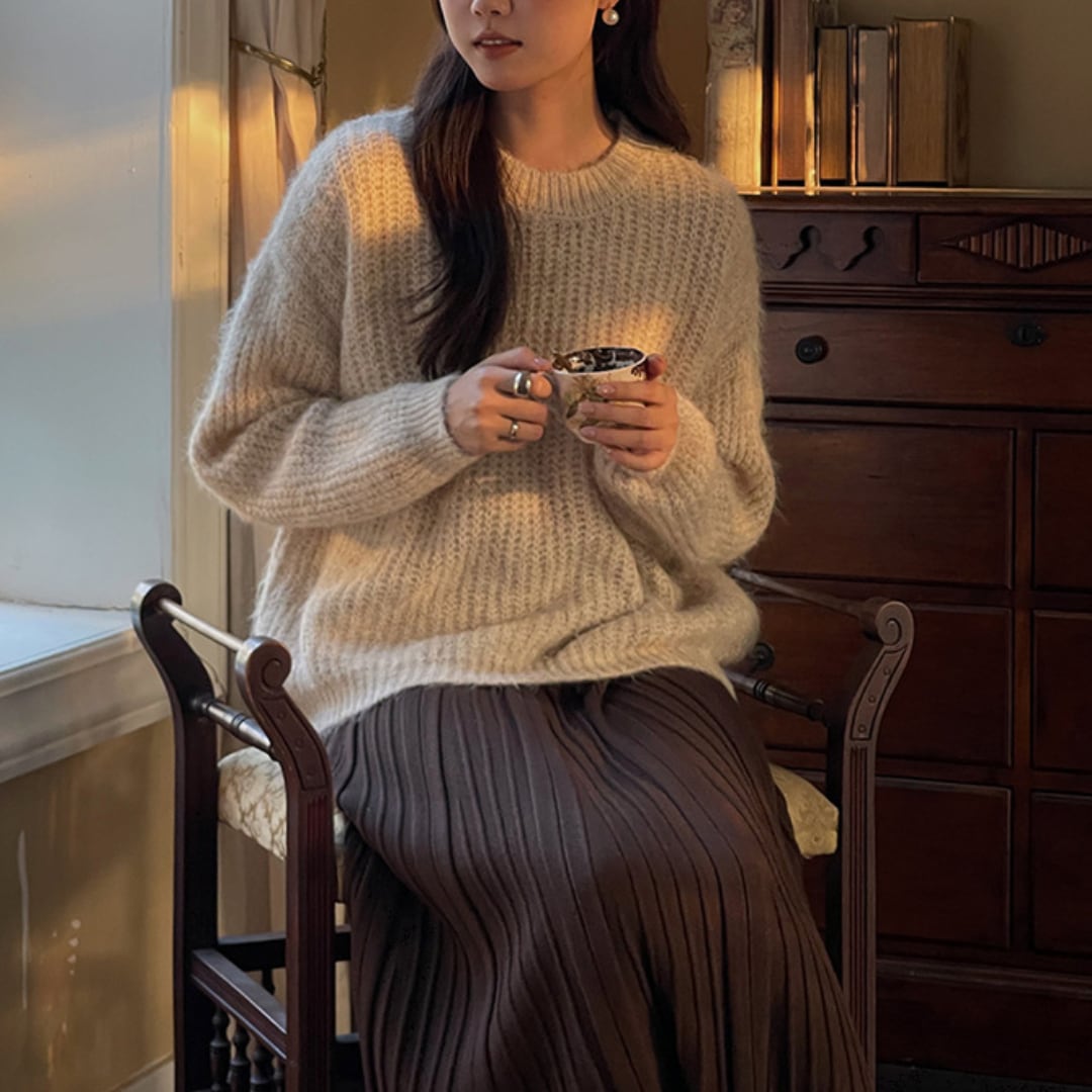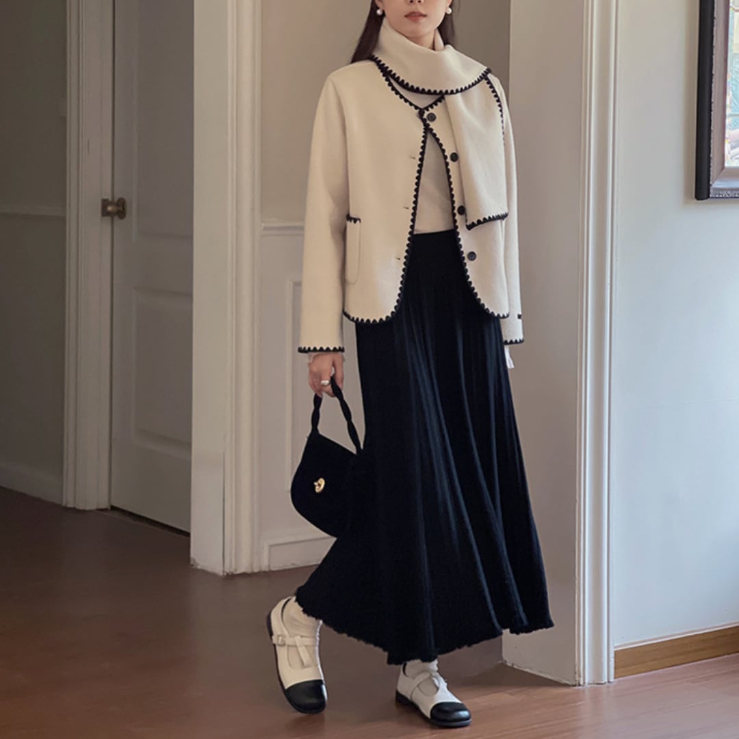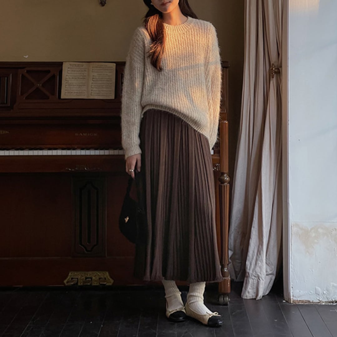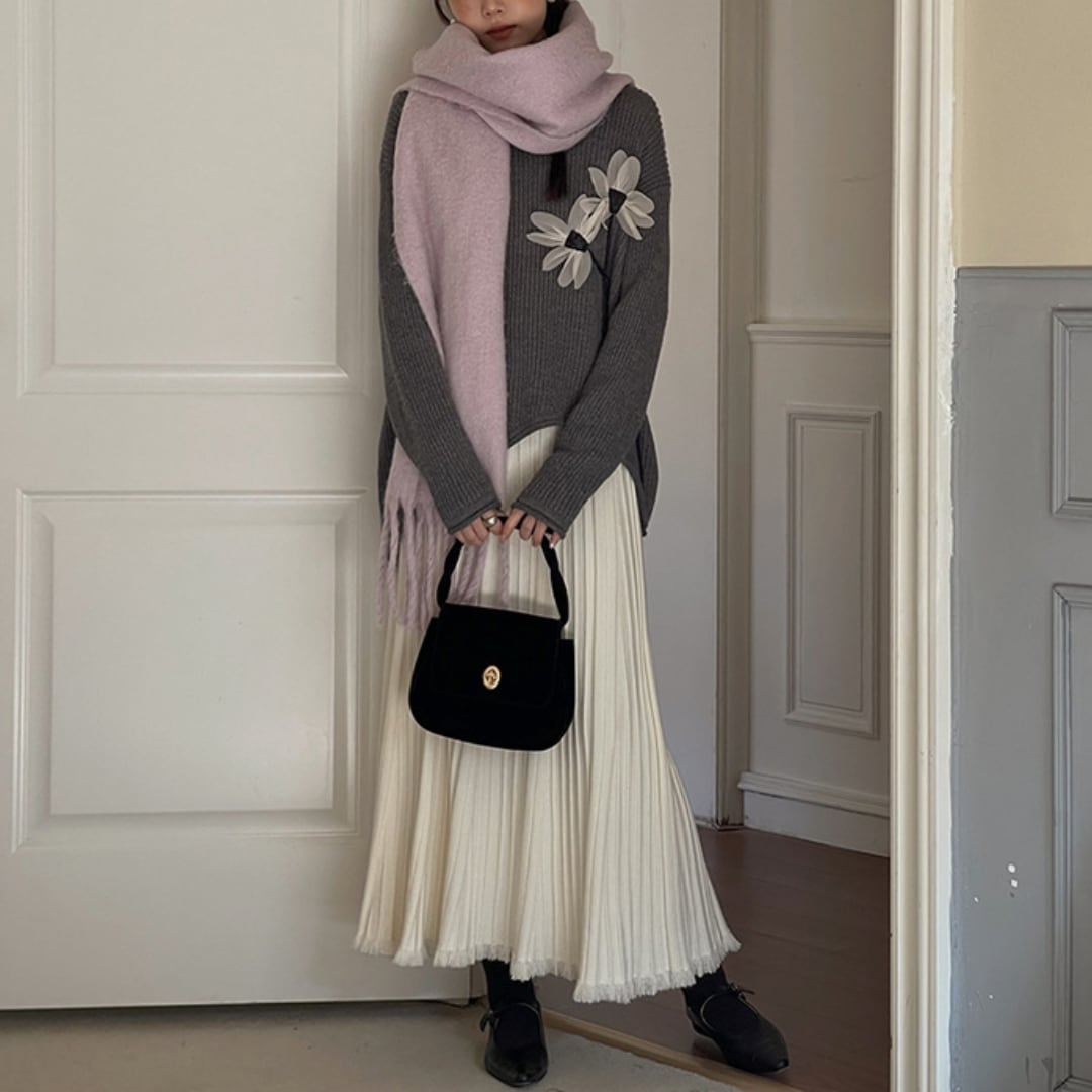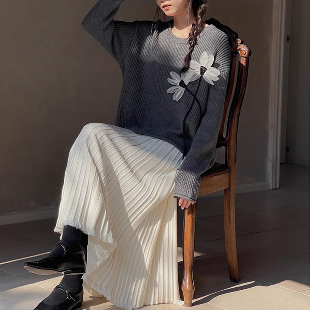 すらりと美しいシルエットを描くニットプリーツスカート。