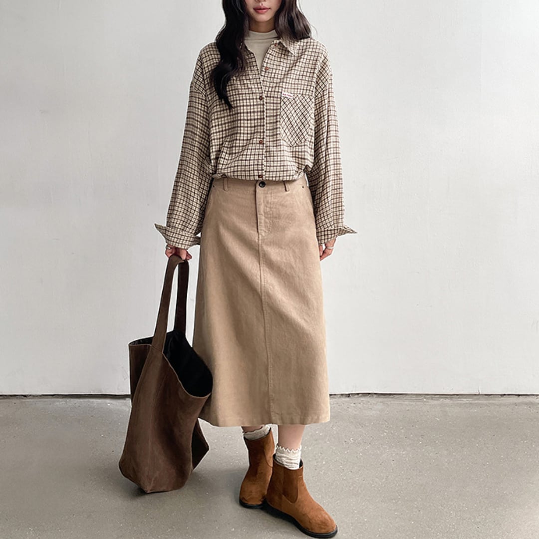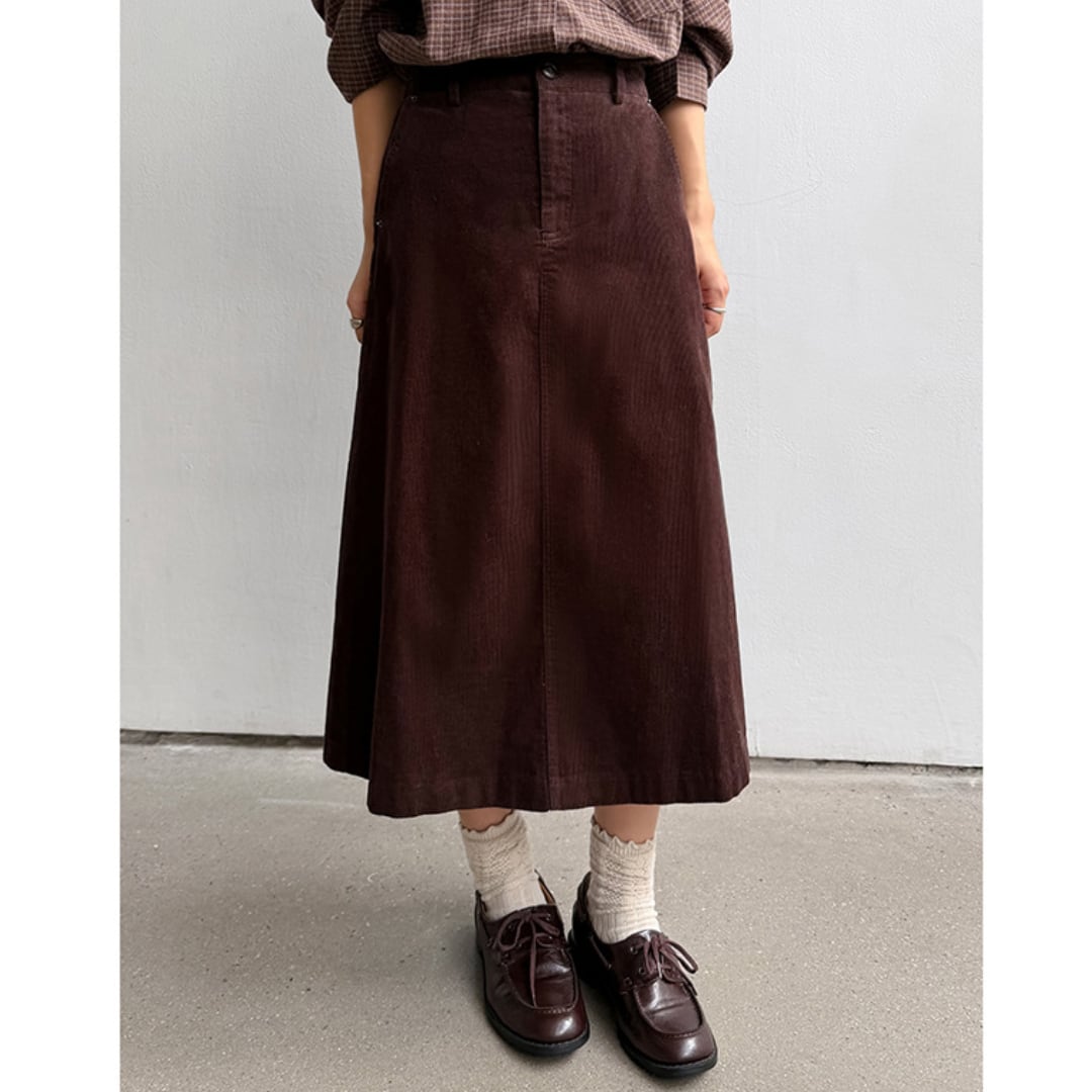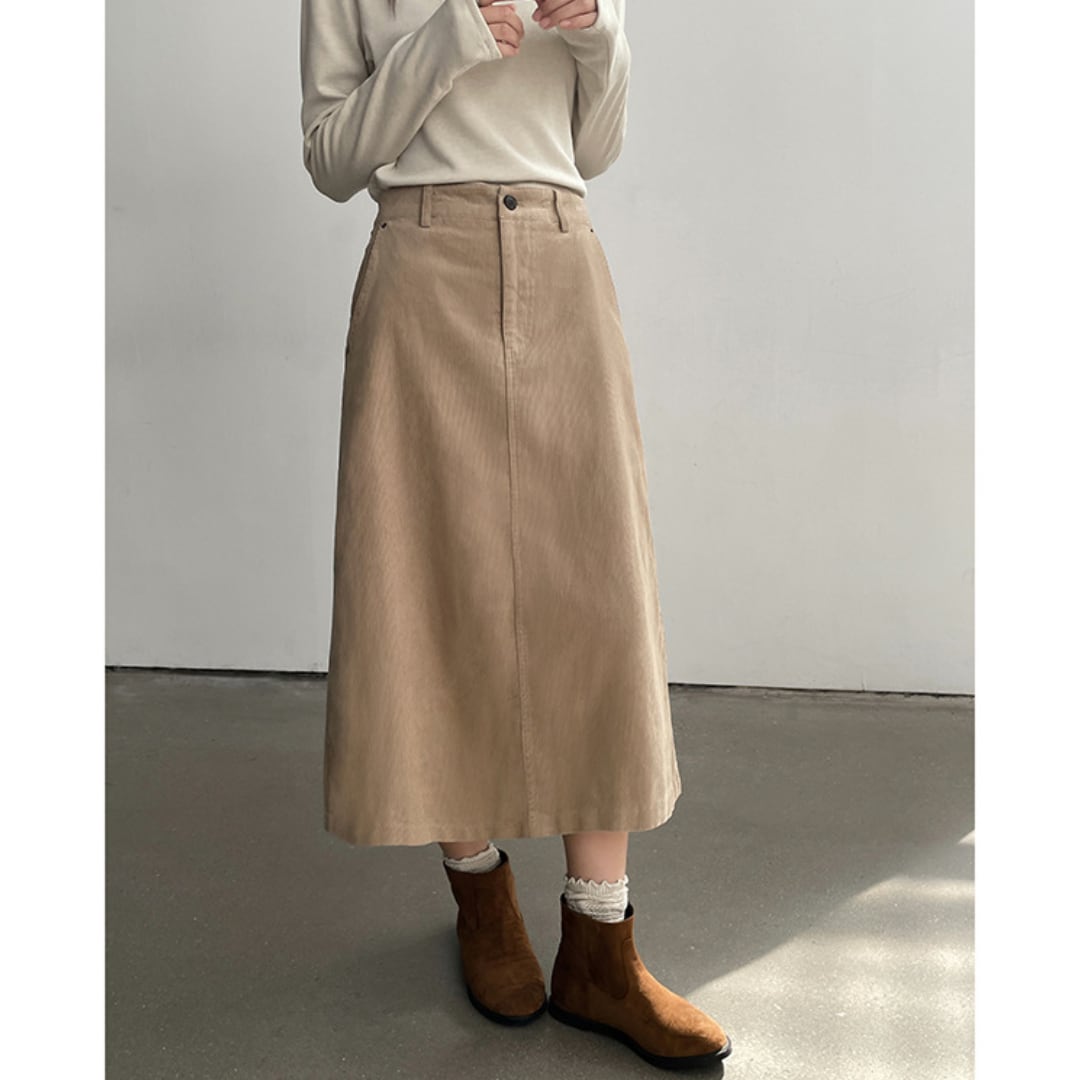 A-line silhouette corduroy midi skirt G944