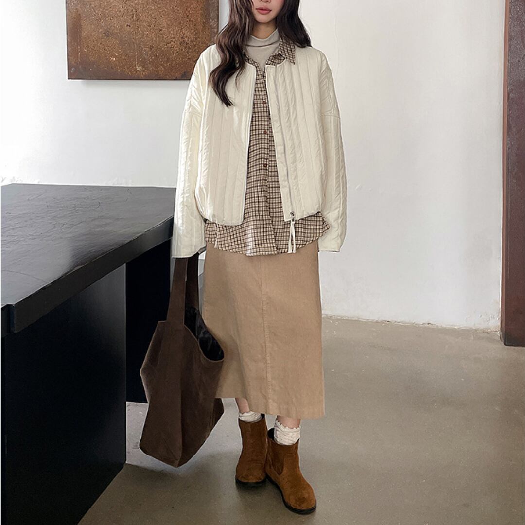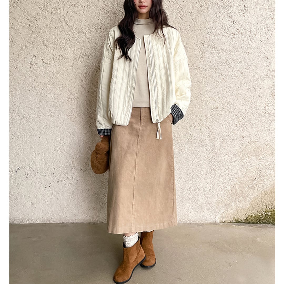 レトロカジュアルな雰囲気が大人可愛いコーデュロイスカート。