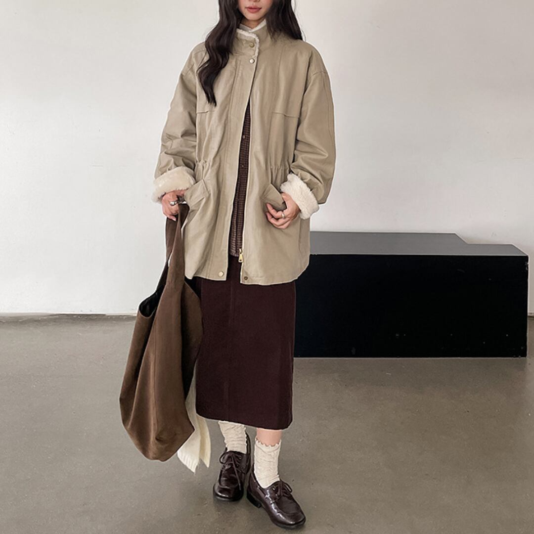 防寒力ありでサイドにはポケットが付いているため、レジャーコーデにもおすすめです。