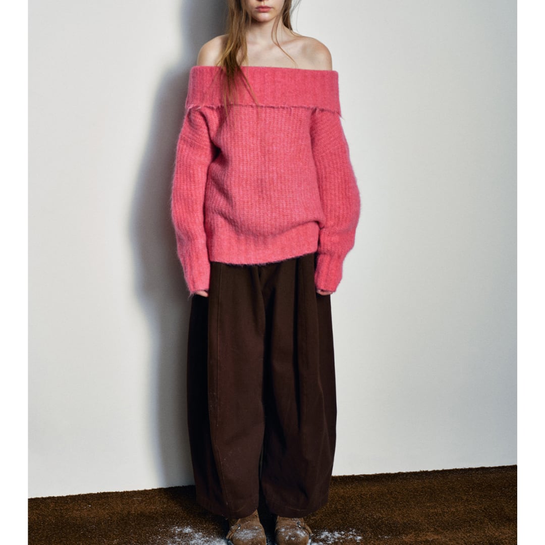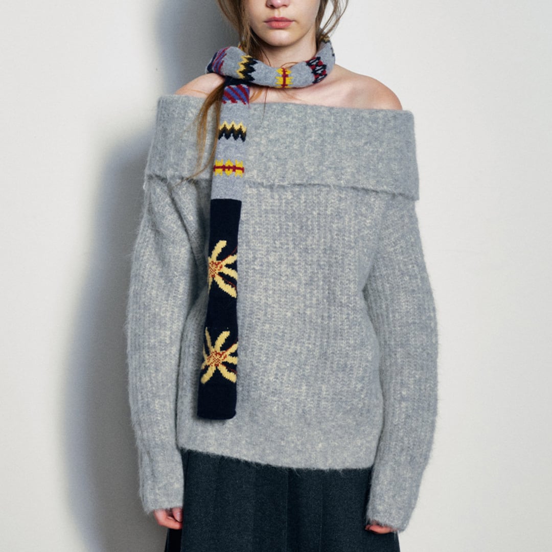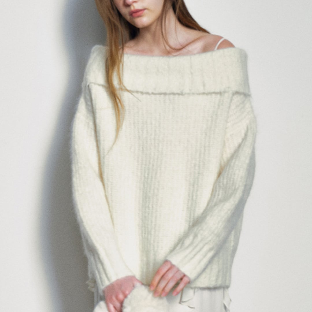Alpaca wool blend off shoulder knit pullover G950