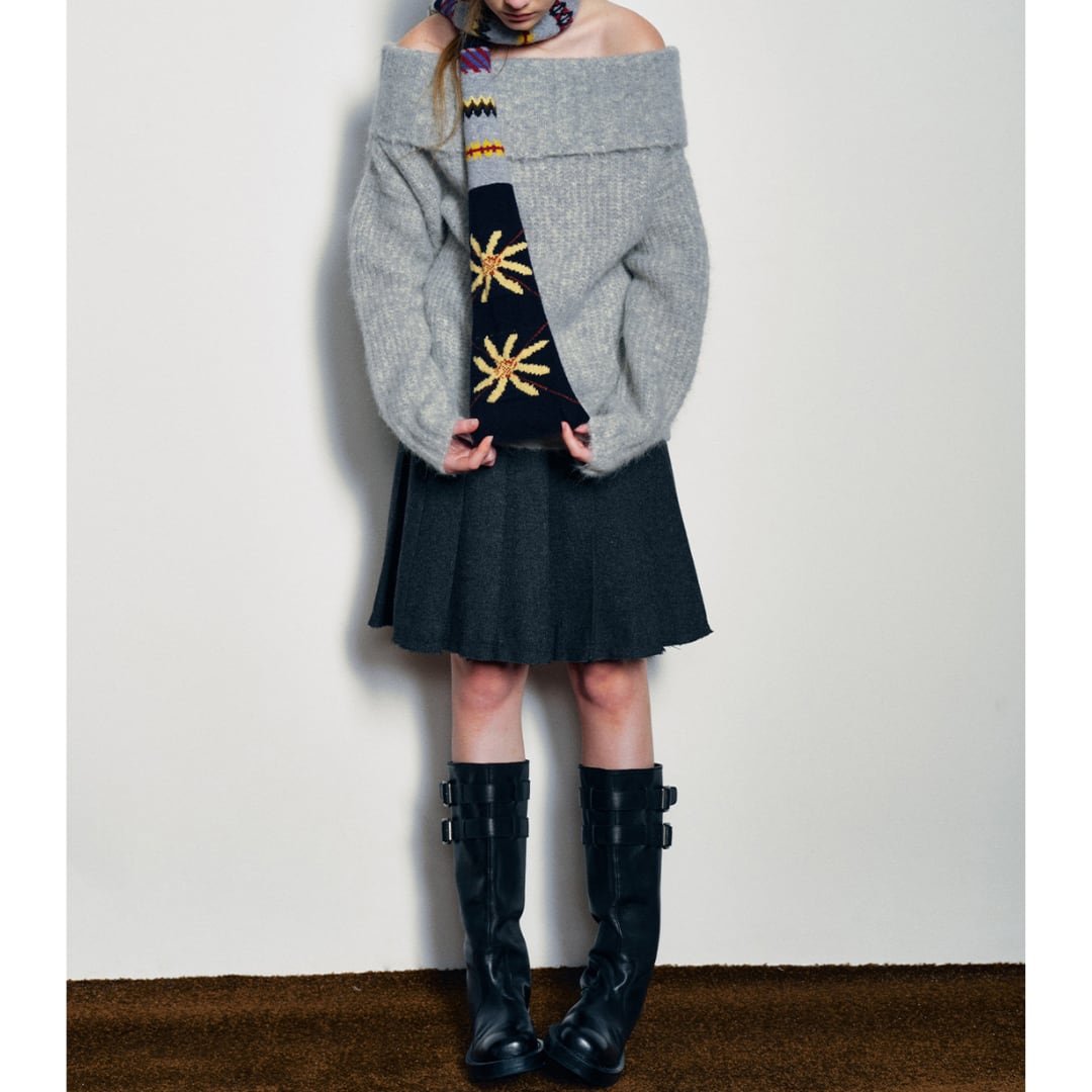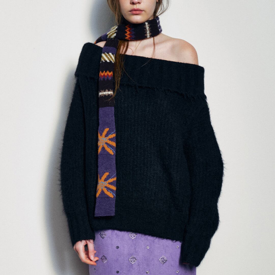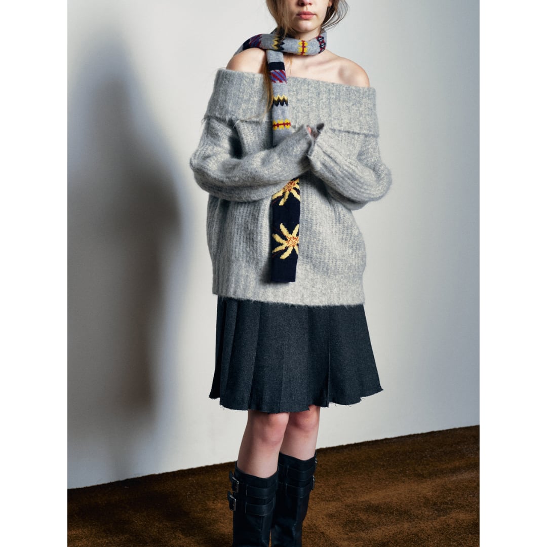 Alpaca wool blend off shoulder knit pullover G950