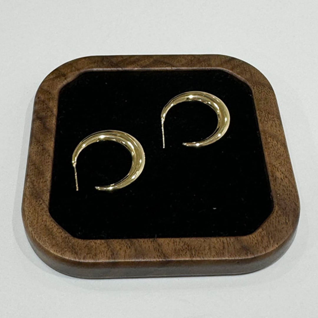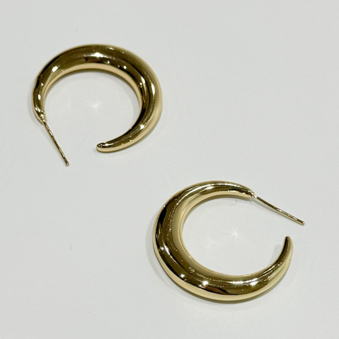 神秘的なツヤめきを見せる三日月モチーフのピアス。