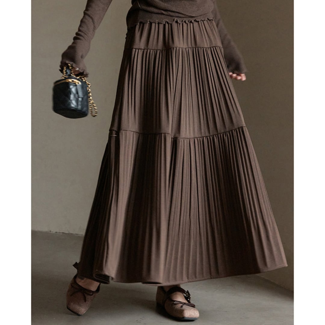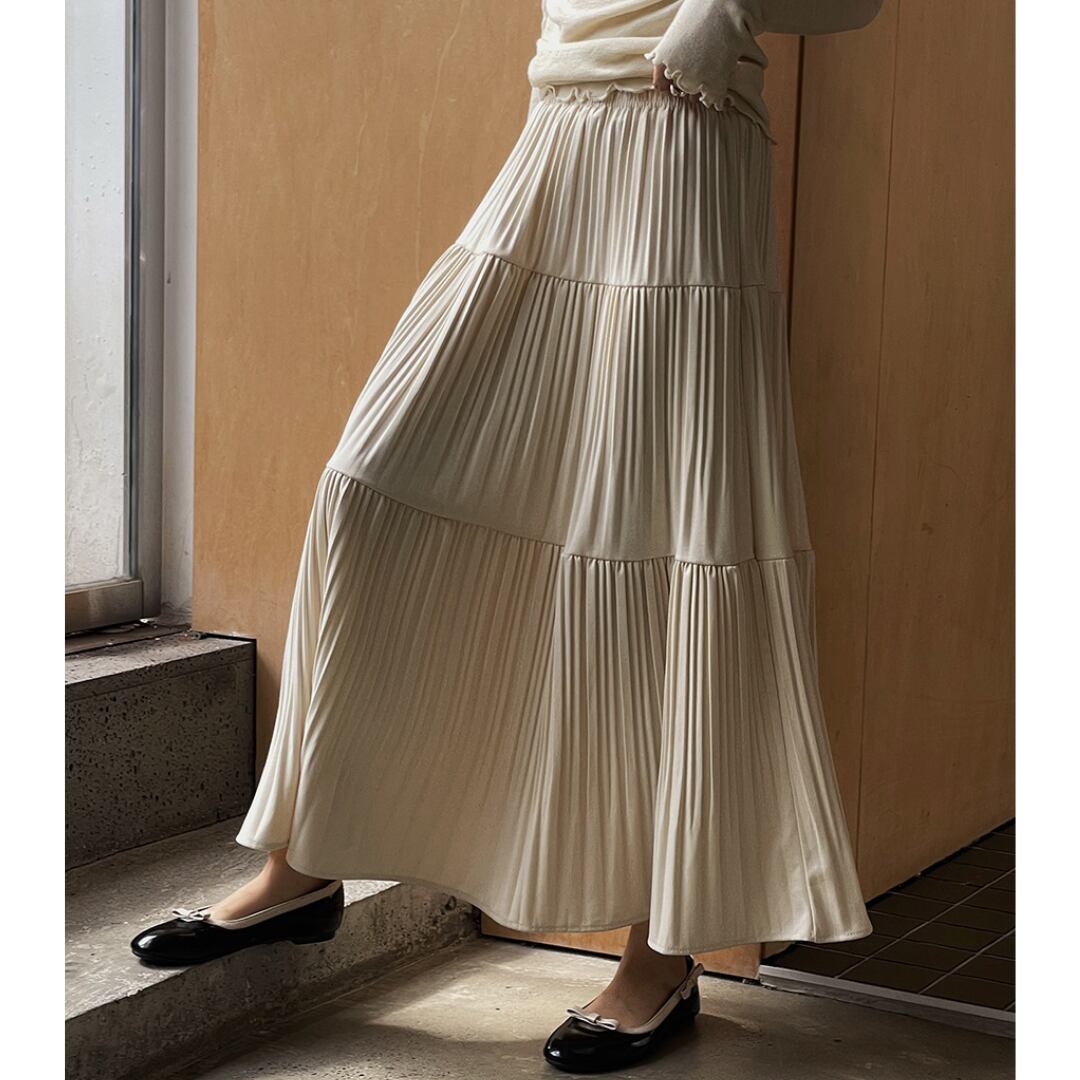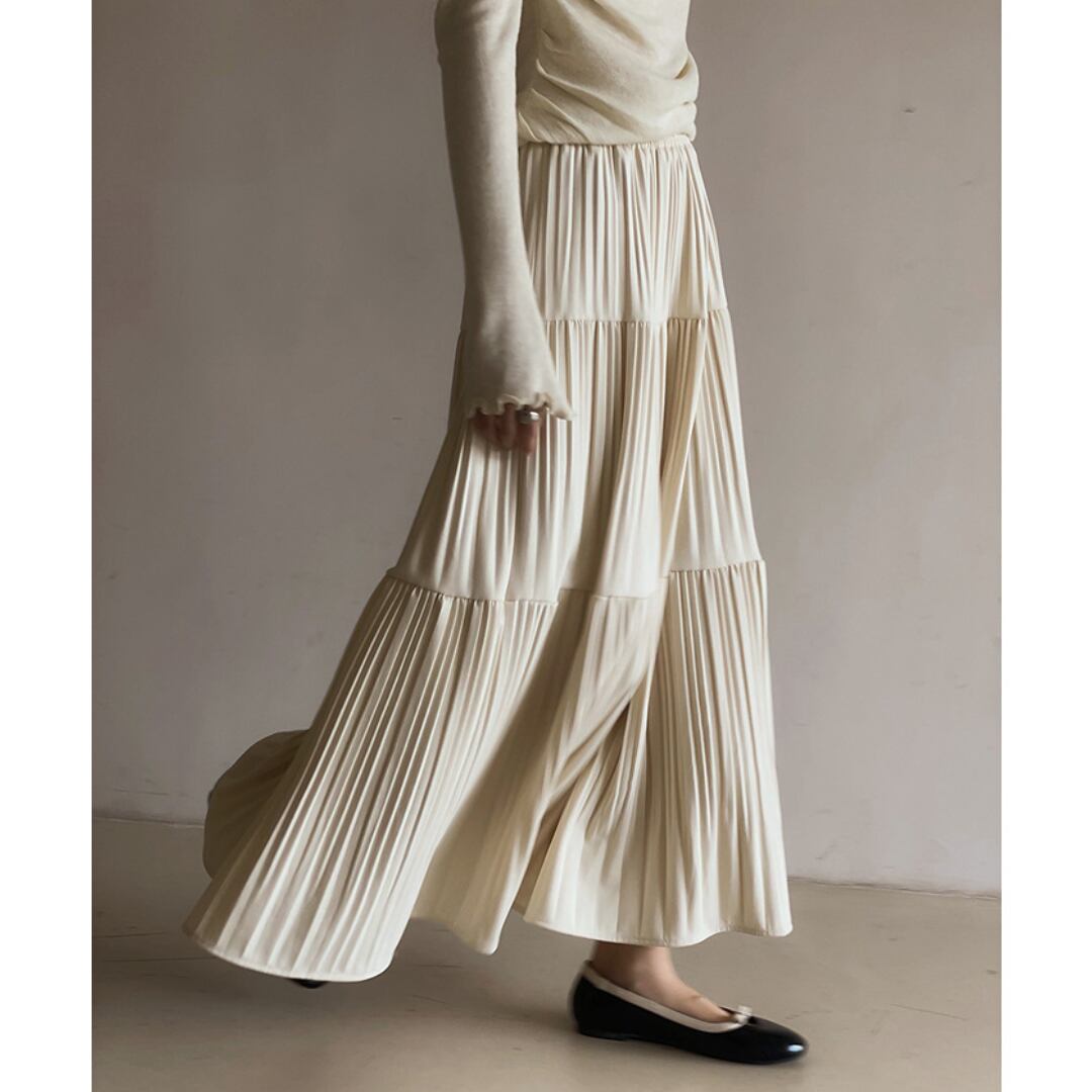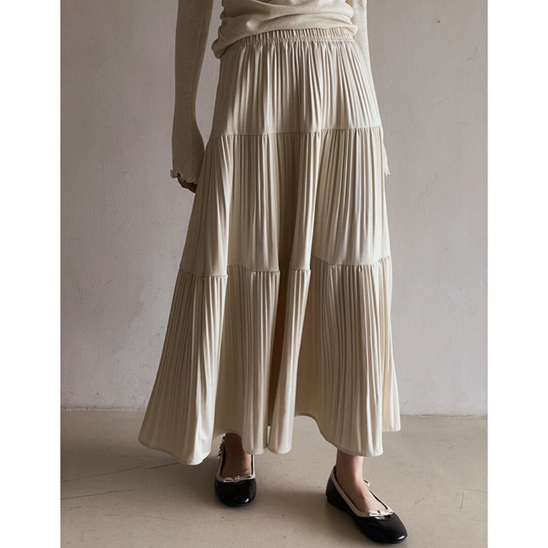 ドレッシーな動きを見せるプリーツ入りのティアードスカート。
