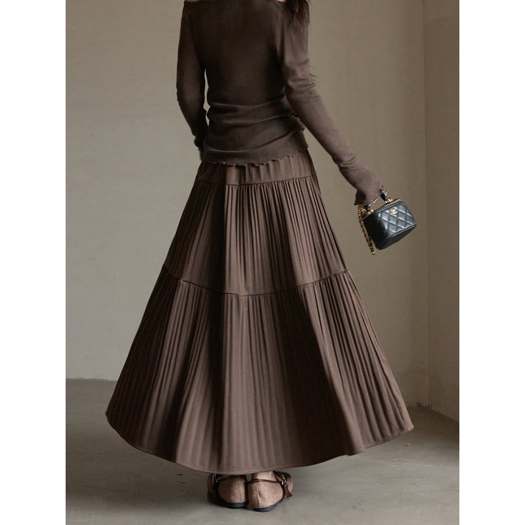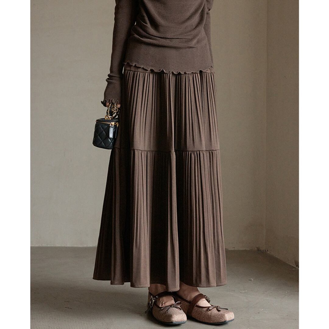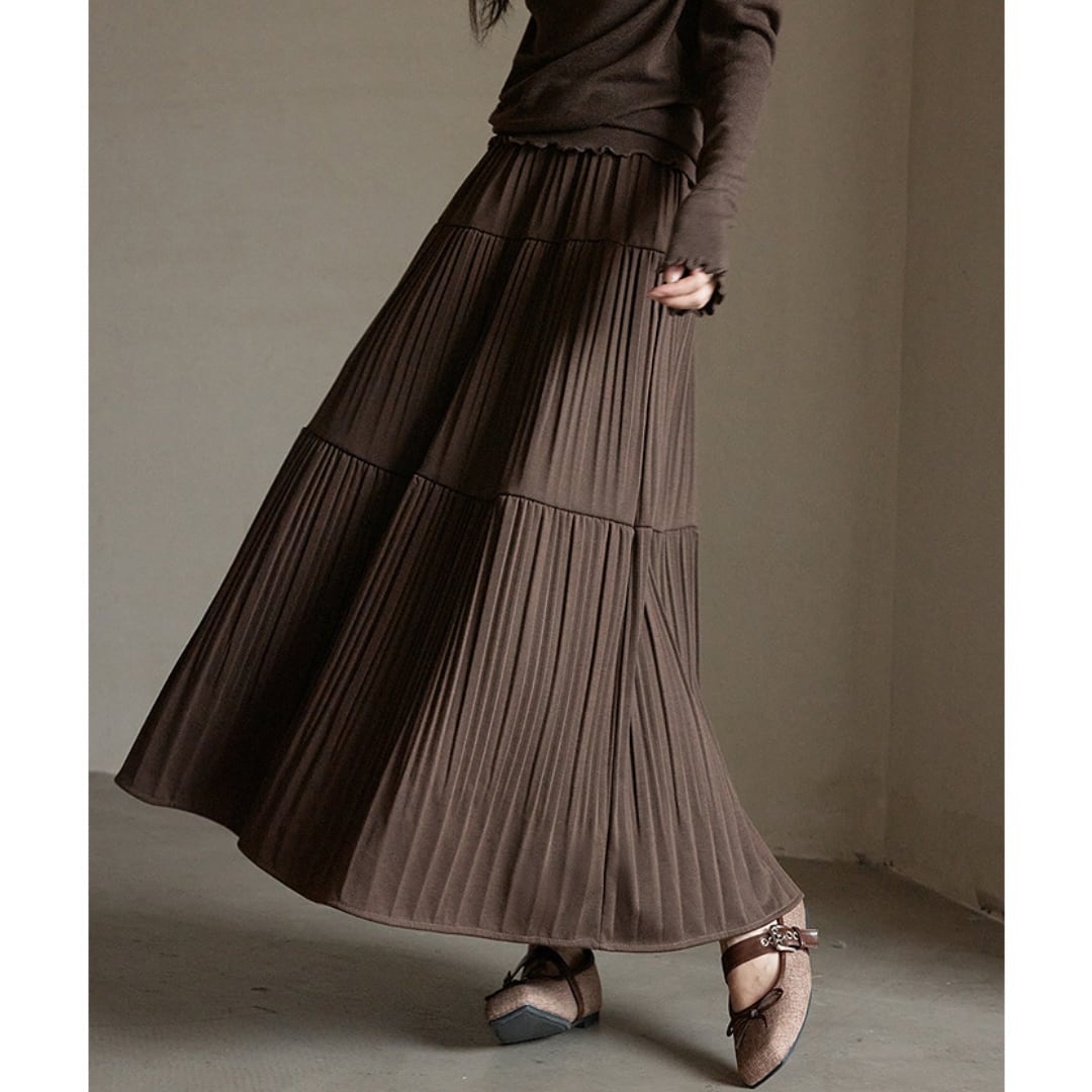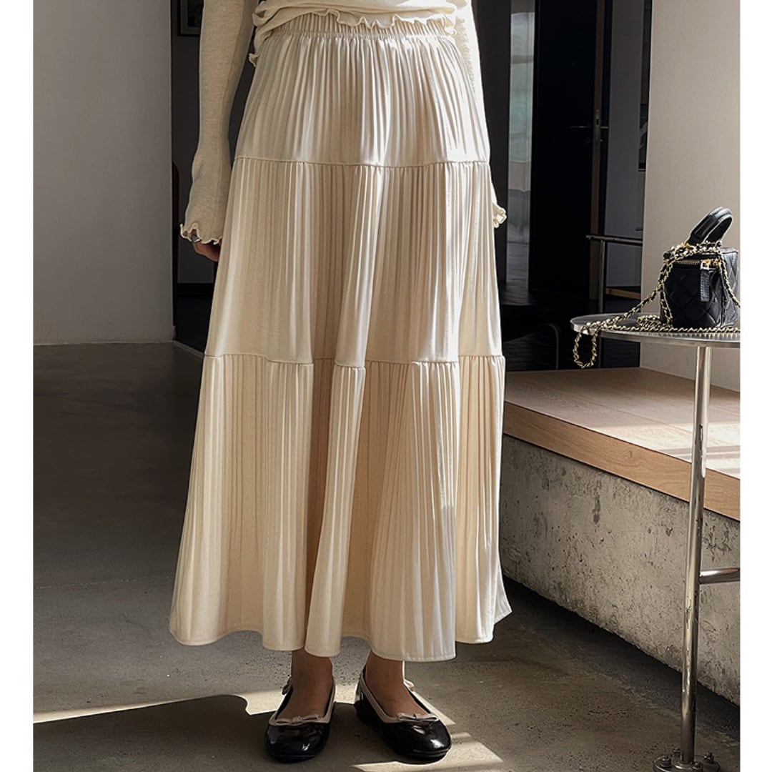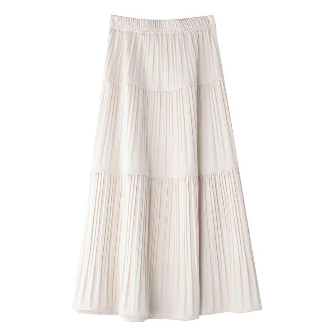 ドレッシーな動きを見せるプリーツ入りのティアードスカート。