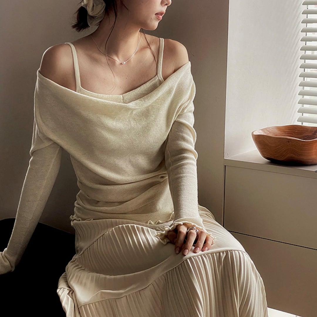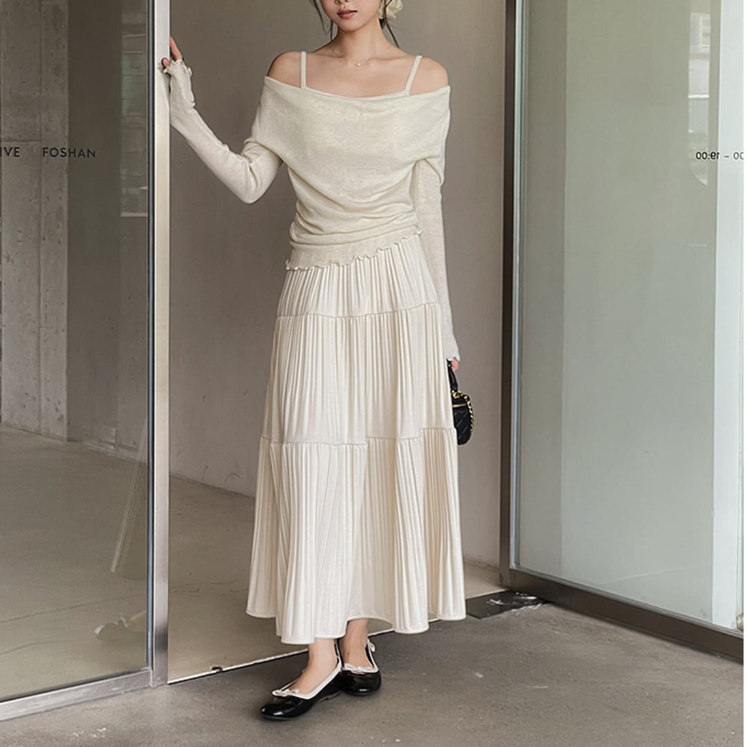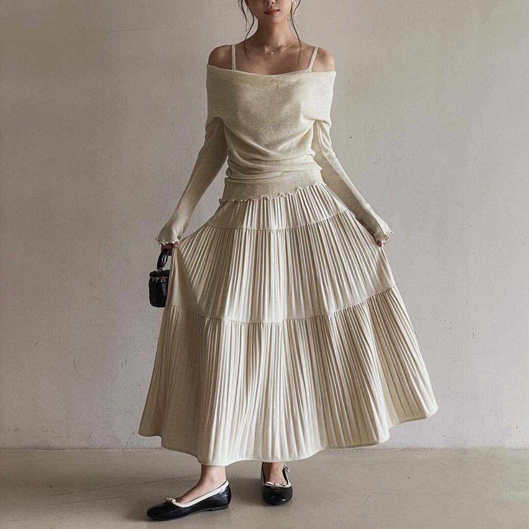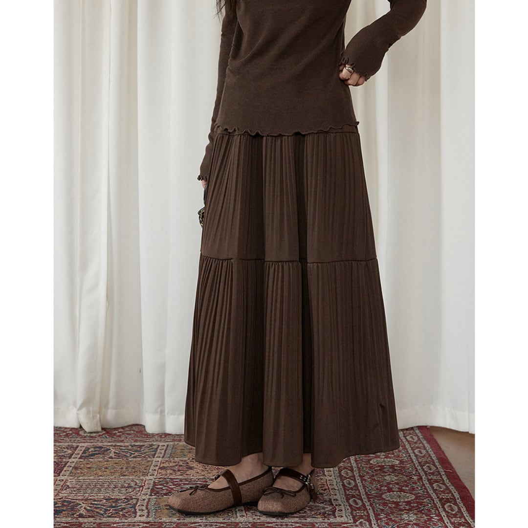 ドレッシーな動きを見せるプリーツ入りのティアードスカート。