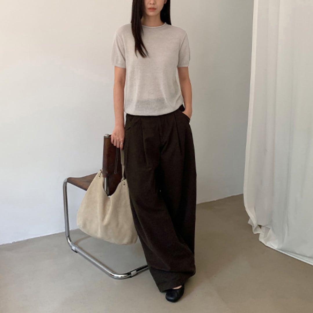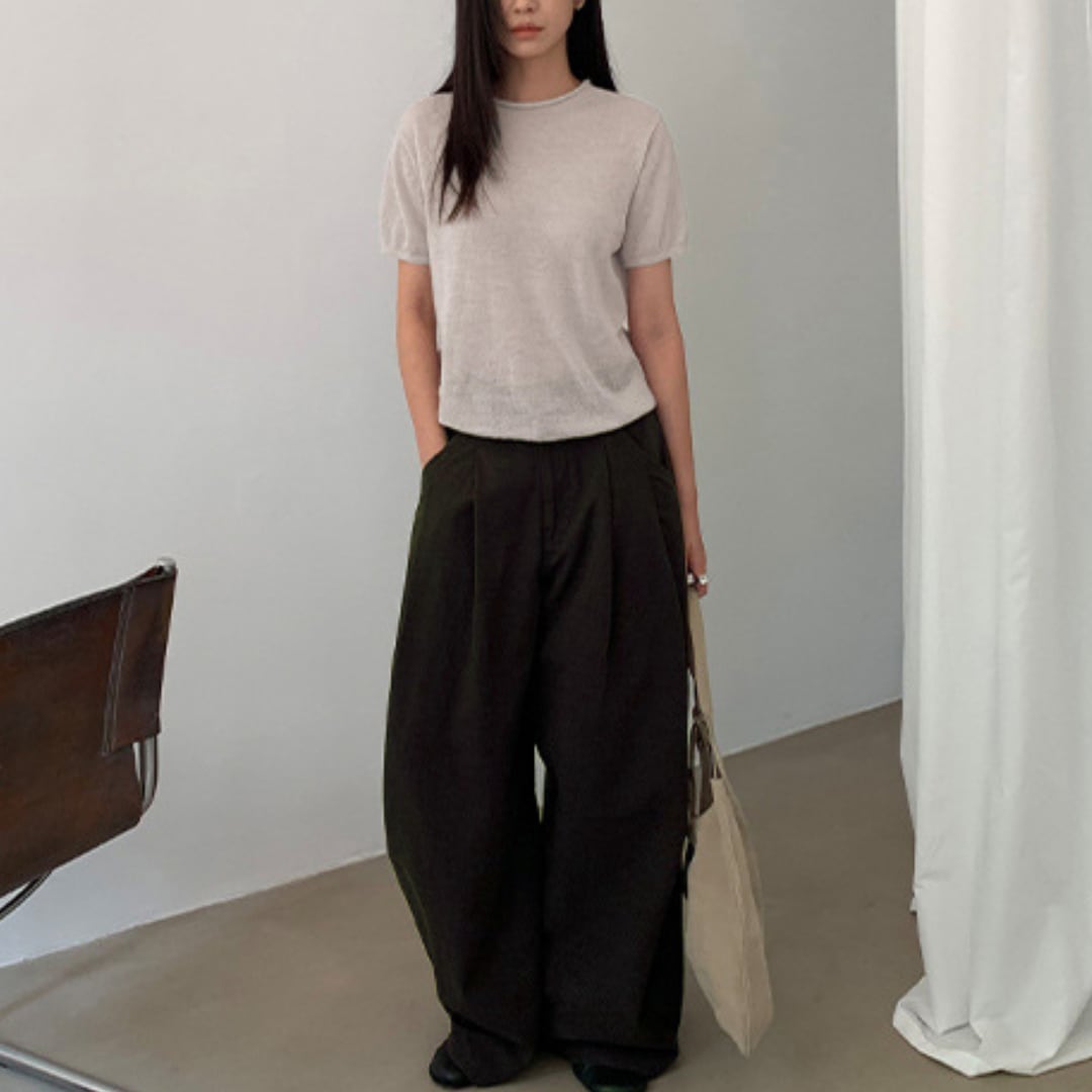コットン、テンセル、リネンを配合した着心地の良いワイドパンツ。