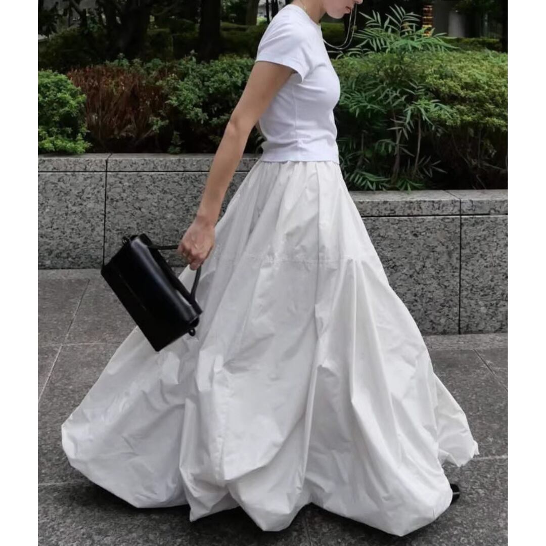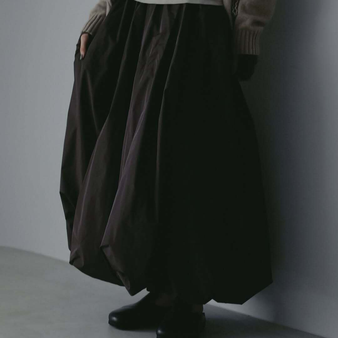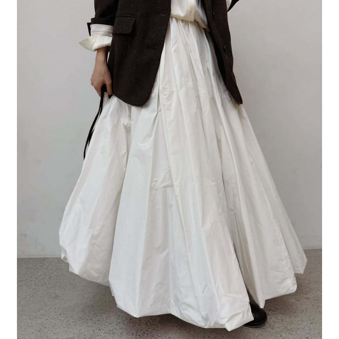 ふんわり軽やかに広がるロング丈のバルーンスカート。
