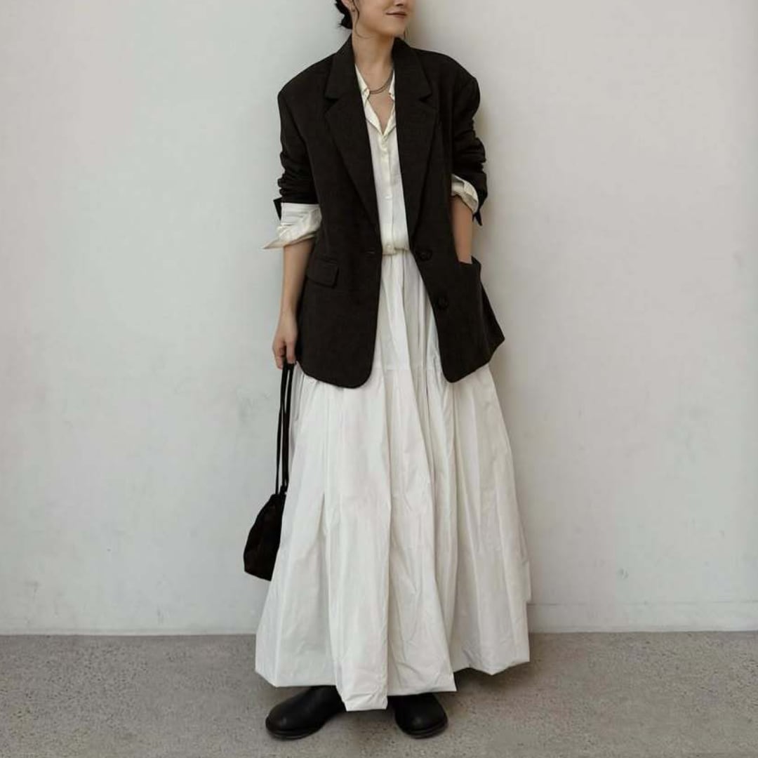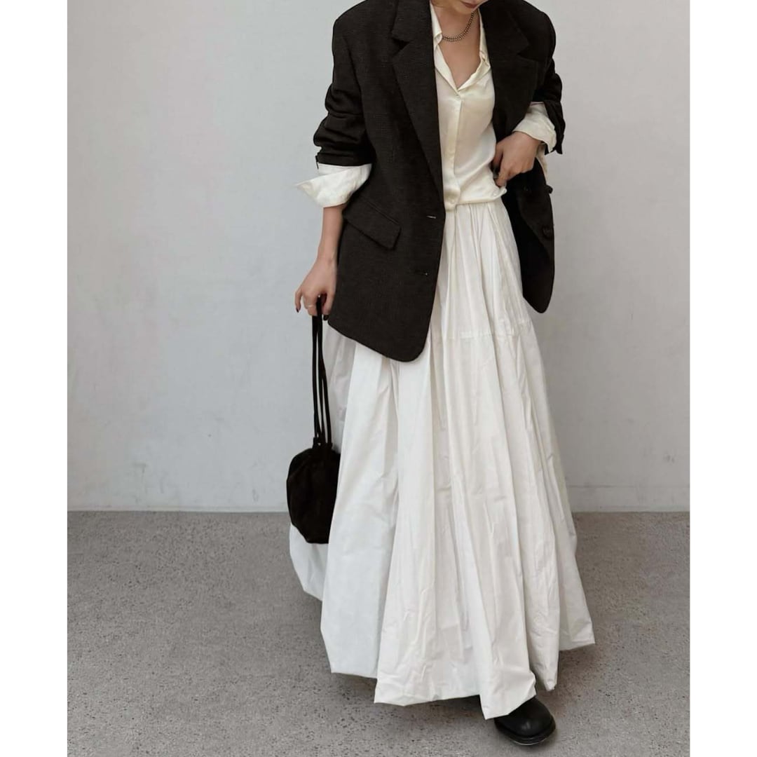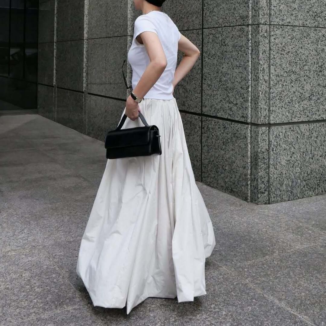 ふんわり軽やかに広がるロング丈のバルーンスカート。