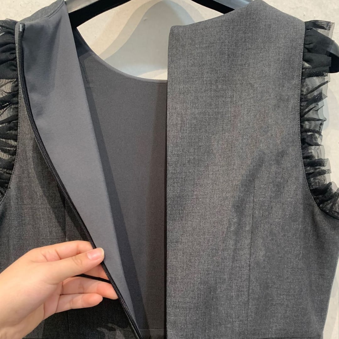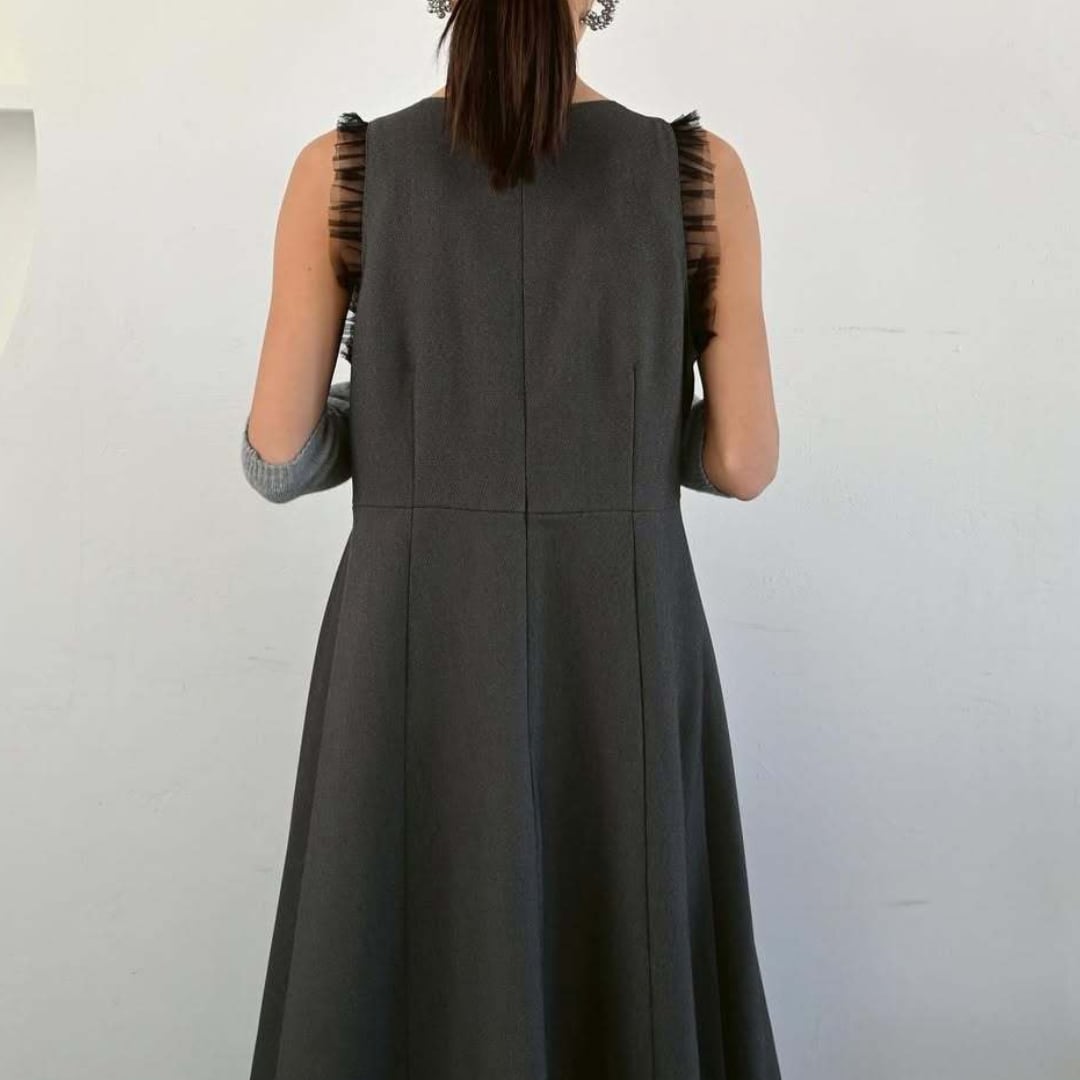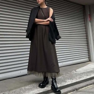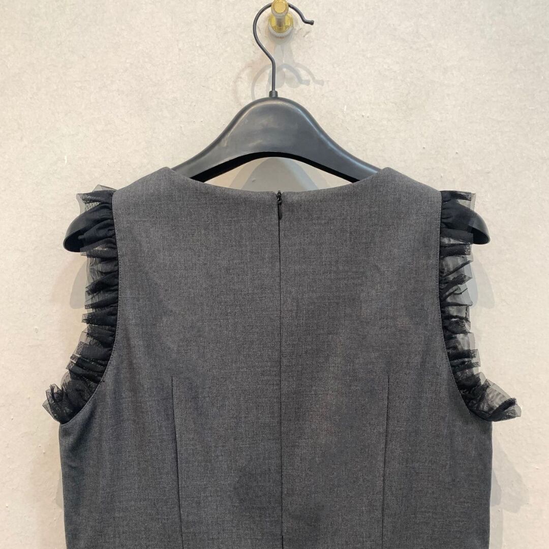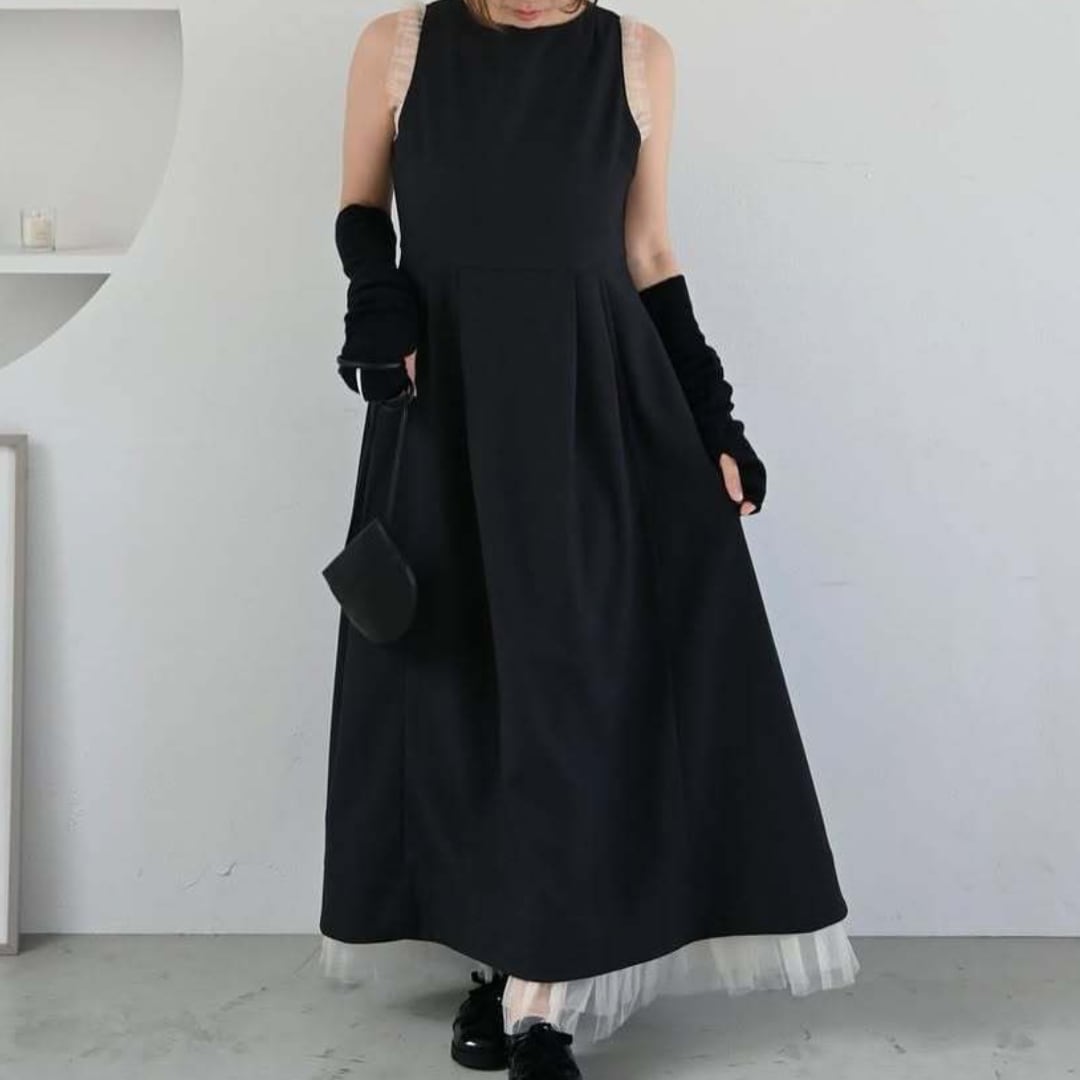 裾とアームホールにフリルレースをあしらったノースリーブワンピース。