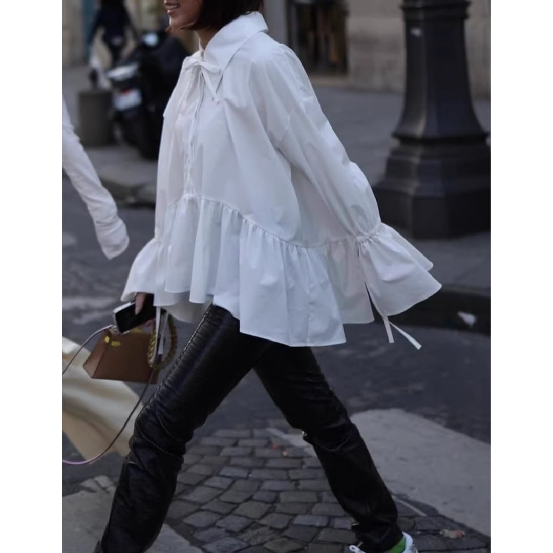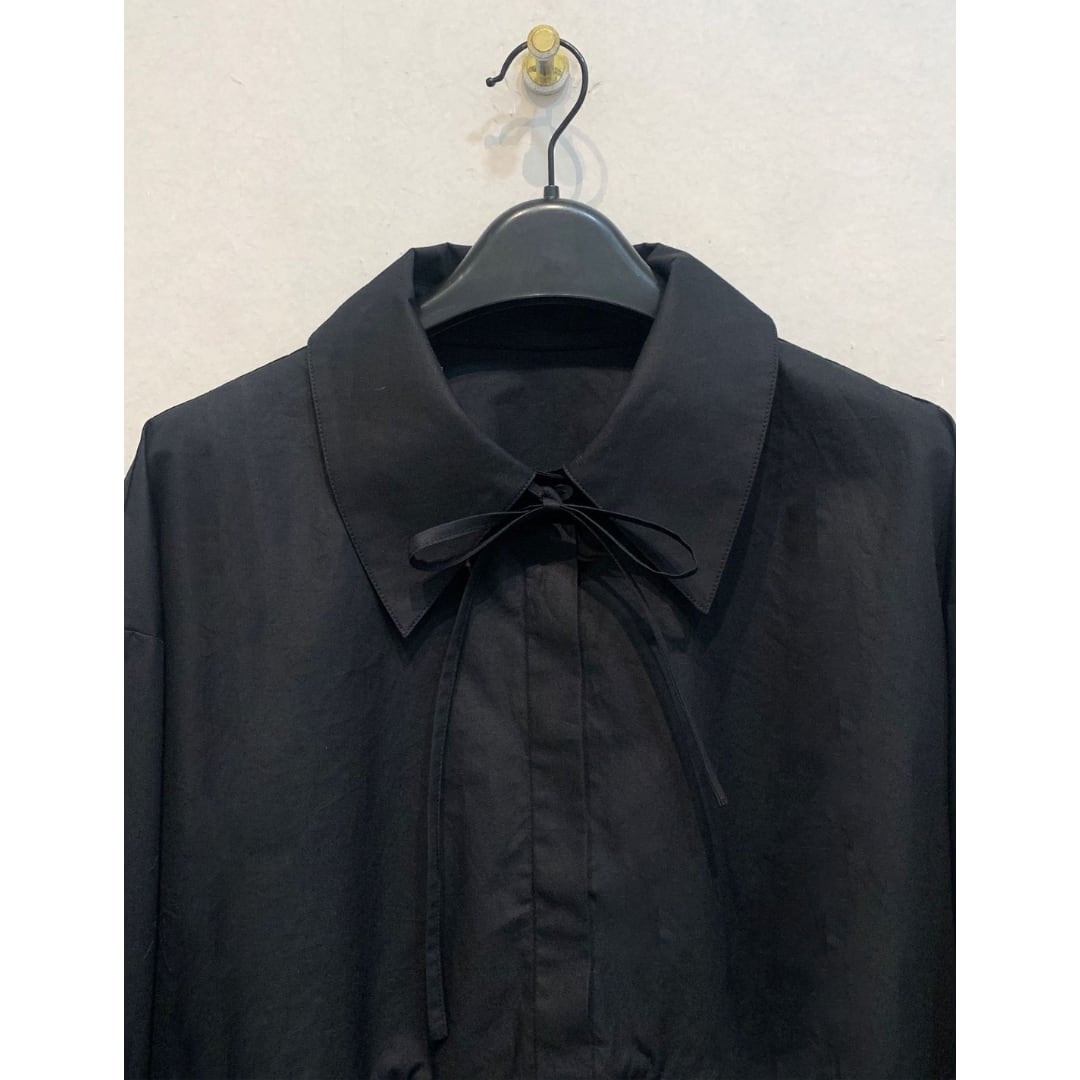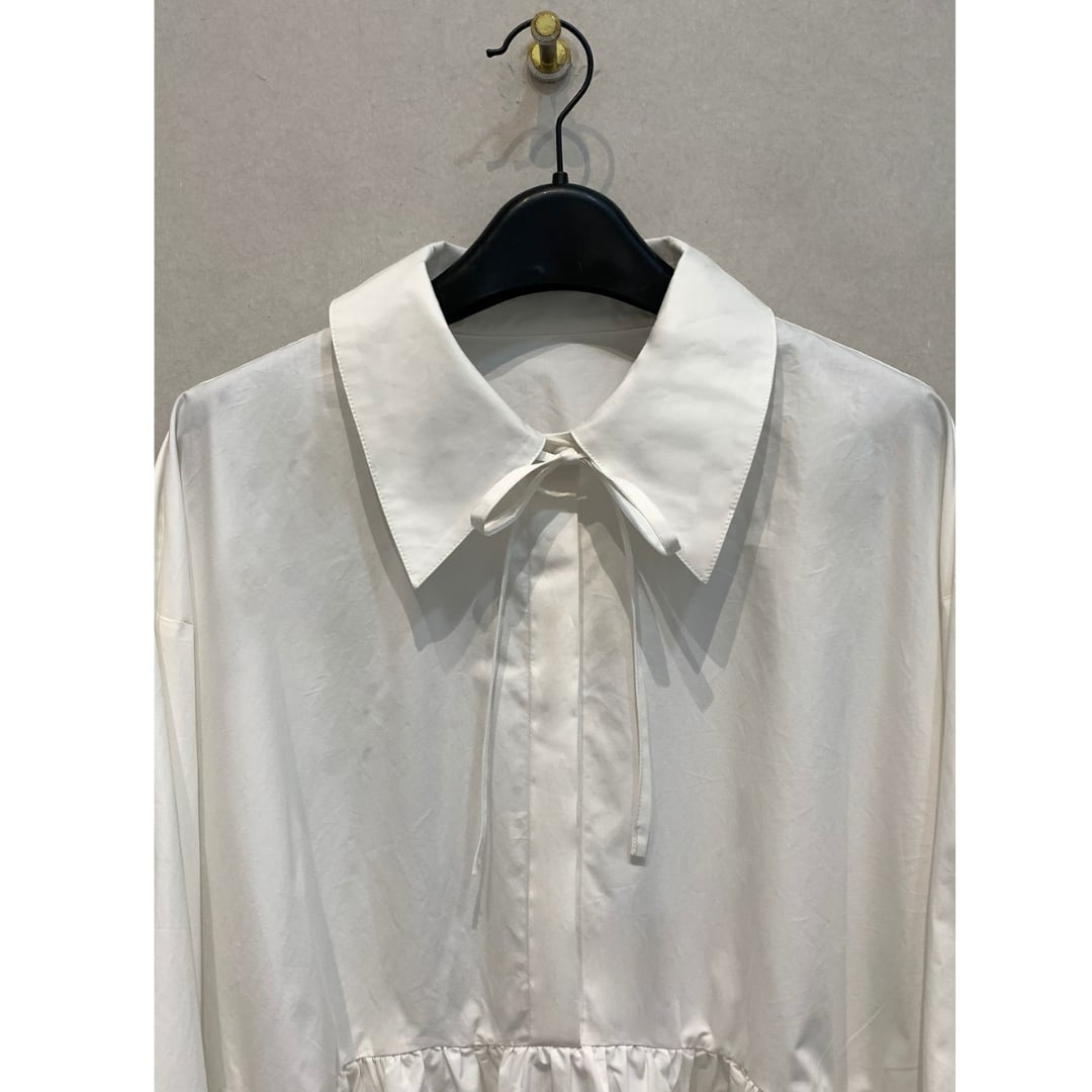 大人ガーリーなペプラムシルエットのボウタイブラウス。