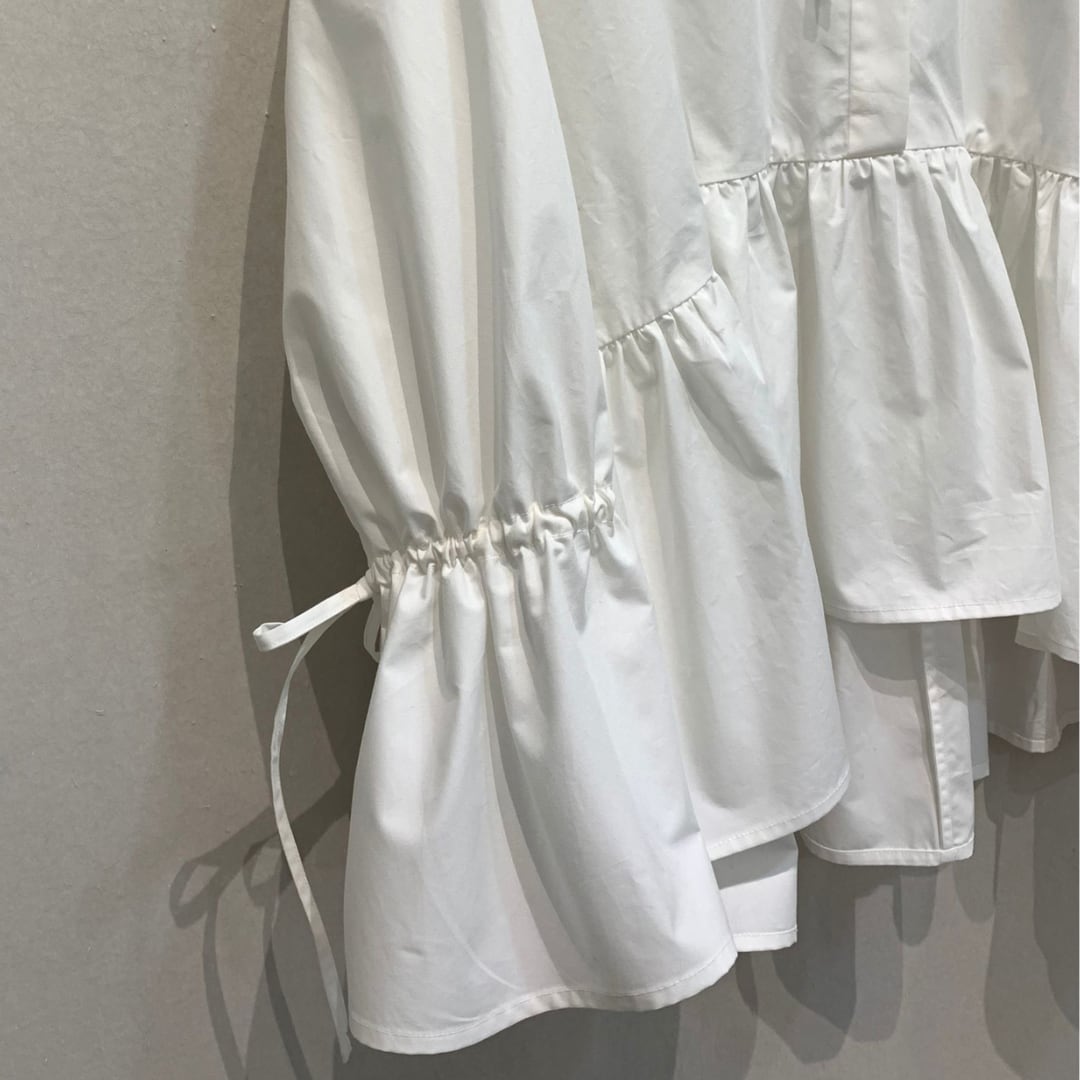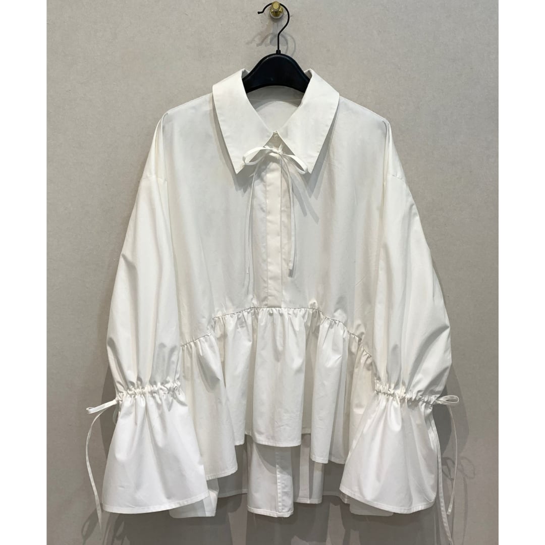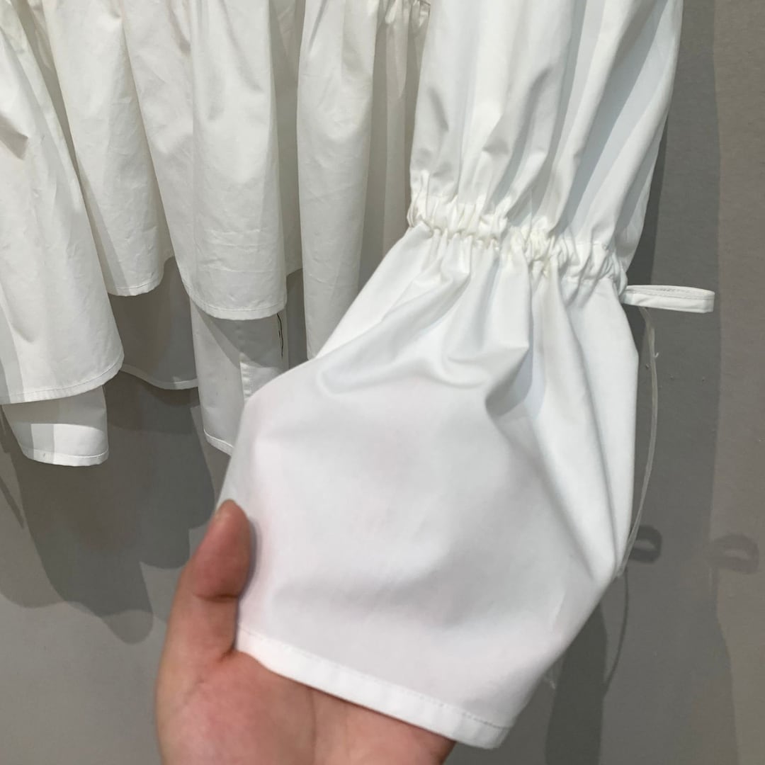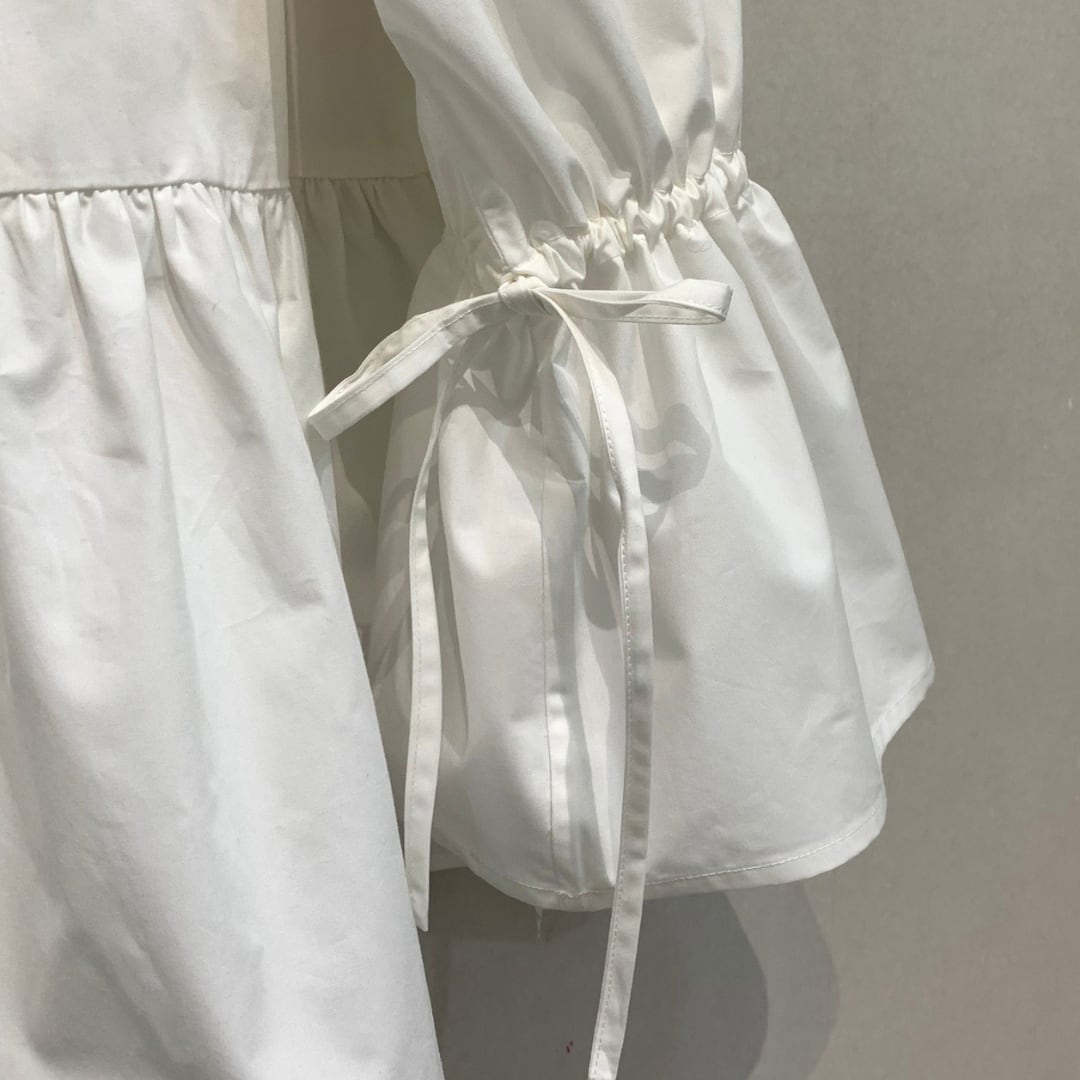 くしゅっとしたリボン付きのキャンディスリーブが可愛く、程良くハリのあるコットン生地を使用。フェミニン、甘カジ、甘辛MIXなどのコーデで大活躍します。
