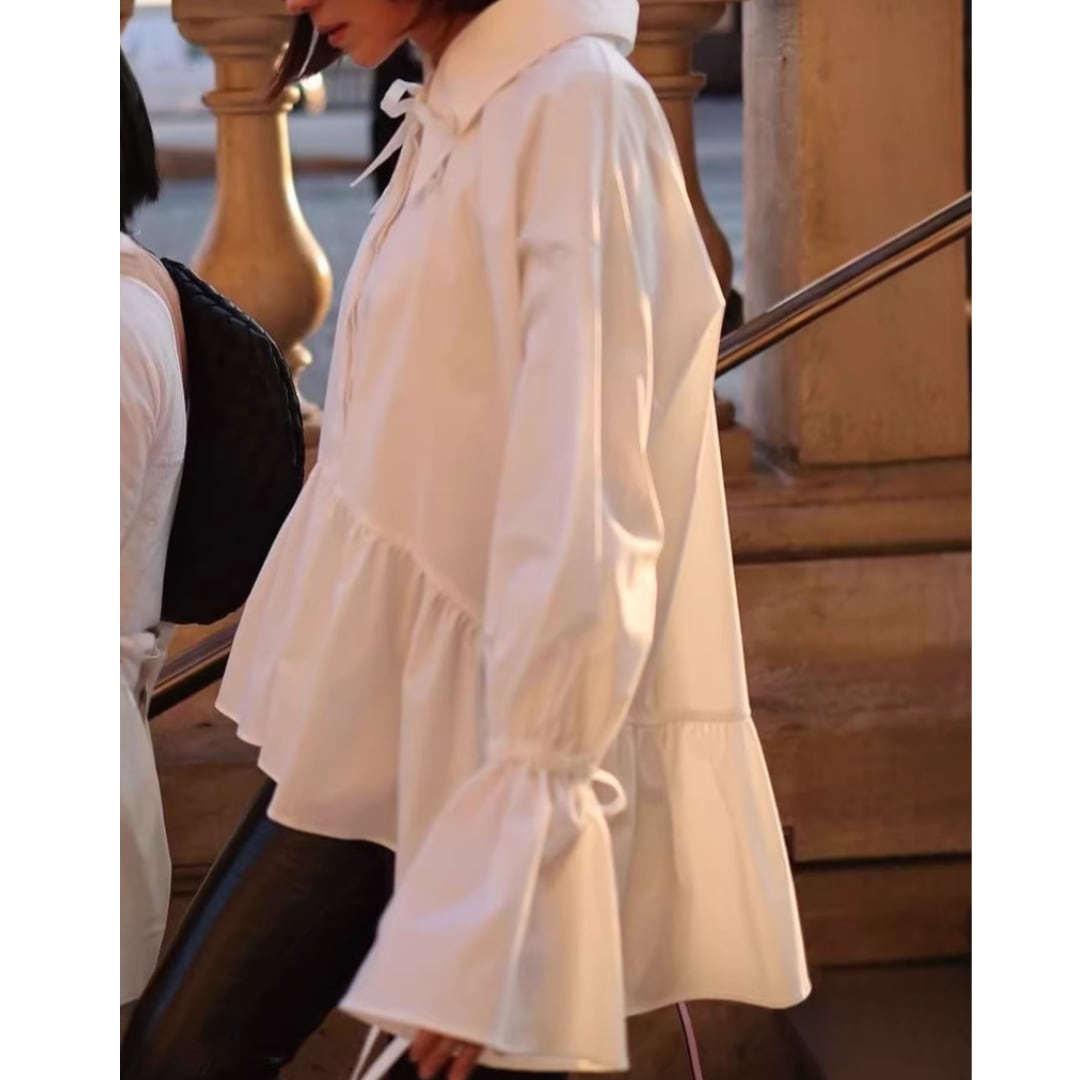 Ribbon candy sleeve bow tie blouse G989