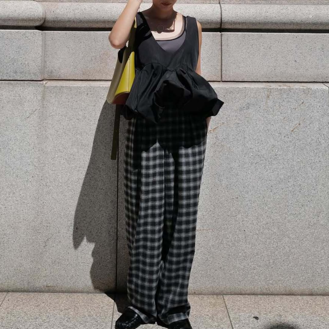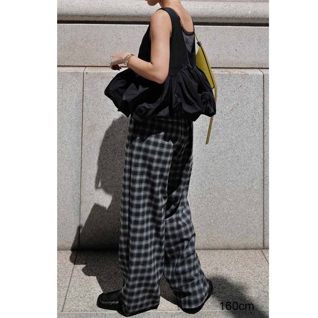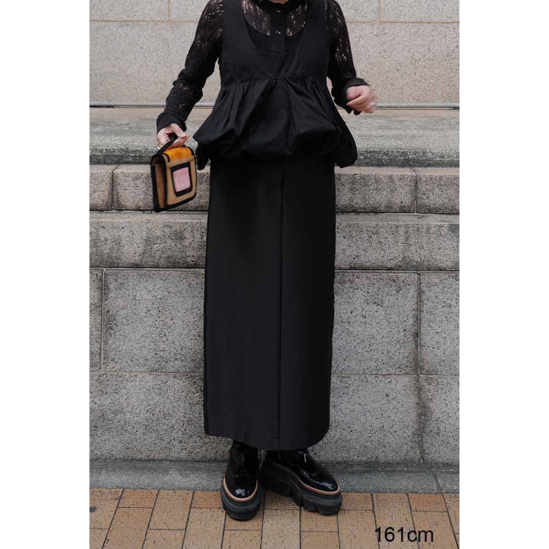 ブラウスやTシャツの上に着るだけで今どきにアップデートすることができ、中に着るアイテムによって雰囲気が変化。ハイウエストな切り替え入りで脚長効果も感じられます。