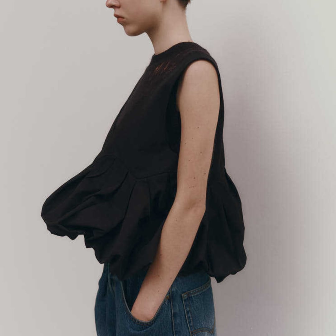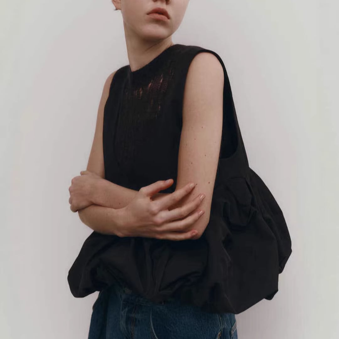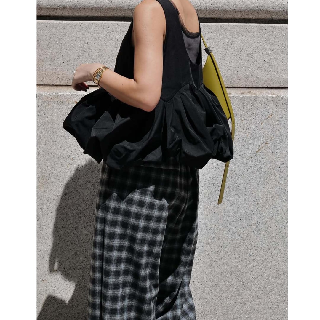ふんわりくしゅっとした裾が可愛いバルーンビスチェ。
