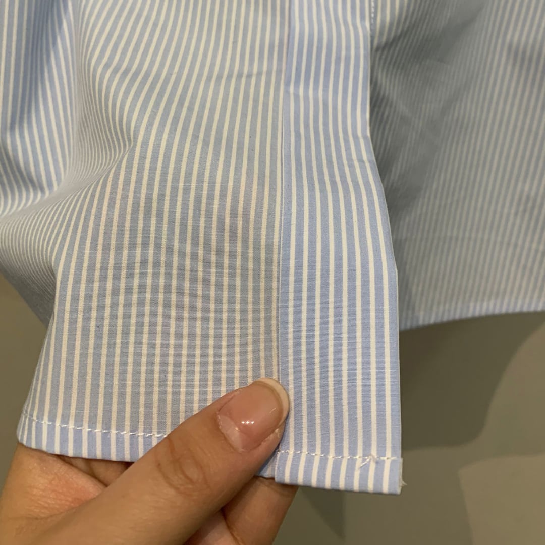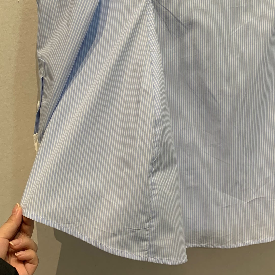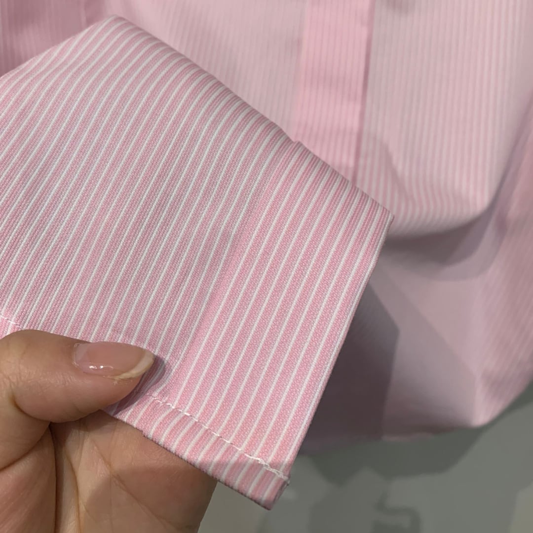 細めのストライプと比翼仕立てのデザインですっきりとした印象に。