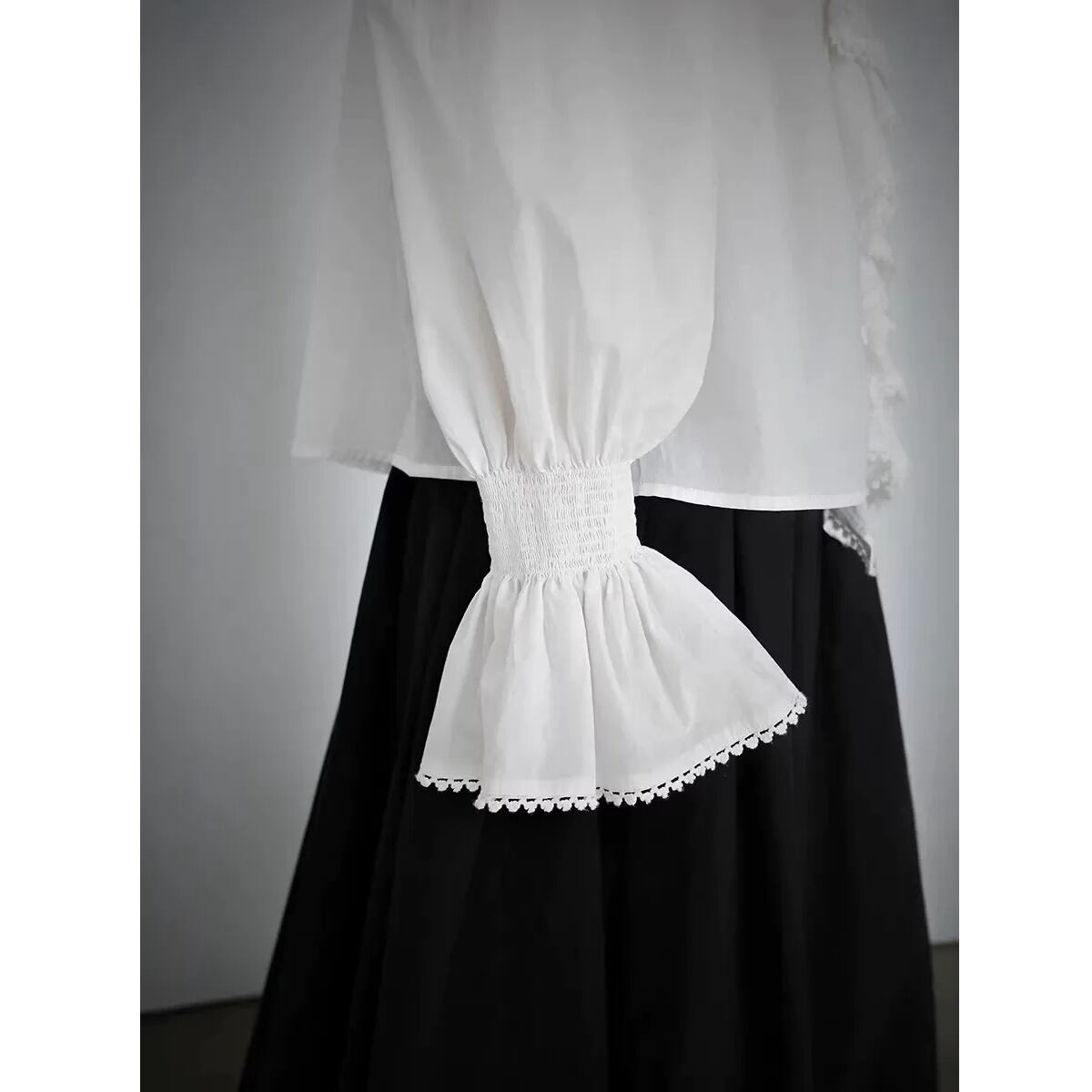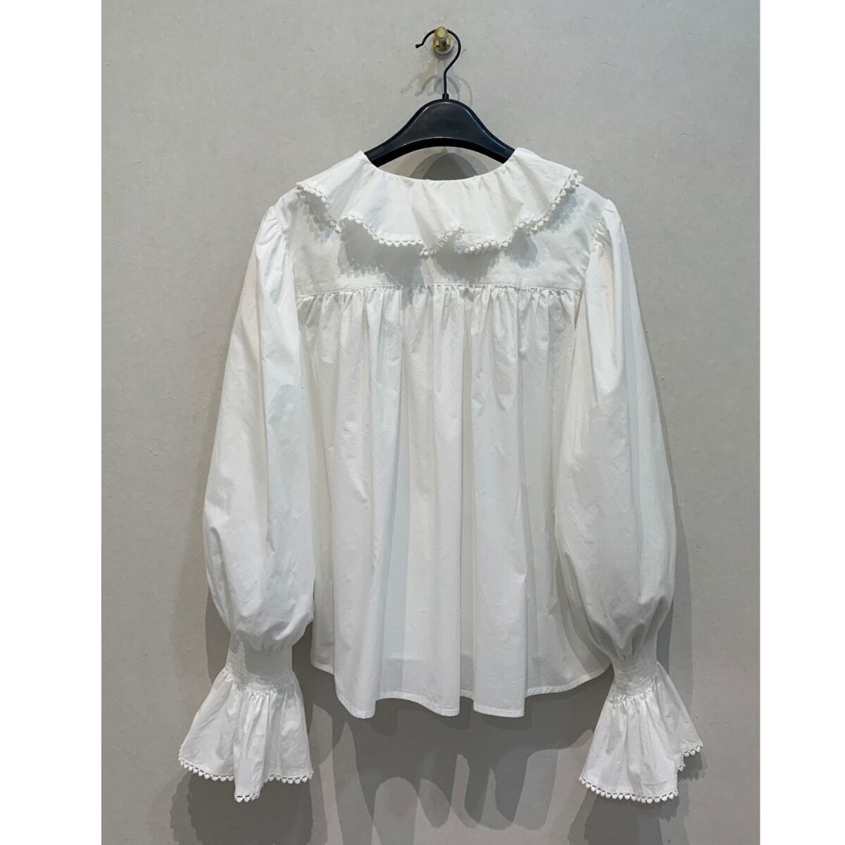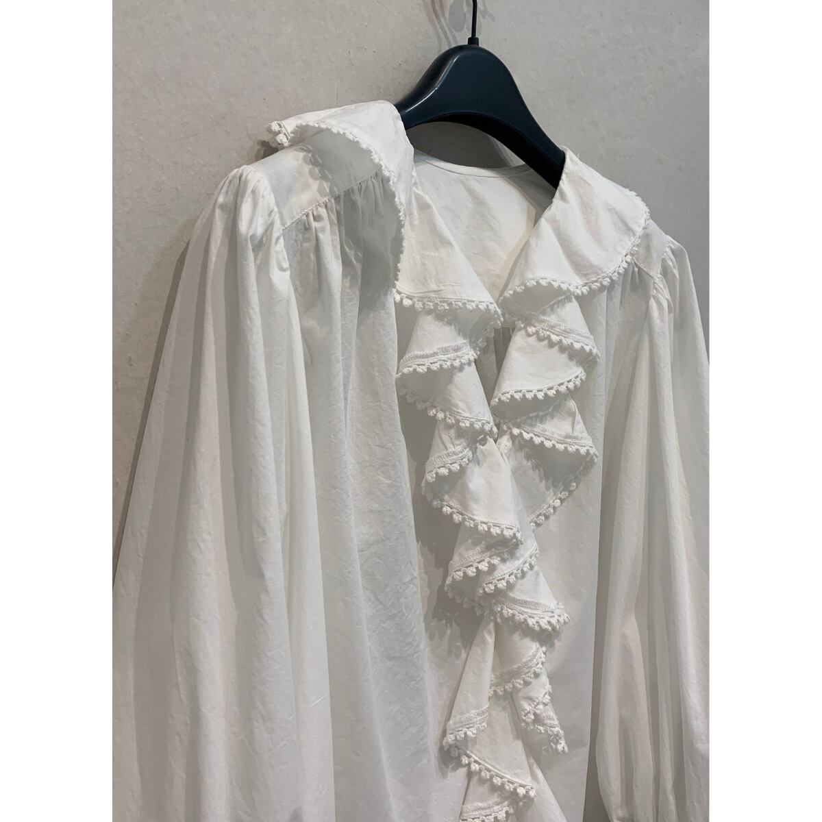 繊細なレースフリルが上品な印象のホワイトブラウス。