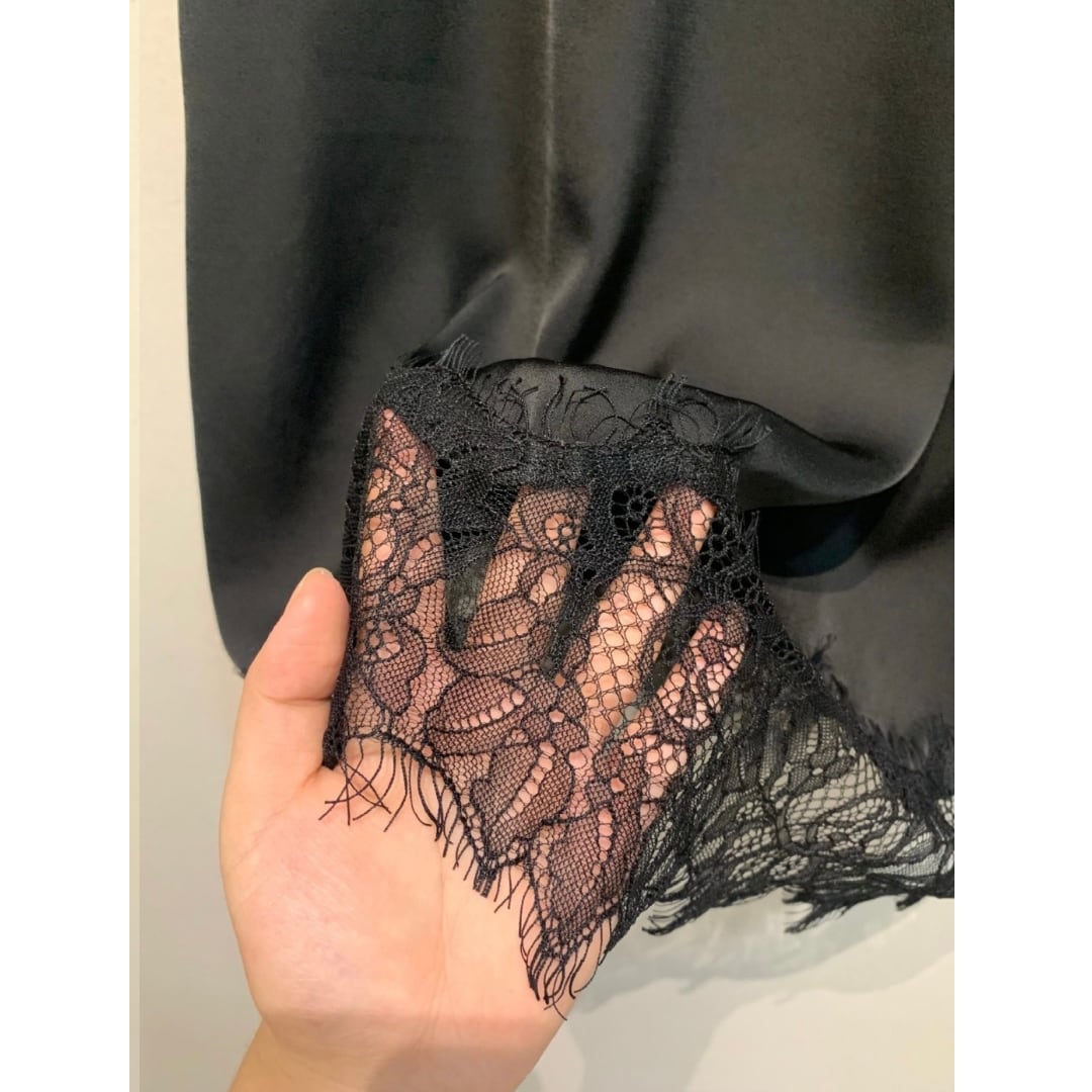 裾にあしらわれた繊細なアイラッシュレースが、歩くたびに揺れるエレガントな一枚です。