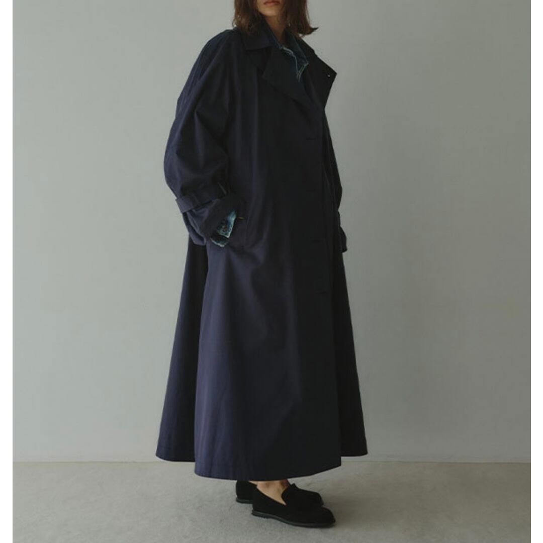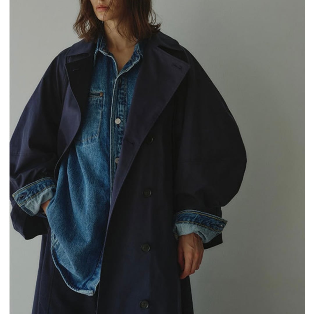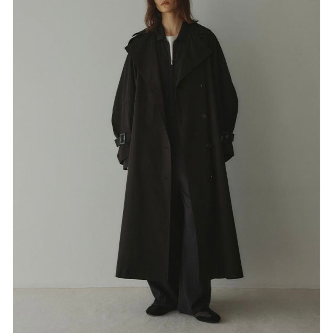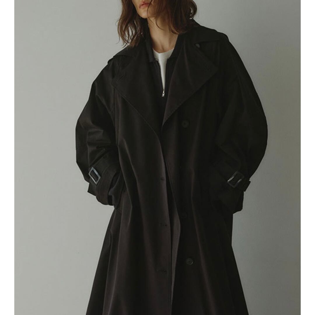 袖口のベルトがポイントで、カジュアルからモードまで幅広く大活躍のロングコート。