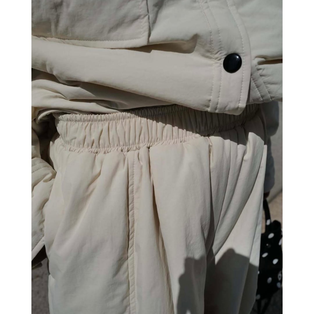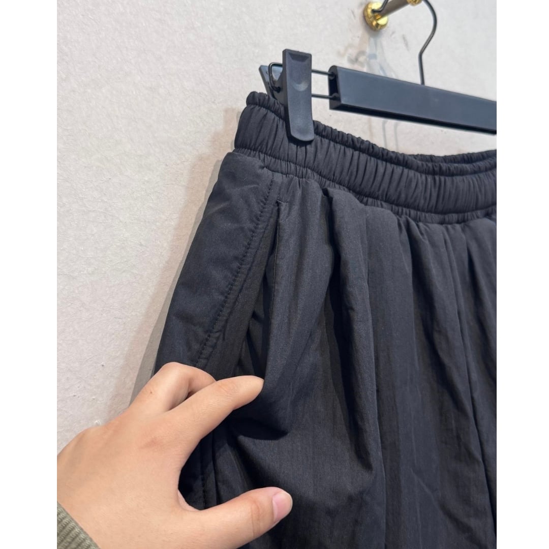 ウエスト部分がゴムなので、リラックス感もありながら、計算された立体的なフォルムがモードで洗礼されたデザイン人っています。