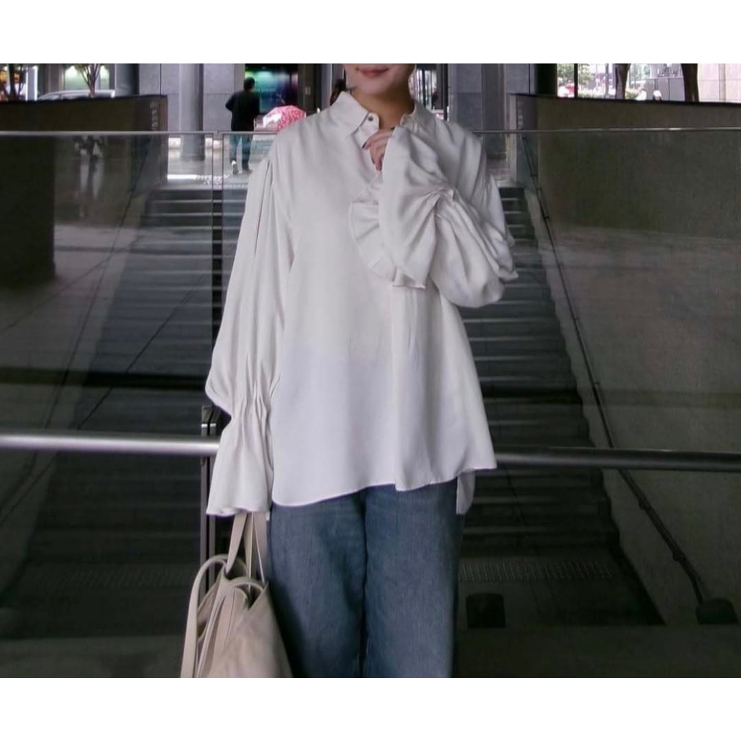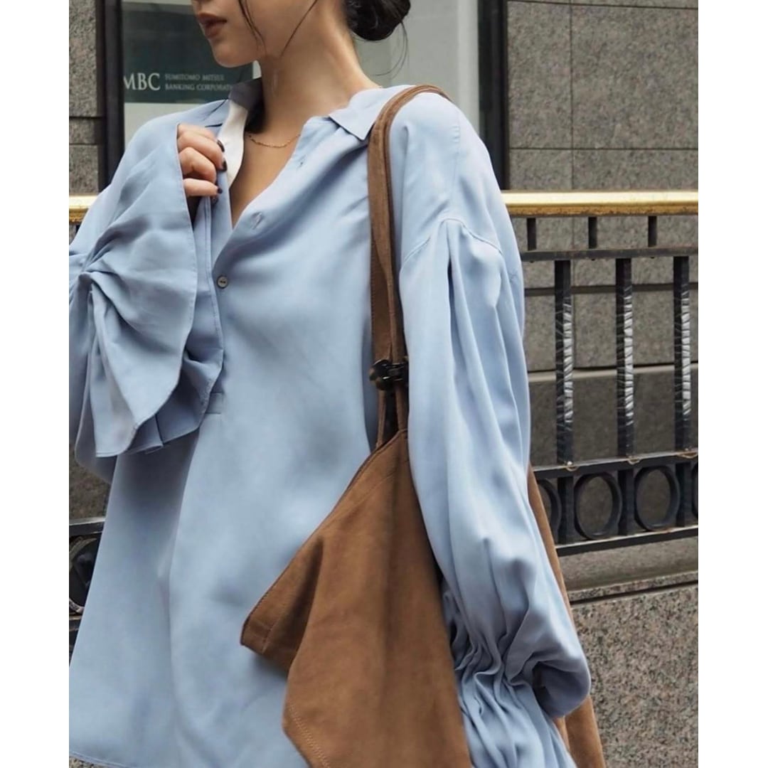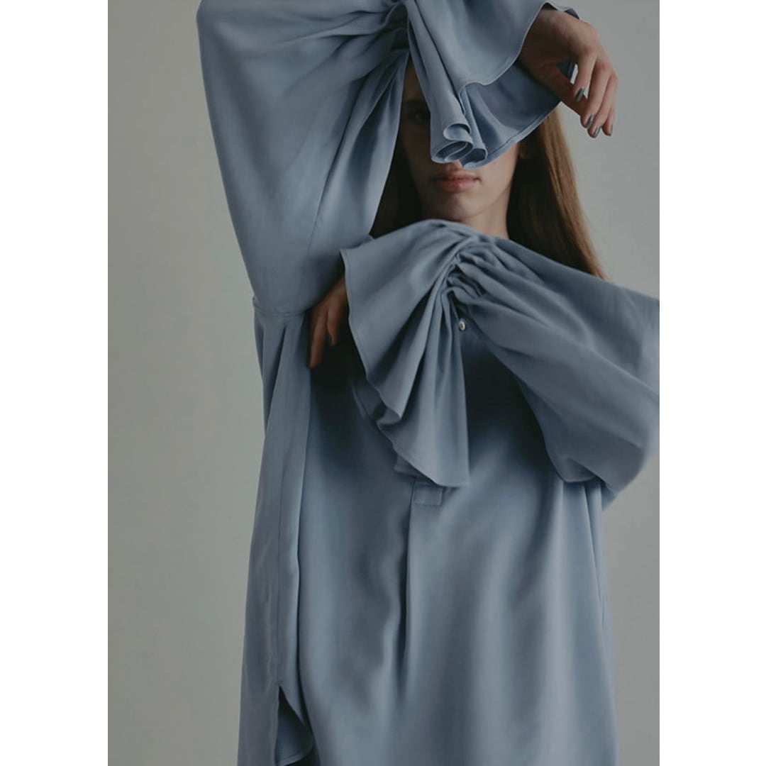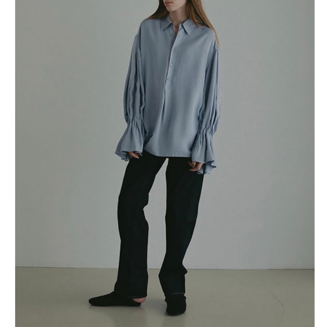 Shirred Flare-Cuff Volume Sleeve Blouse G1039
