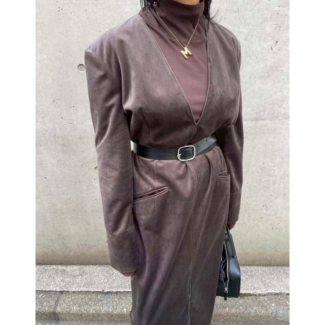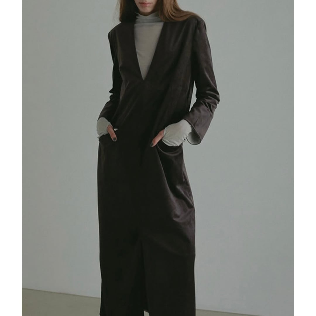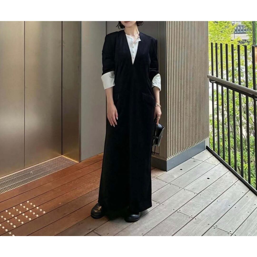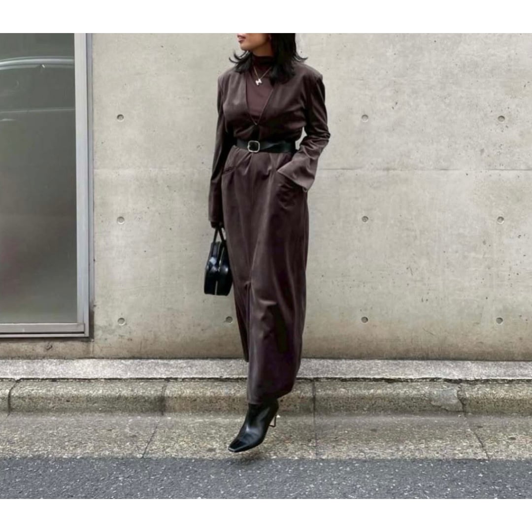 落ち着きと高級感を放つベルベット生地のロングワンピース。