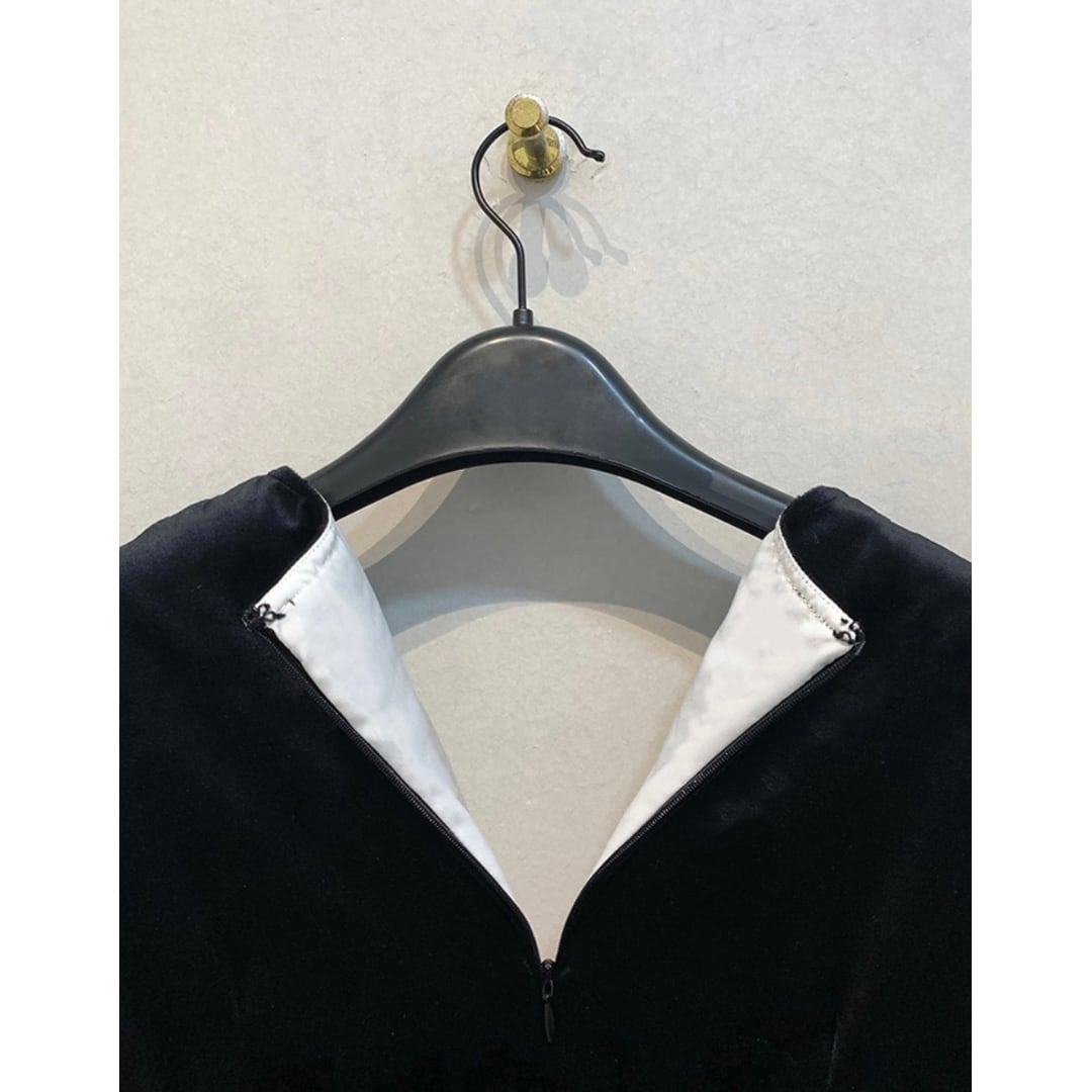 Deep V neck velvet long one piece G1040