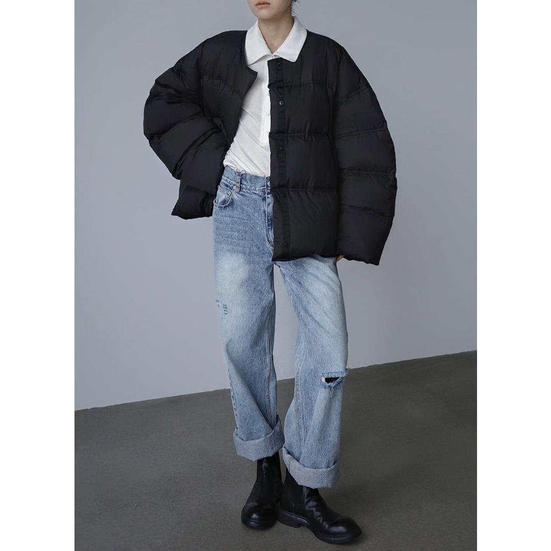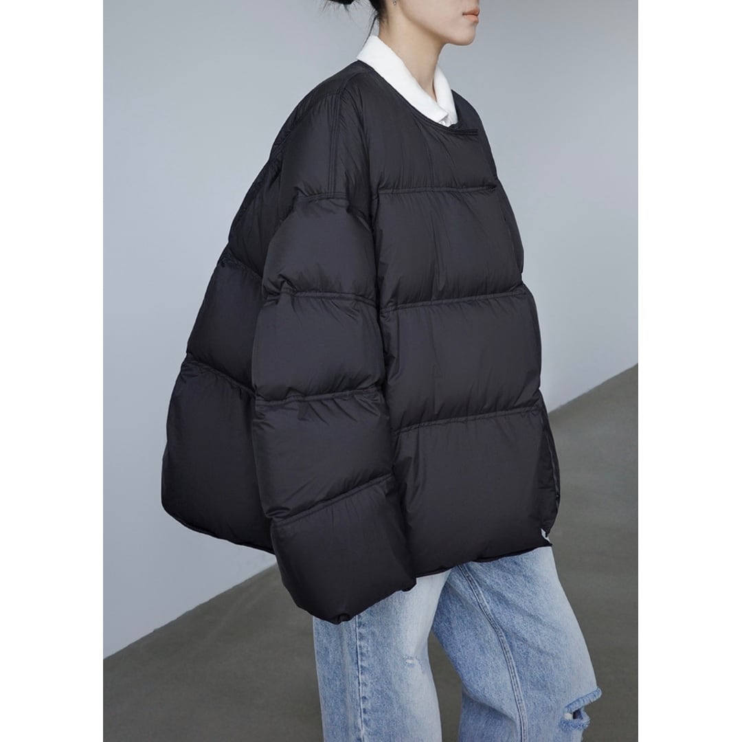 Collarless white duck down jacket G1041