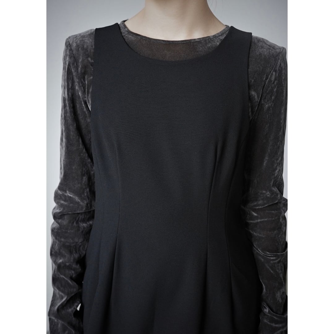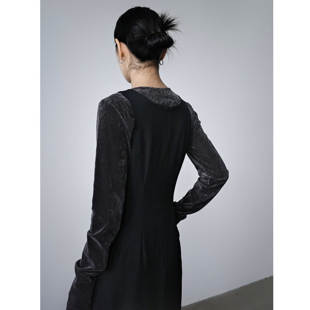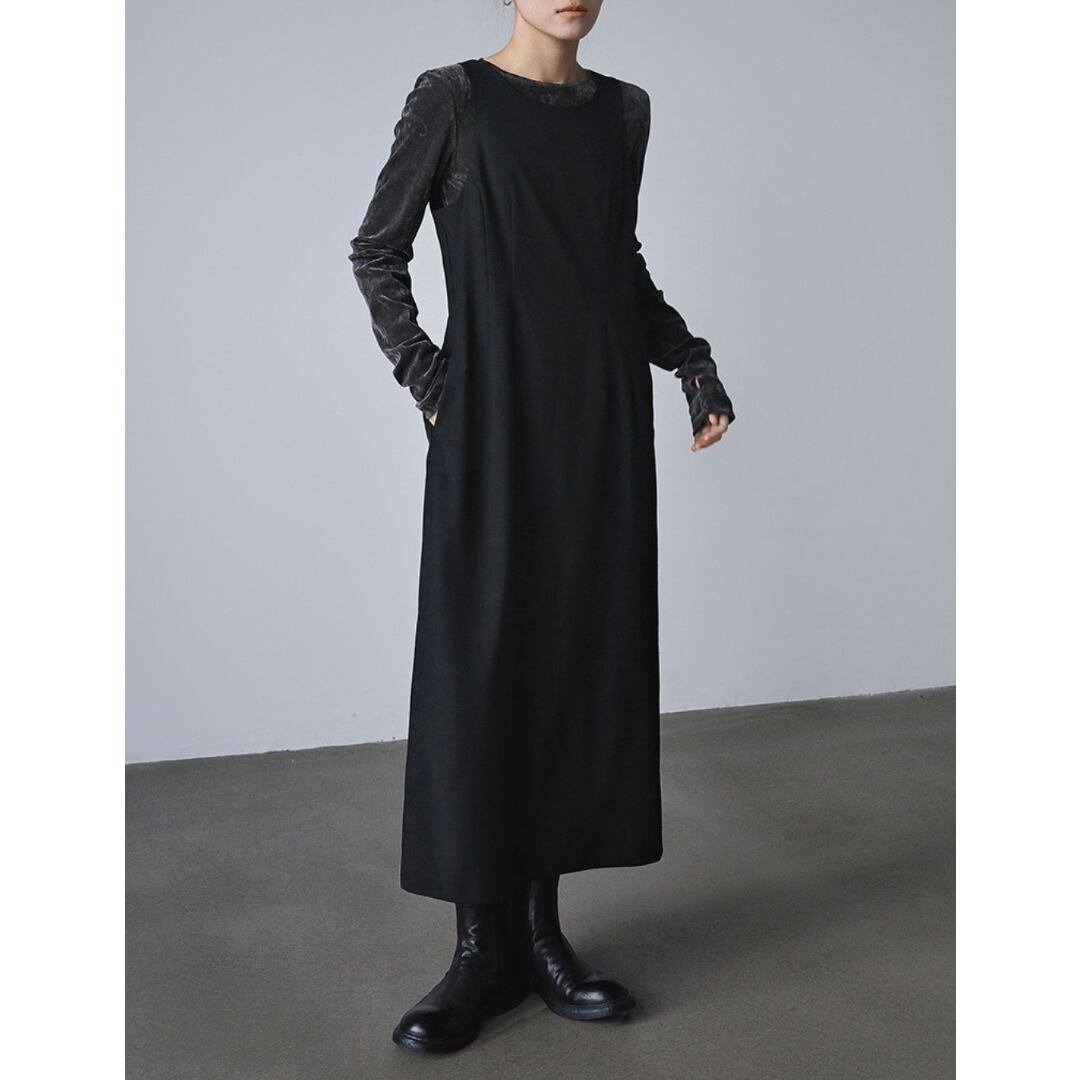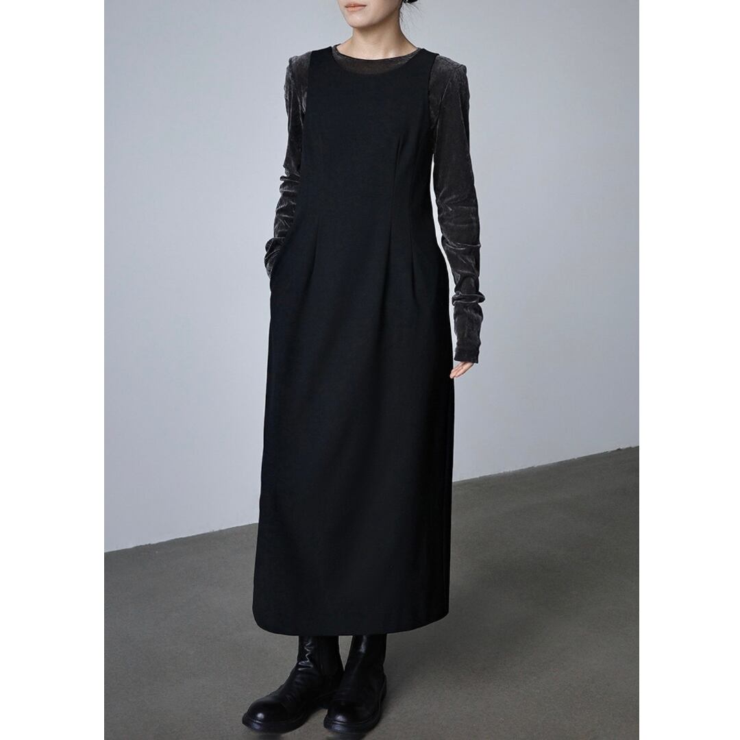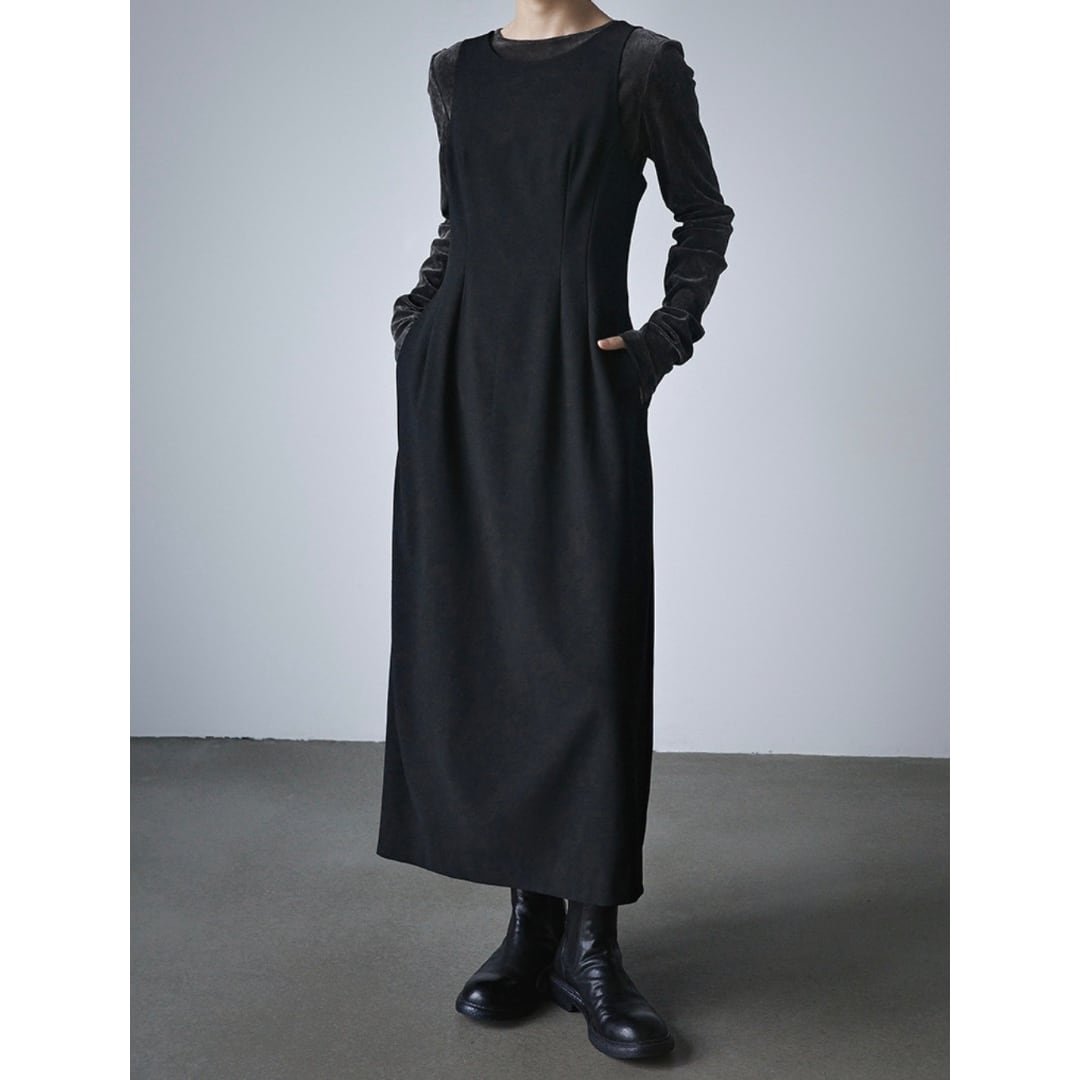 大人の佇まいを演出する黒のIラインワンピース。