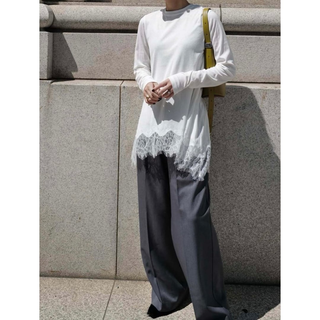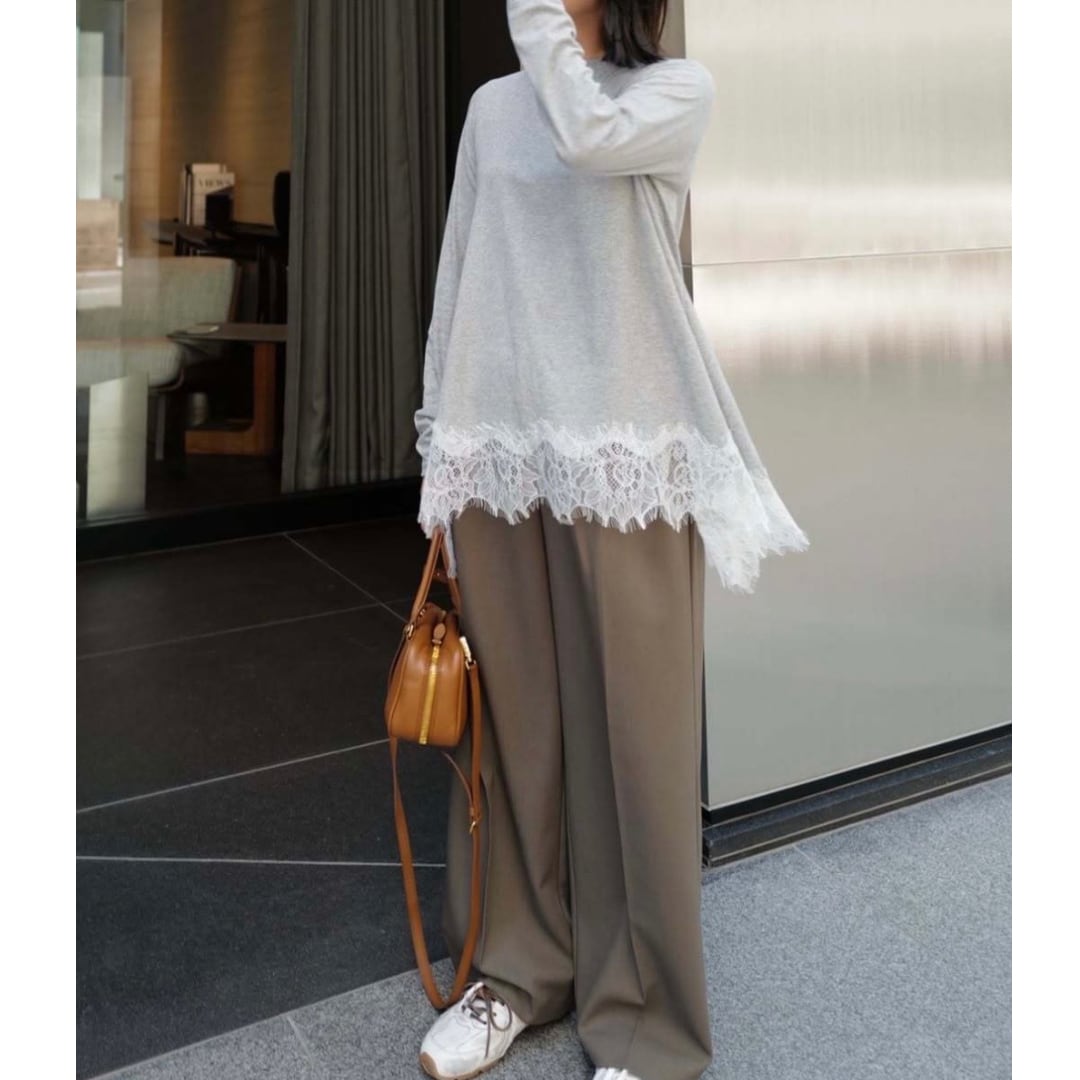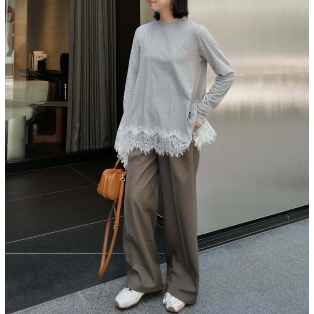 カジュアルなクルーネックで気軽に着回しやすく、ウエストラインが目立ちにくいデザイン。コーデにさりげなく華やかさをプラス出来ます。