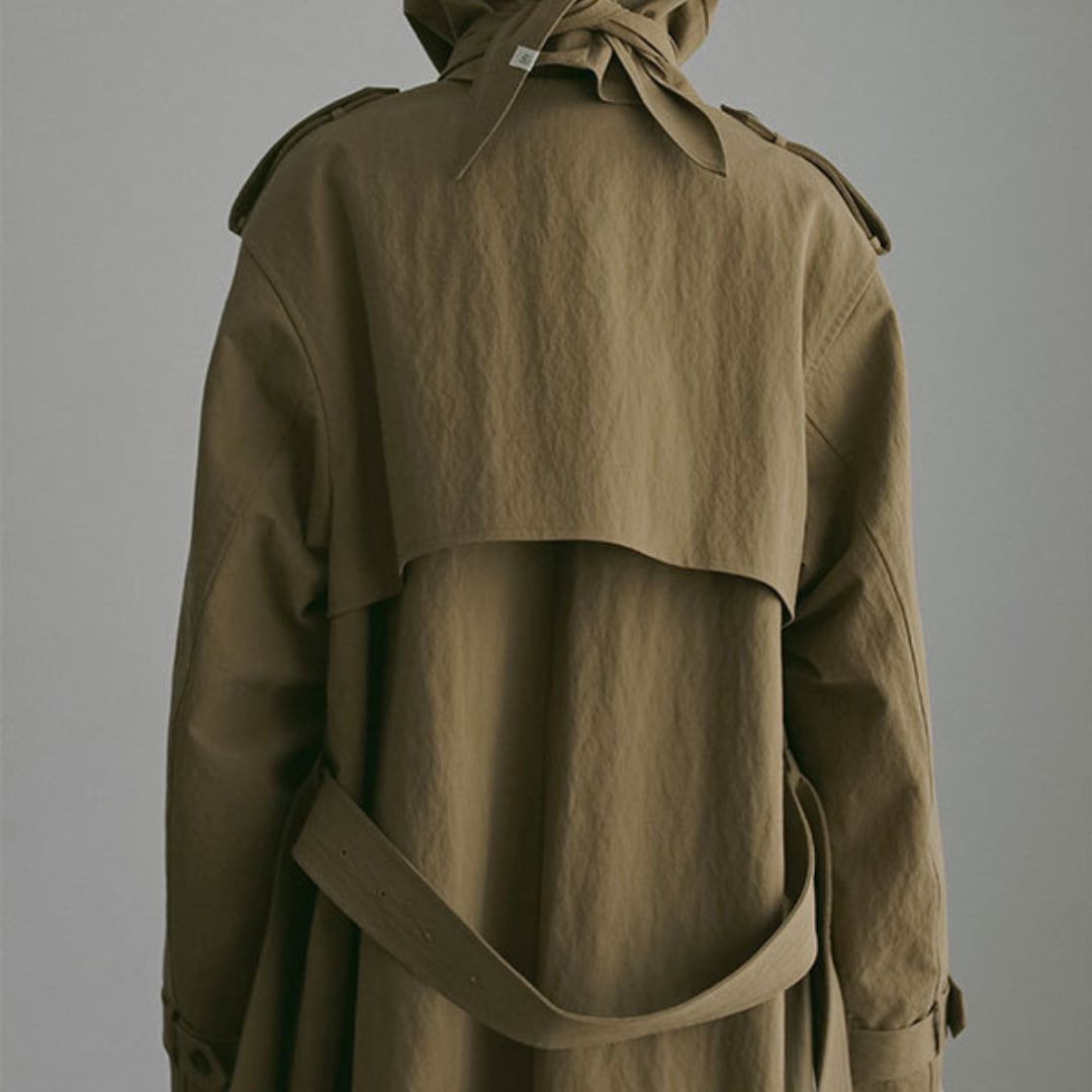 Shoulder belt hooded trench coat G1028