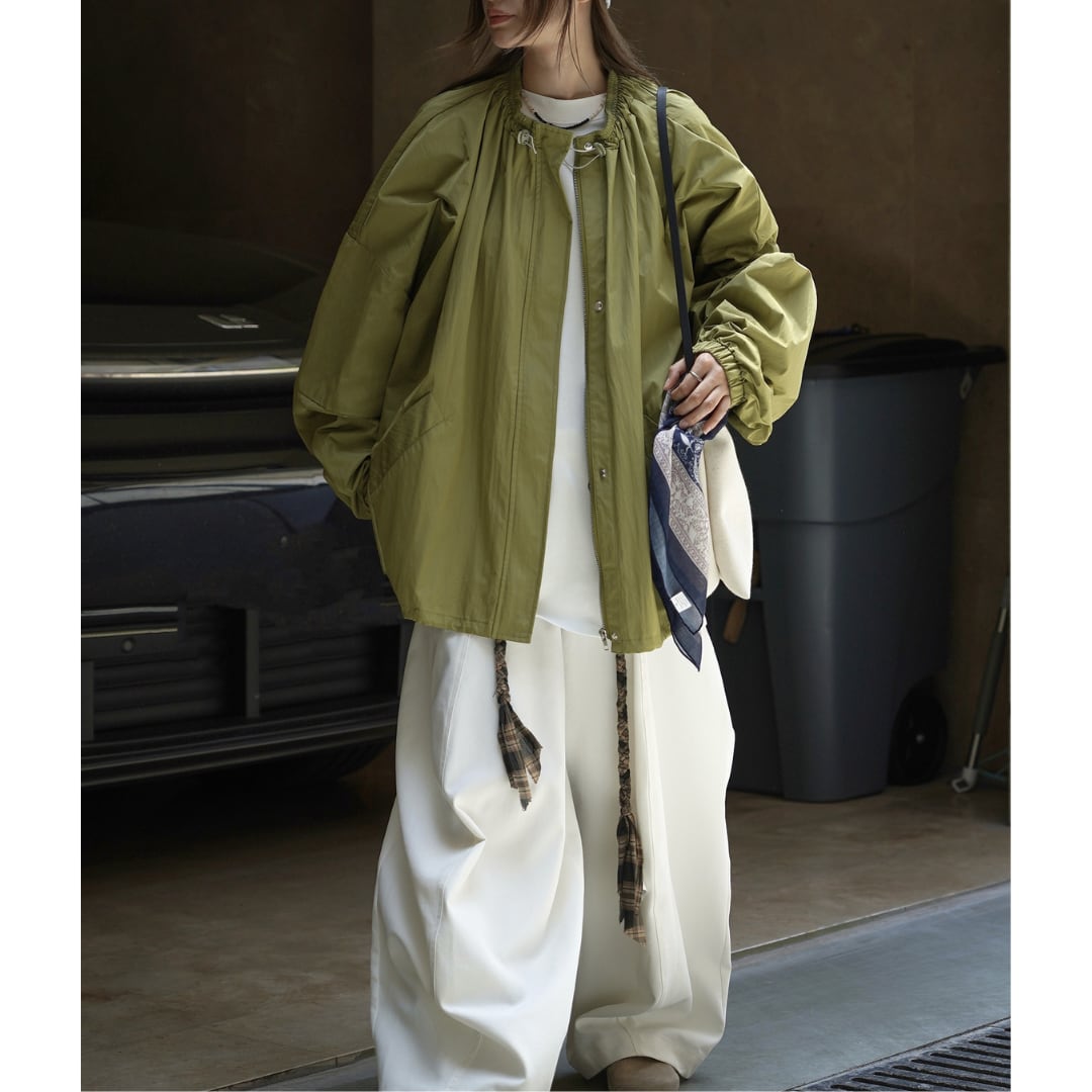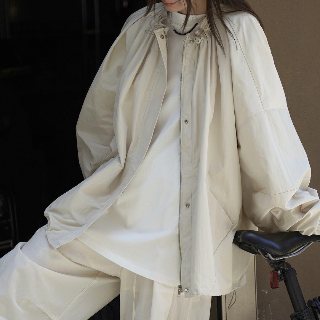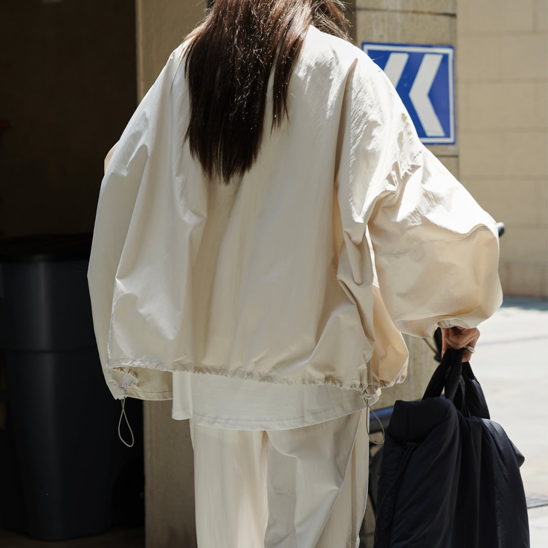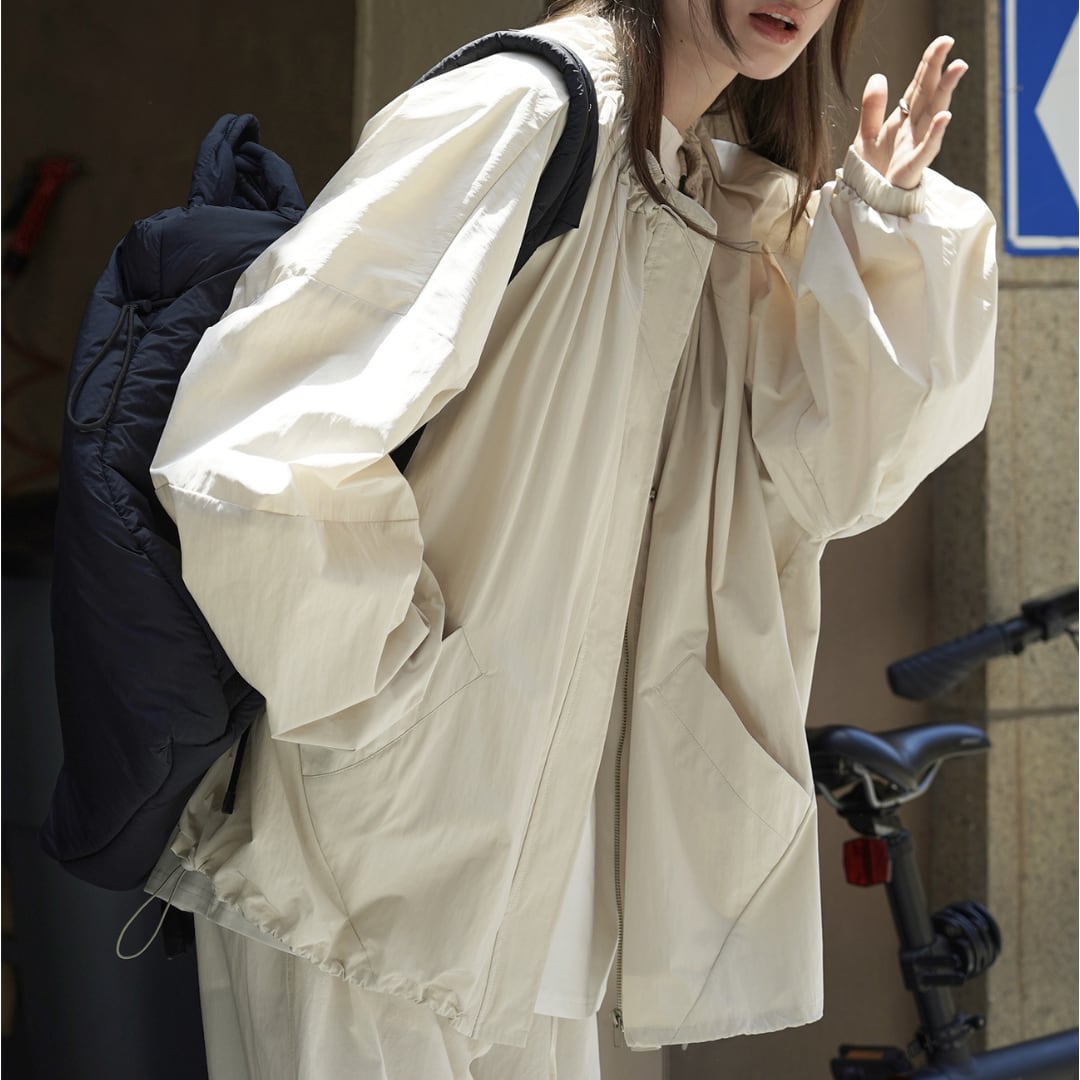 首回りと裾にドローコードを採用したカジュアルなジャケット。